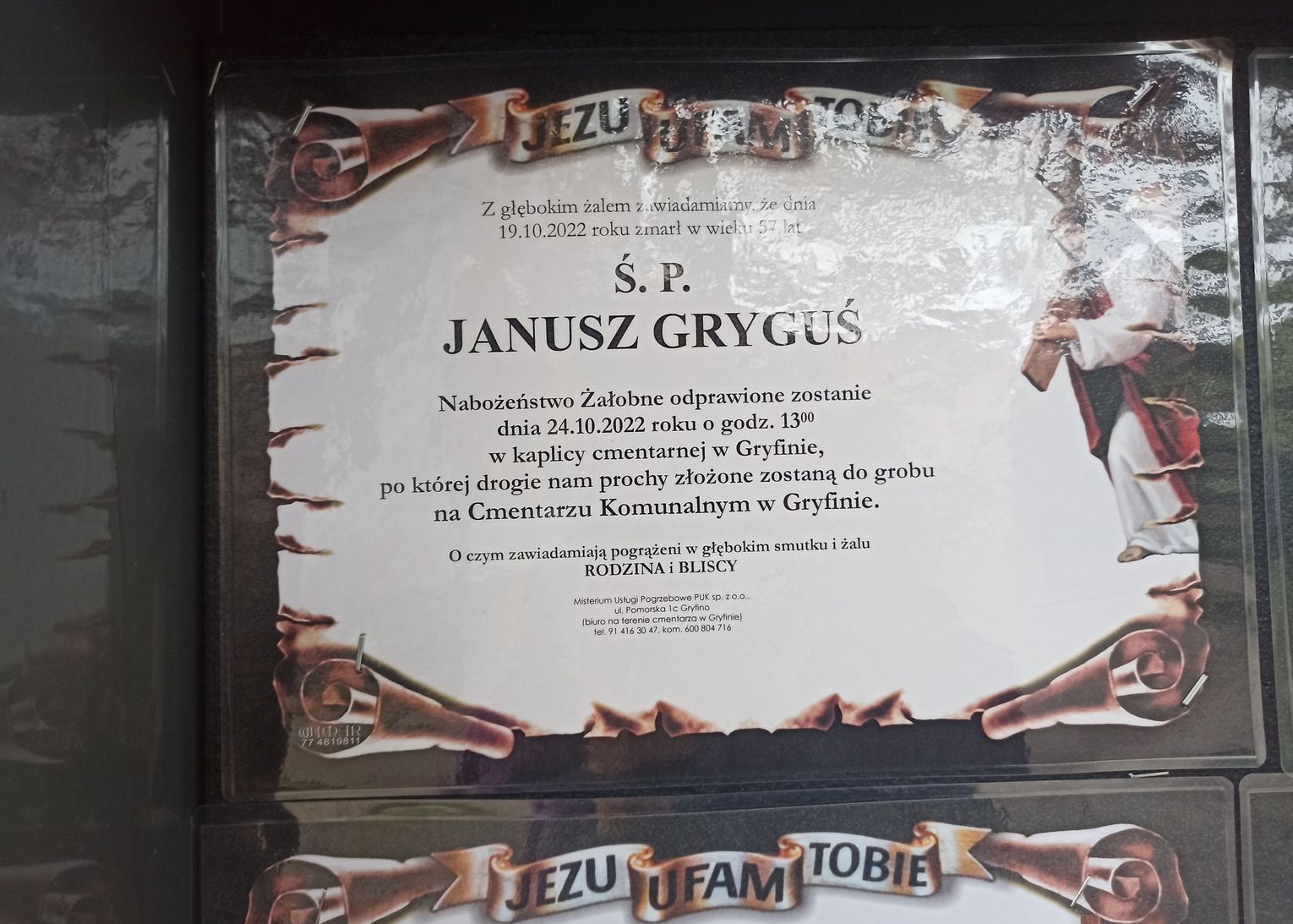 Janusz Gryguś – zmarł 19 października 2022 r. w wieku 57 lat