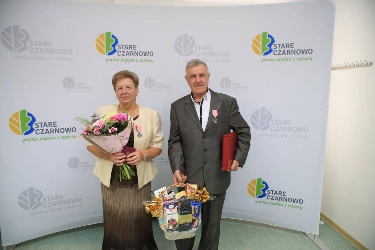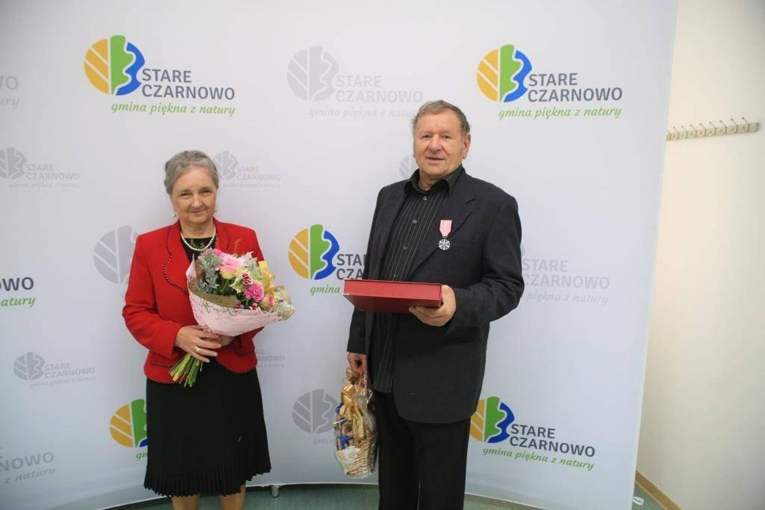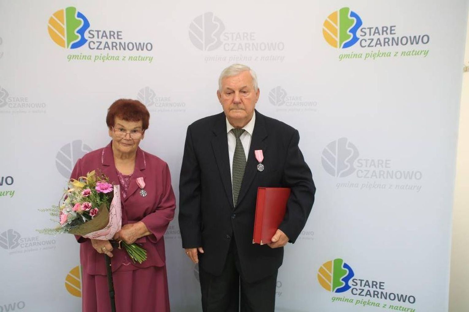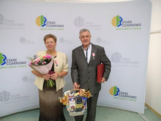 Jubilaci zostali odznaczeni przez prezydenta RP Medalami za Długoletnie Pożycie. Pary otrzymały okolicznościową odznakę. To stylizowana, sześciopromienna, srebrzona, oksydowana gwiazda o średnicy 35 mm z ornamentowanymi promieniami łączącymi jej ramiona. Na awersie umieszczone są dwie róże, zaś rewers tworzy monogram RP z napisem w otoku "Za długoletnie pożycie małżeńskie".