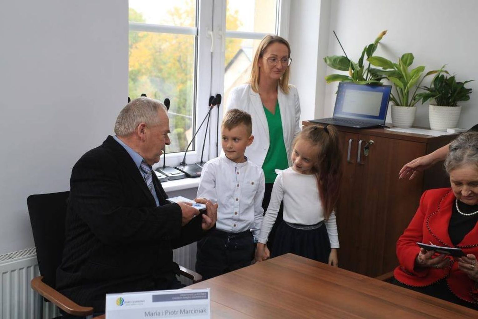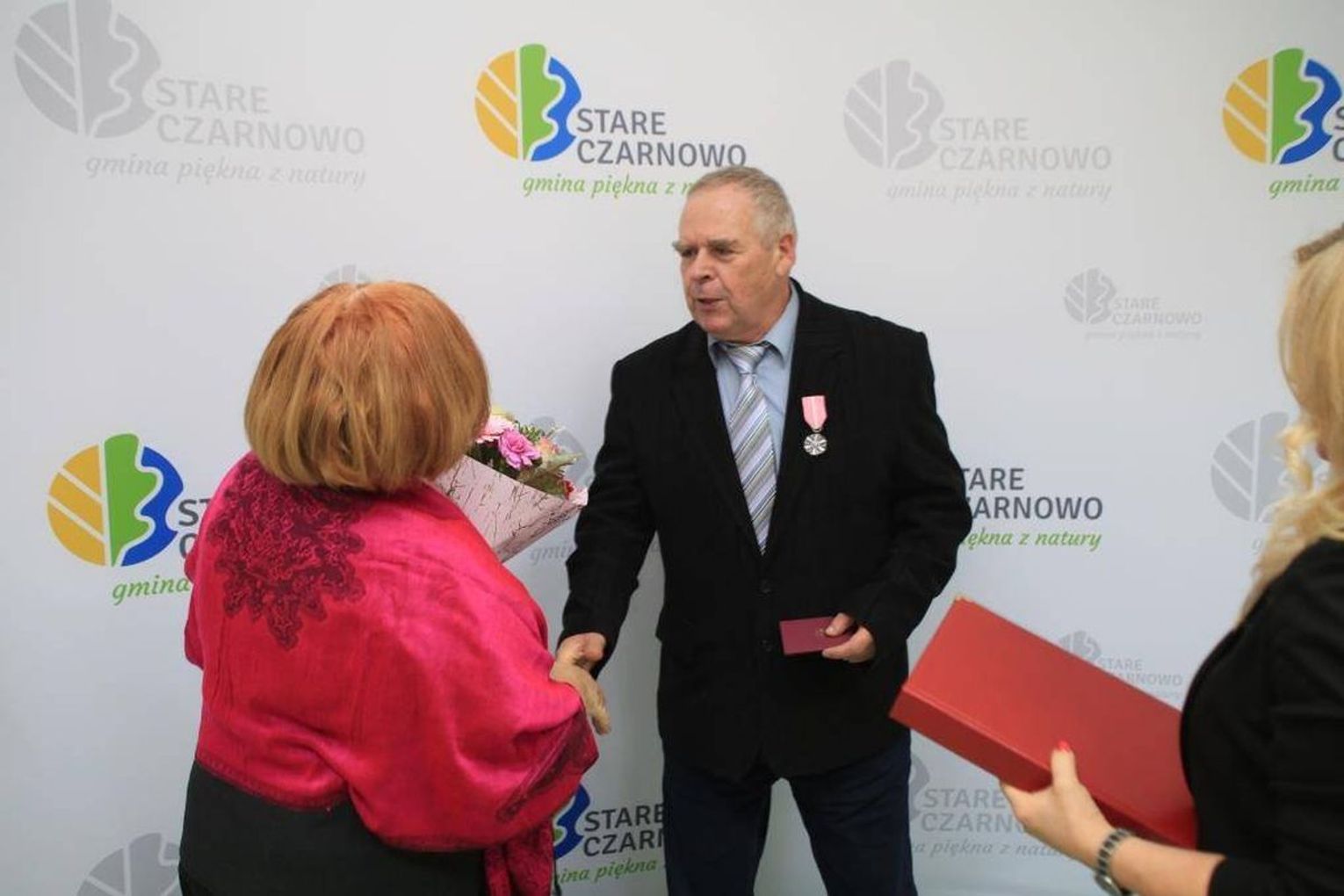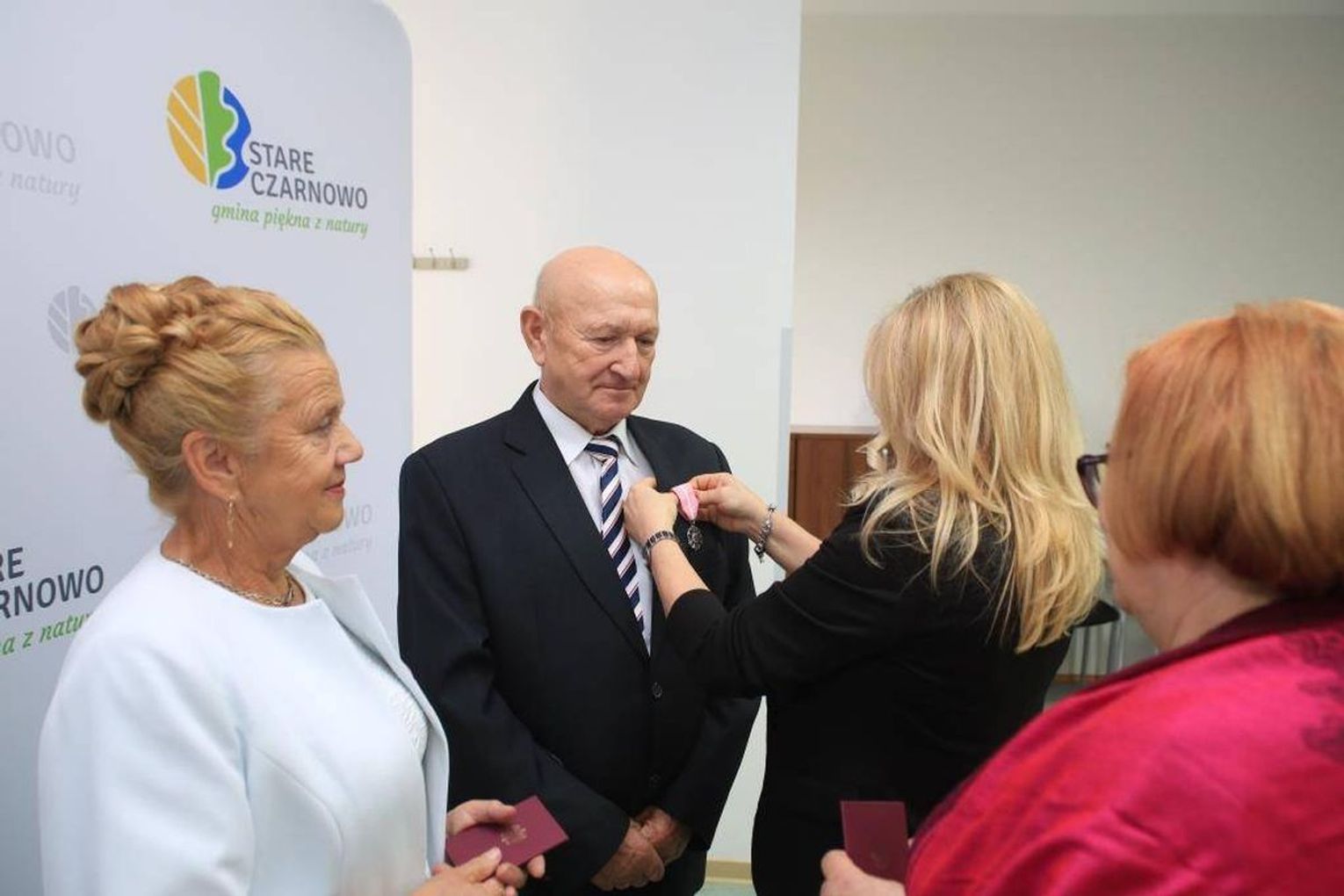 Jubilaci zostali odznaczeni przez prezydenta RP Medalami za Długoletnie Pożycie. Pary otrzymały okolicznościową odznakę. To stylizowana, sześciopromienna, srebrzona, oksydowana gwiazda o średnicy 35 mm z ornamentowanymi promieniami łączącymi jej ramiona. Na awersie umieszczone są dwie róże, zaś rewers tworzy monogram RP z napisem w otoku "Za długoletnie pożycie małżeńskie".