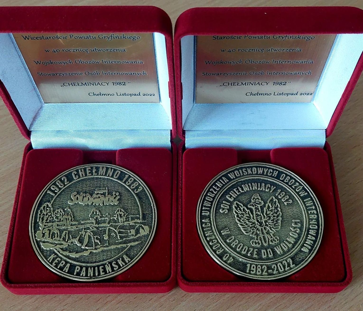 Piotr Paczkowski, jako członek zarządu Stowarzyszenia Osób Internowanych „Chełminiacy 1982” przekazał medale mieszkańcom powiatu, wręczając je 31 października 2022 r. staroście Wojciechowi Konarskiemu i wicestaroście Ewie Dudar.