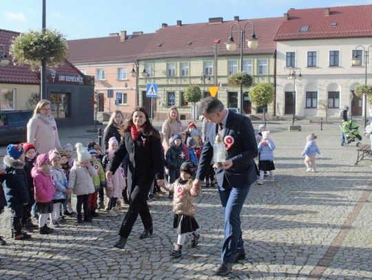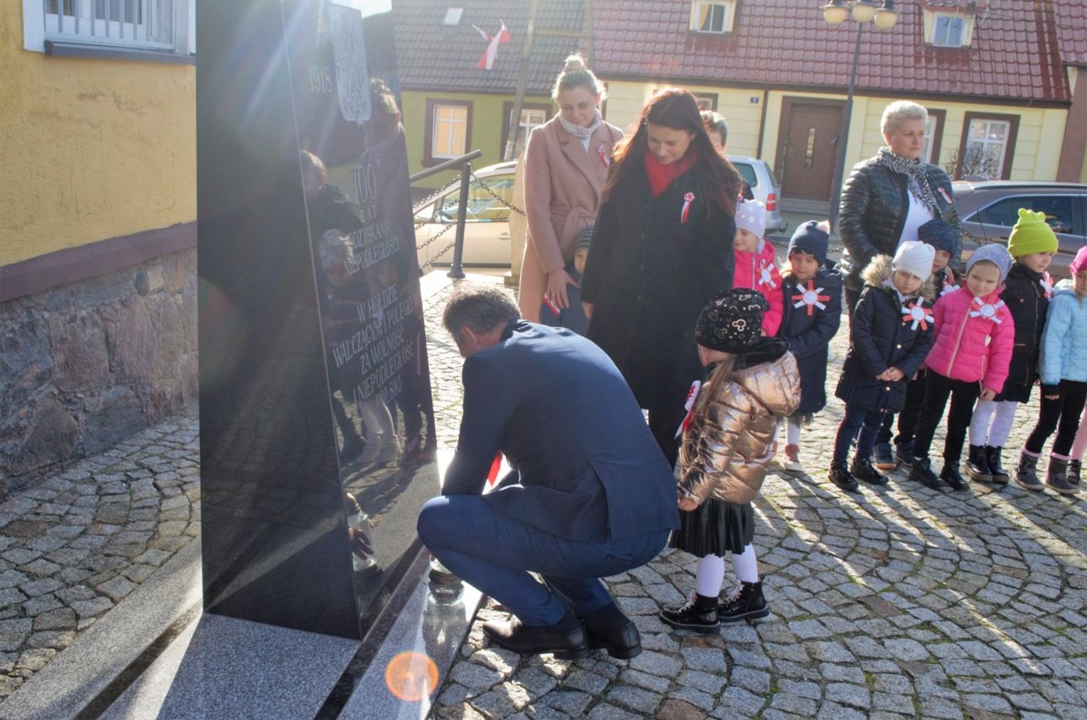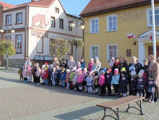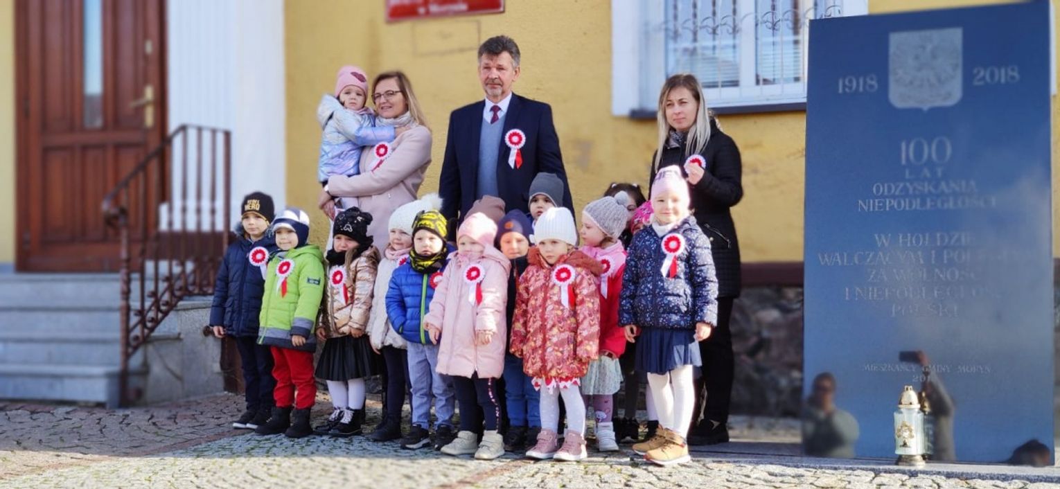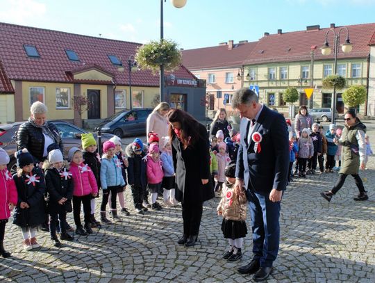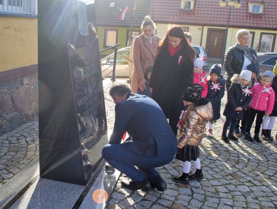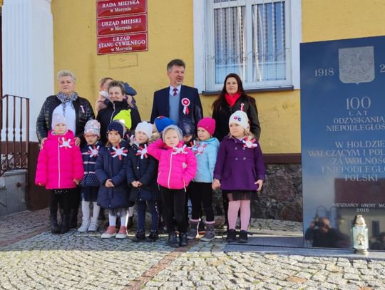 Po odśpiewaniu hymnu przez burmistrz Morynia wraz z dziećmi zapalił symboliczny znicz pod obeliskiem.
