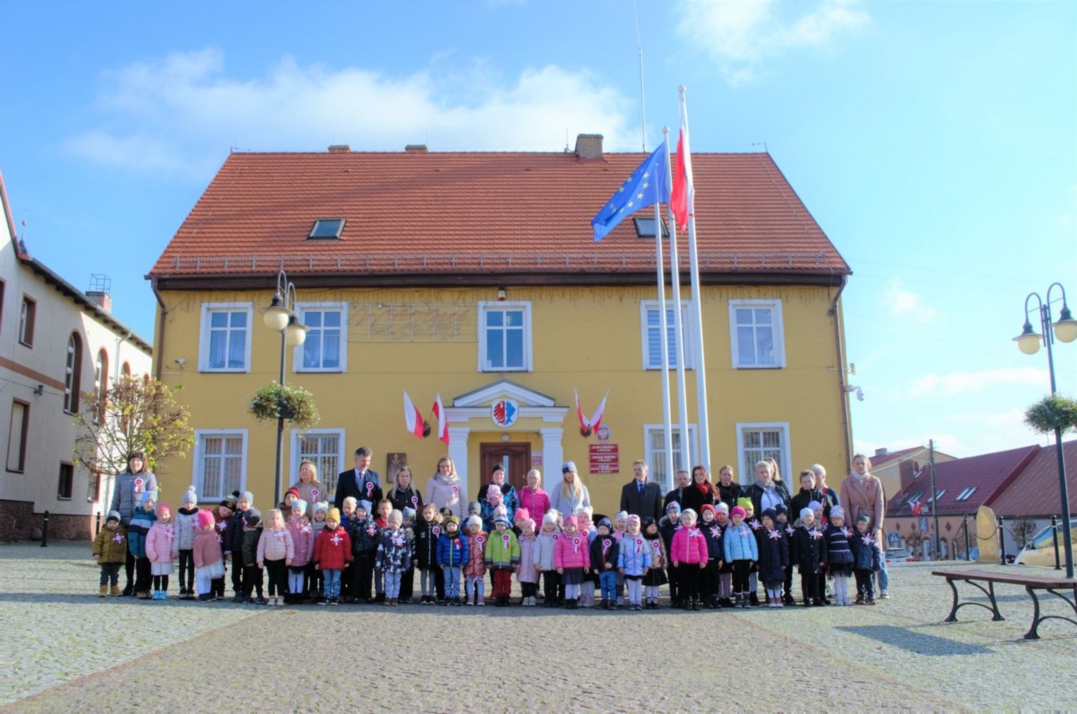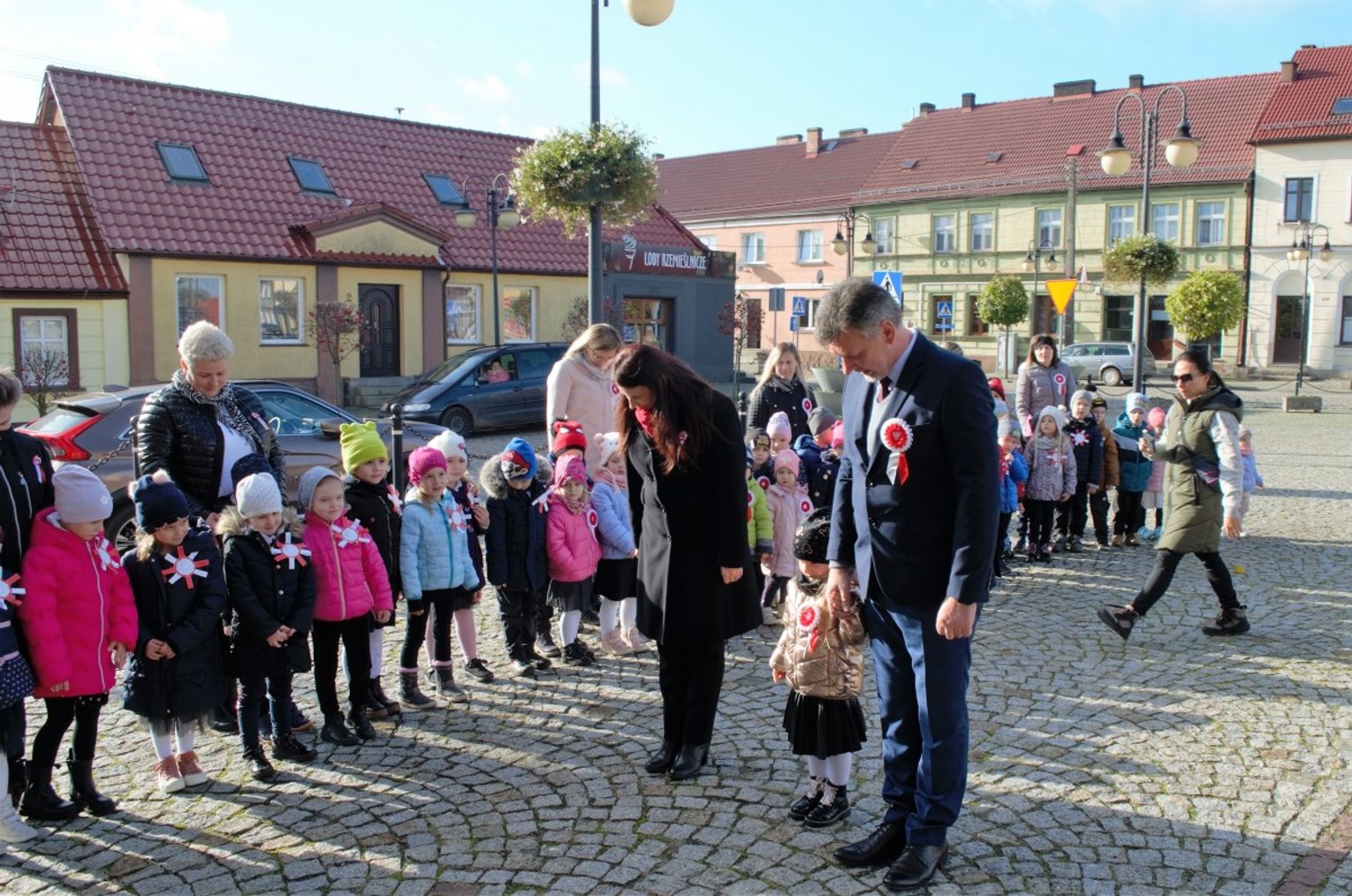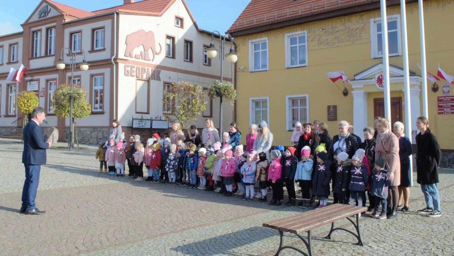 Po odśpiewaniu hymnu przez burmistrz Morynia wraz z dziećmi zapalił symboliczny znicz pod obeliskiem.