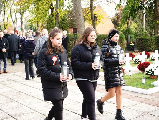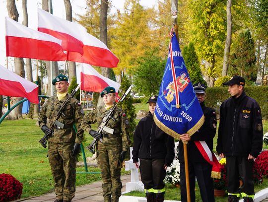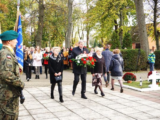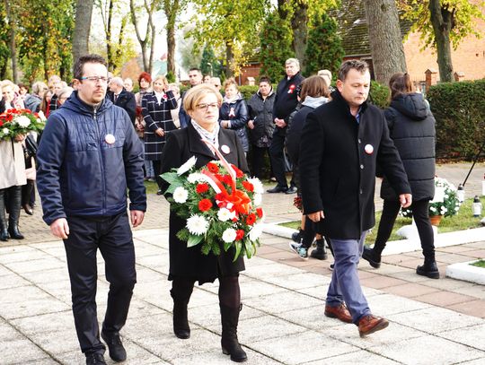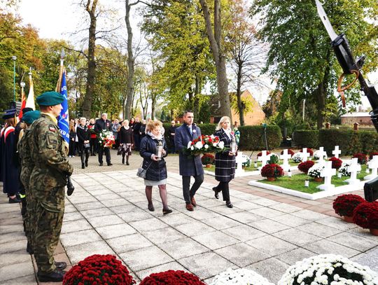 Potem przemaszerowano na cmentarz komunalny, gdzie oddano hołd poległym w walce o wolność oraz złożono kwiaty pod pomnikiem Żołnierzy.