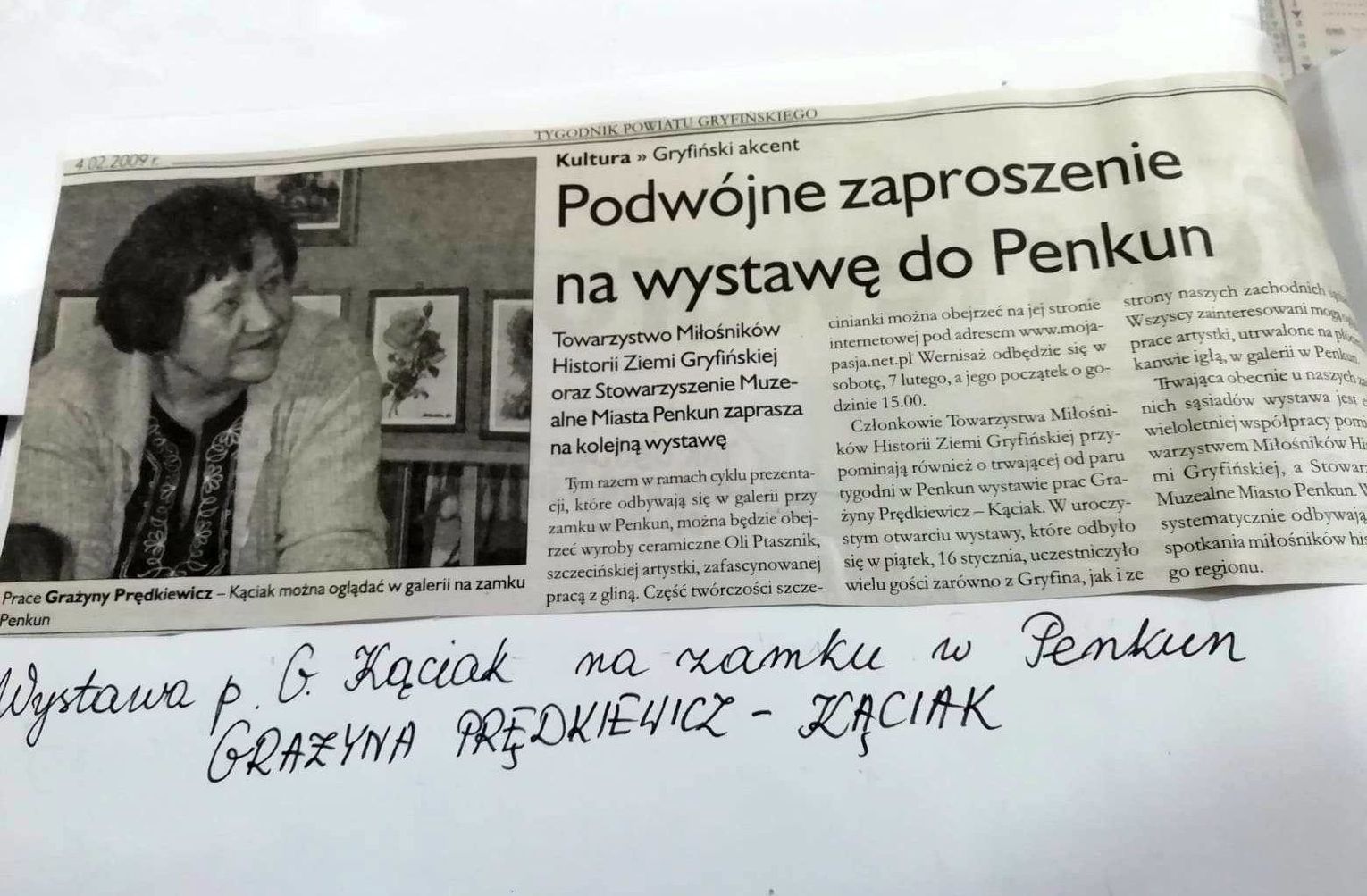 Grażyna Prędkiewicz-Kąciak urodziła się w Smydze 05.10.1940 r. W Gryfinie była bardzo lubianą nauczycielką. Uczyła między innymi biologii w gryfińskich szkołach. Była wspaniałym pedagogiem z 30-letnim stażem pracy.