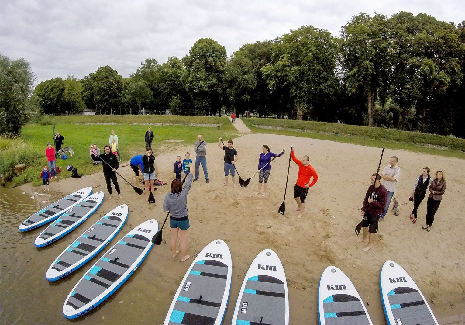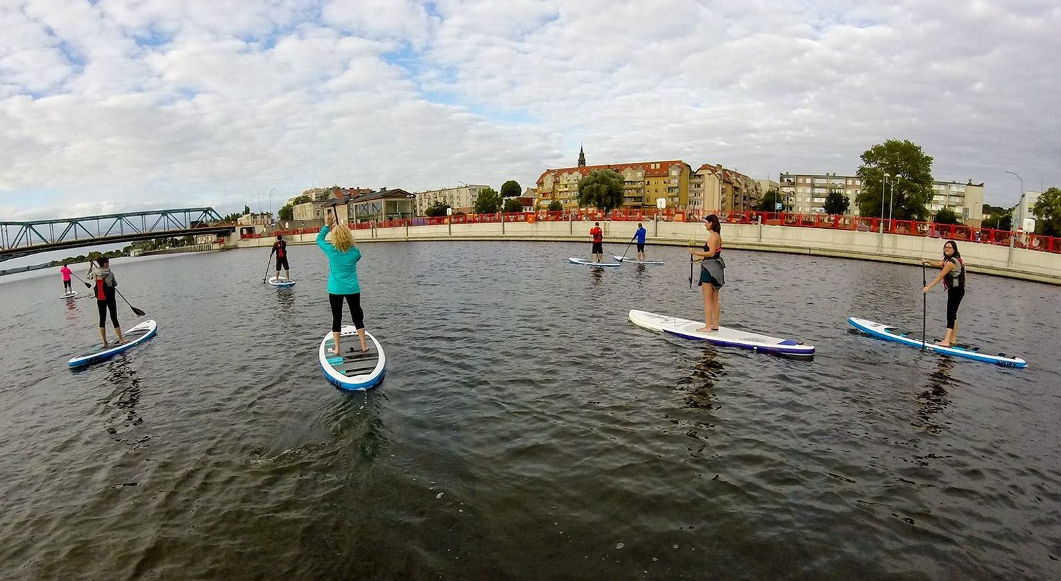 - szkolenie pływania na deskach SUP prowadzone przez instruktorów