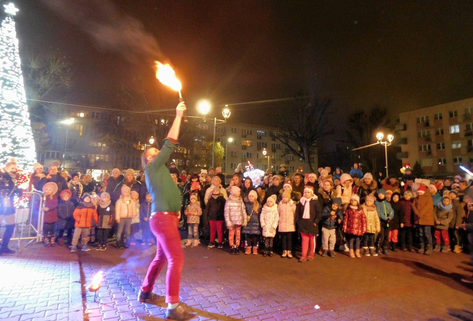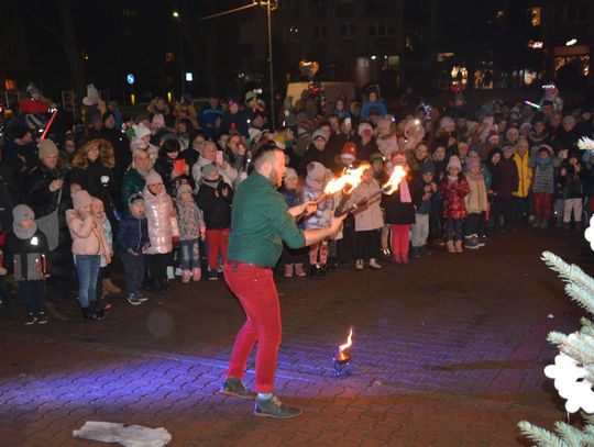 Na pl. Barnima sporo dzieci z rodzicami lub dziadkami. Podziwiano ogniową, cyrkową żonglerkę Kamila, śpiewających rówieśników Lenę Forfecką, Zuzannę Olek i Mateusza Lityńskiego.