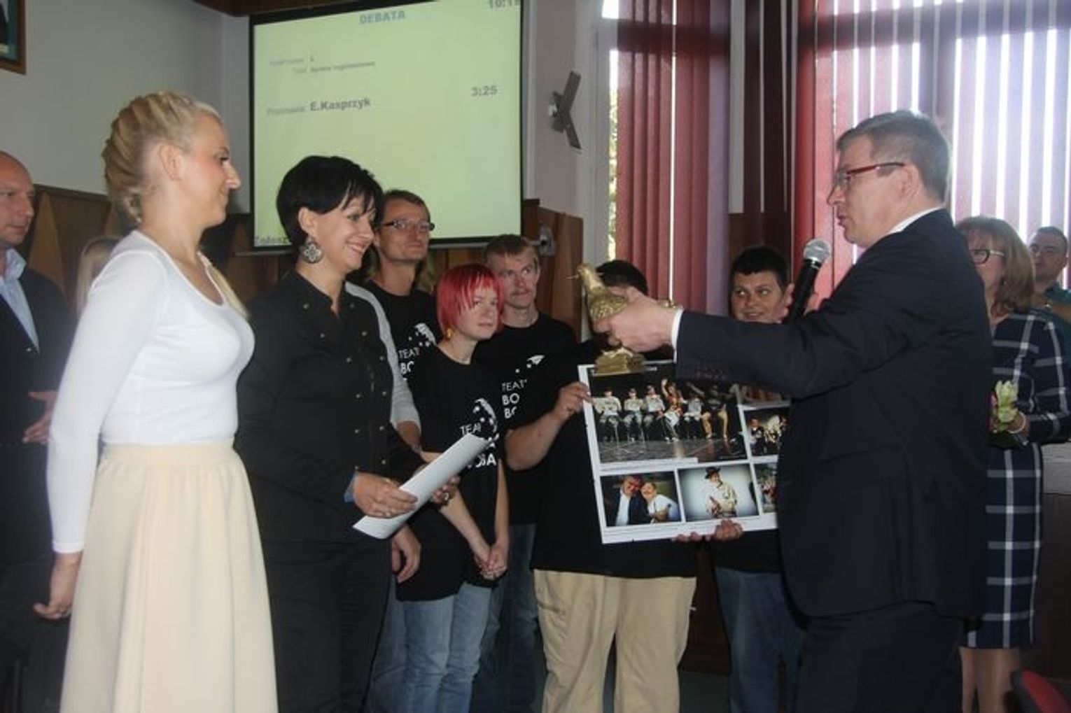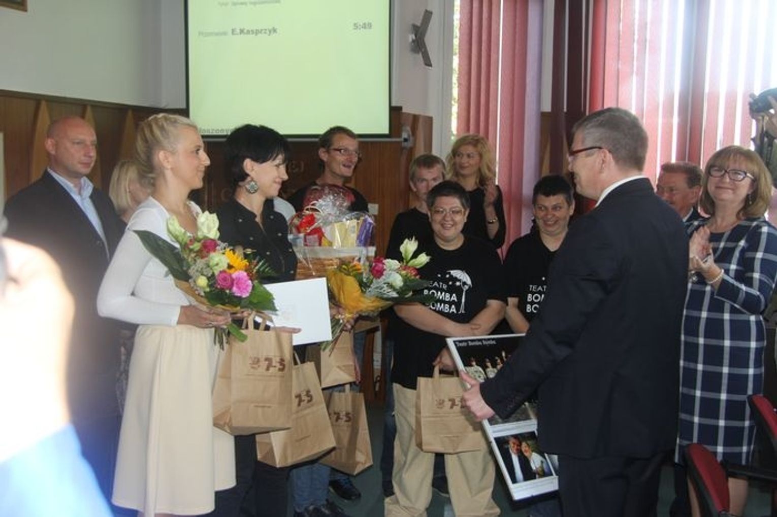Dzisiejszą sesję Rady Miejskiej w Gryfinie rozpoczeto od uhonorowania muzyków i aktorów. Laureatom wyróżnienia Instytutu Muzyki i Tańca - Wełtyniankom z instruktorką Katarzyną Papiernik gratulował wiceburmistrz Paweł Nikitiński i radni. Nagrodę otrzymał Teatr Bomba Bomba z Violiną Janiszewską na czele.