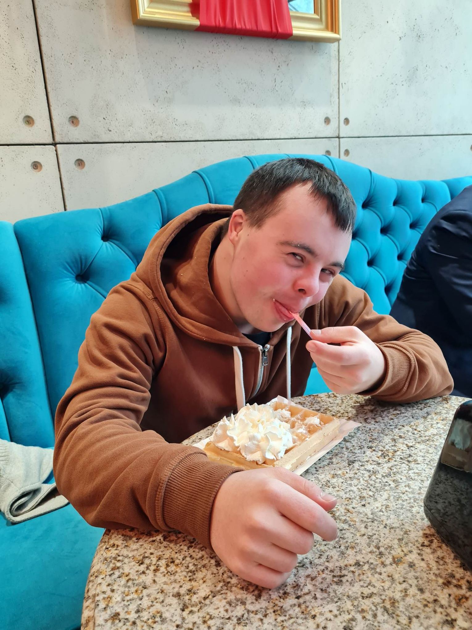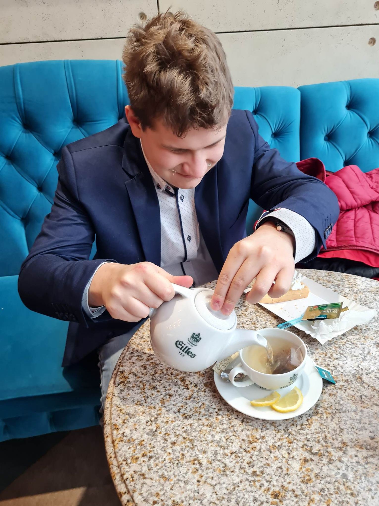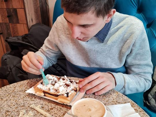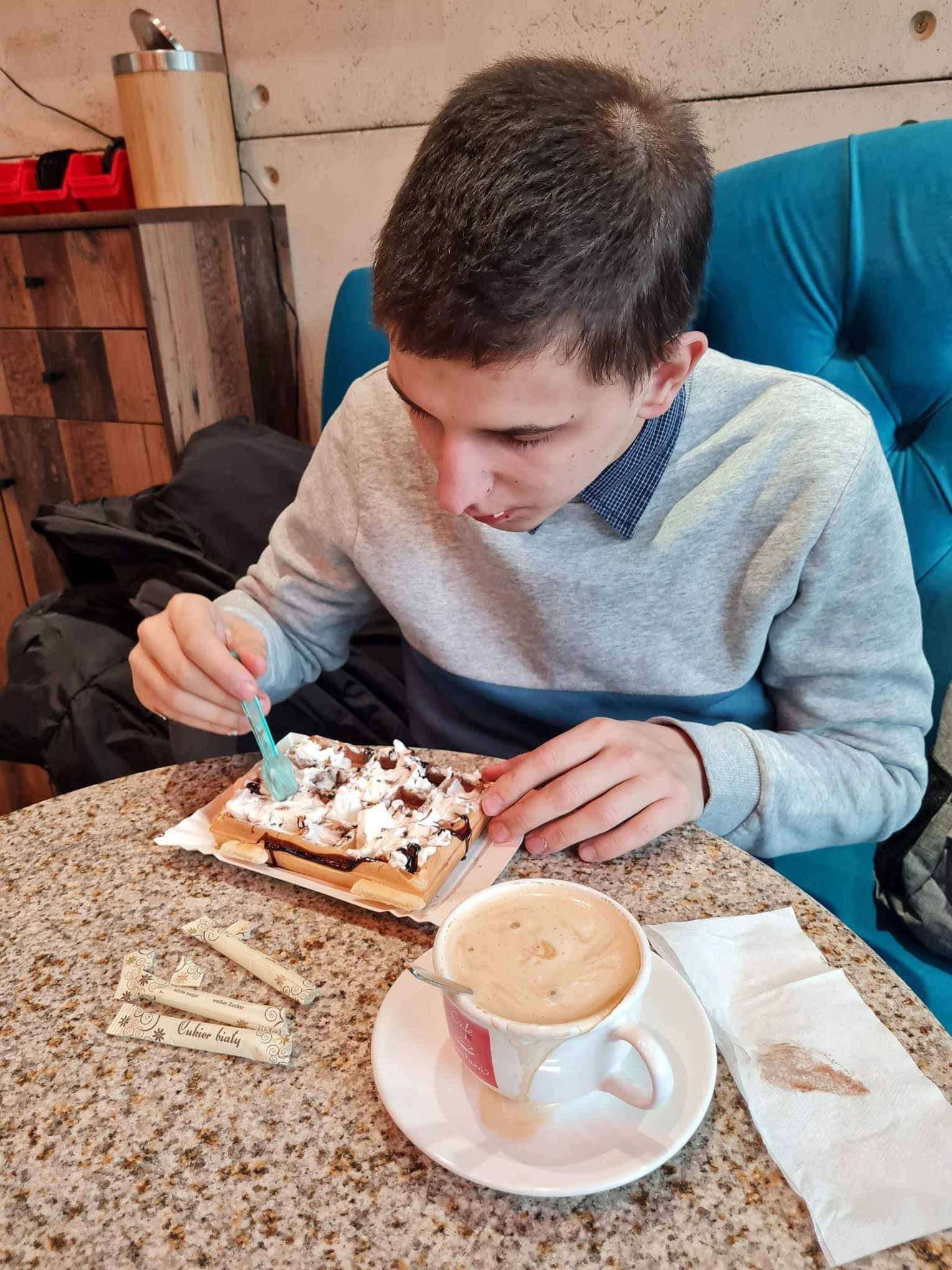 Ogrzaliśmy się w kawiarni ciepłą herbatką i pysznymi goframi.