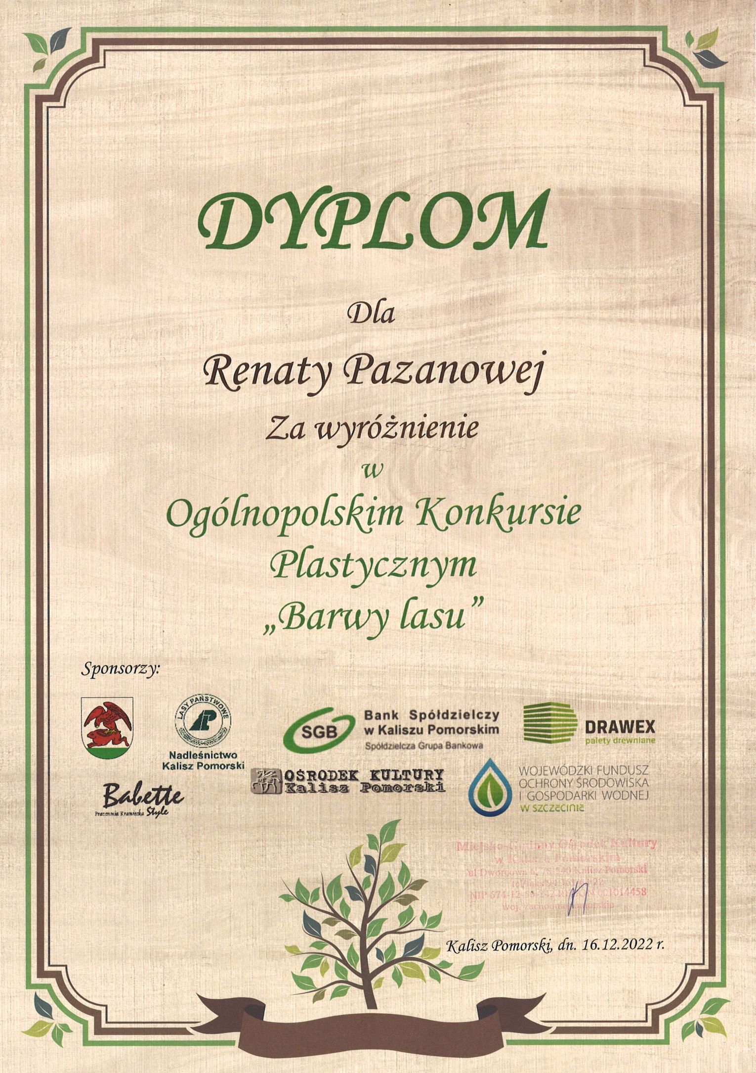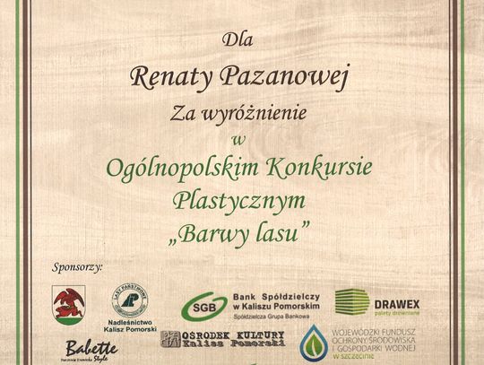 Praca Renaty Puzanowej z koła plastycznego Radosne Rococo (MOK Moryń, instr. Barbara Sobolewska) otrzymała wyróżnienie w Ogólnopolskim Konkursie Plastycznym ,,Barwy Lasu 2022″ – Kalisz Pomorski.