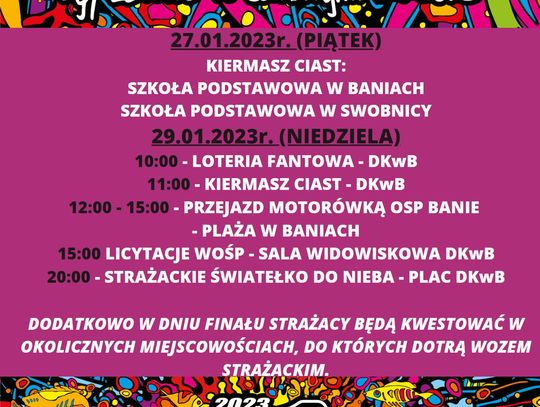 -Tym razem zapraszamy mieszkańców na plażę bańską oraz do centrum miejscowości. Na plaży strażacy wraz z wolontariuszami będą zbierać pieniążki do puszki. W ramach tej akcji będzie możliwość przepłynięcia łodzią w zimowych warunkach po naszym jeziorze. Dodatkowo będzie można zwiedzić i zobaczyć strażackie wozy. Na plaży będzie płonąć ognisko aby każdy, kto wspomógł WOŚP i przepłynął łodzią, mógł się ogrzać. Następnie przeniesiemy się do centrum, gdzie również w ramach akcji zbierania pieniążków do puszki będzie można pojeździć wozami strażackimi, zwiedzać wozy, używać sprzętu strażackiego. Nasi strażacy będą stacjonować na plaży od około 11:30. W zależności od zainteresowania mieszkańców czas pobytu będzie ustalany na bieżąco. W centrum widzimy się około 14:00. Również czas pobytu i możliwości przejażdżki w zależności od zainteresowania. Zapraszamy do wspólnego kwestowania! 0 informują strażacy z OSP w Baniach.