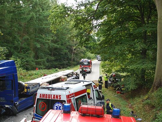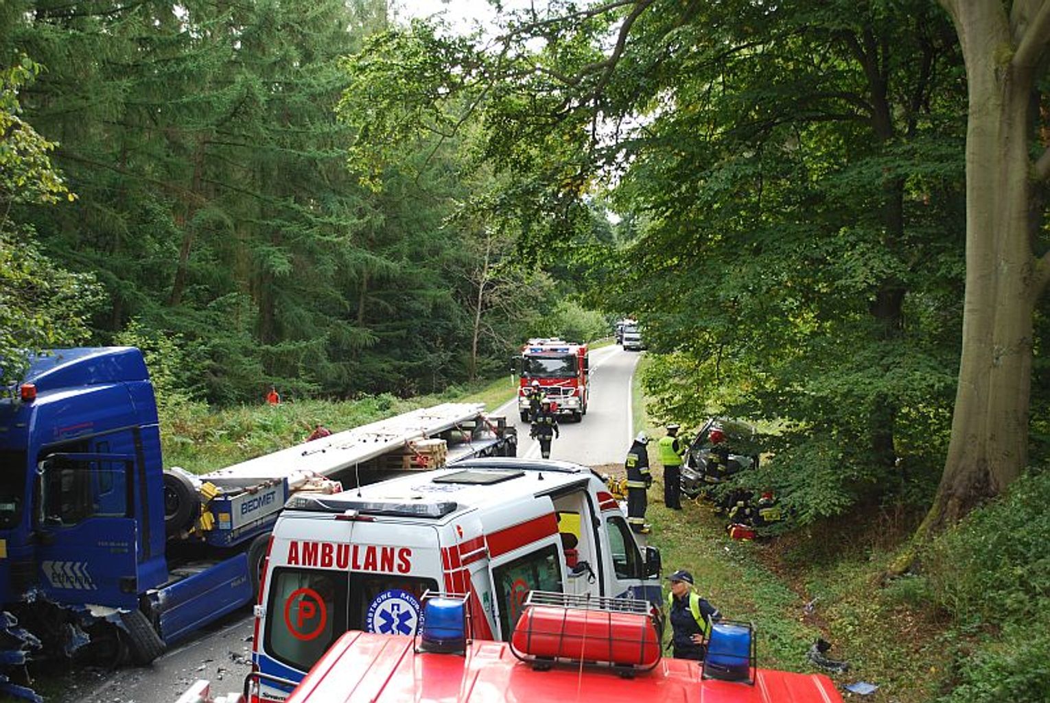 Dziś (16 września) doszło do poważnego wypadku na drodze wojewódzkiej nr 121 z Pniewa do Bań. Dwie osoby odwieziono do szpitala. Na prostym odcinku drogi samochód mitsubishi zderzył się czołowo z ciężarowym autem marki Man. - Działania strażaków polegały na zabezpieczeniu miejsca zdarzenia, ewakuacji poszkodowanego z pojazdu osobowego przy pomocy sprzętu hydraulicznego, odłączeniu akumulatorów, udzieleniu kwalifikowanej pierwszej pomocy pasażerce mitsubishi oraz posprzątaniu resztek powypadkowych z jezdni – relacjonuje strażak z Komendy Powiatowej Państwowej Straży Pożarnej w Gryfinie.
