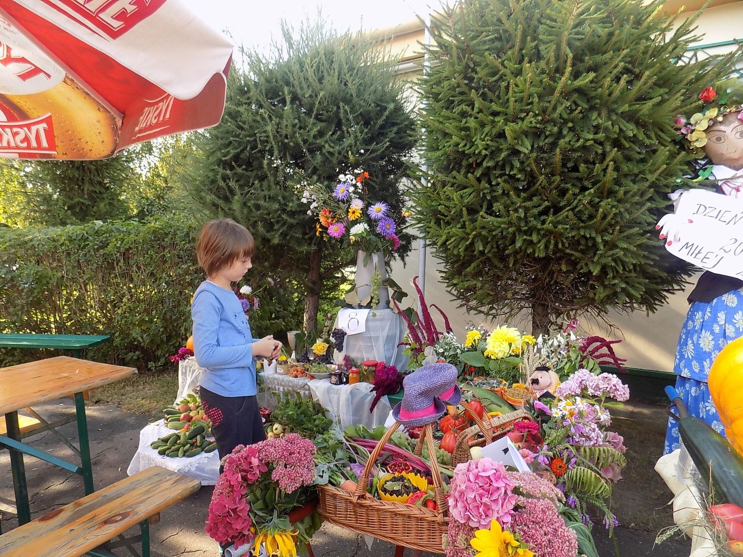 Nie było stołu zastawionego plonami. Przygotowano natomiast barwną ekspozycję, ułożoną z różnorodnych warzyw, owoców i kwiatów. Duma zupełnie uzasadniona. Ogródki są zadbane, kolorowe, pełne warzyw, kwiatów i zieleni. Pomidory kuszą, dynie się uśmiechają, a śliwy gałęzie przechylają. Ma się wrażenie, że palące słońce omijało w najbardziej upalnych dniach ogrody przy ul. Czechosłowackiej, bo żadnej suszy tam zobaczyć nie można. I tylko oddech zbliżającej się jesieni leciutko złoci liście, a jabłka czerwieni.