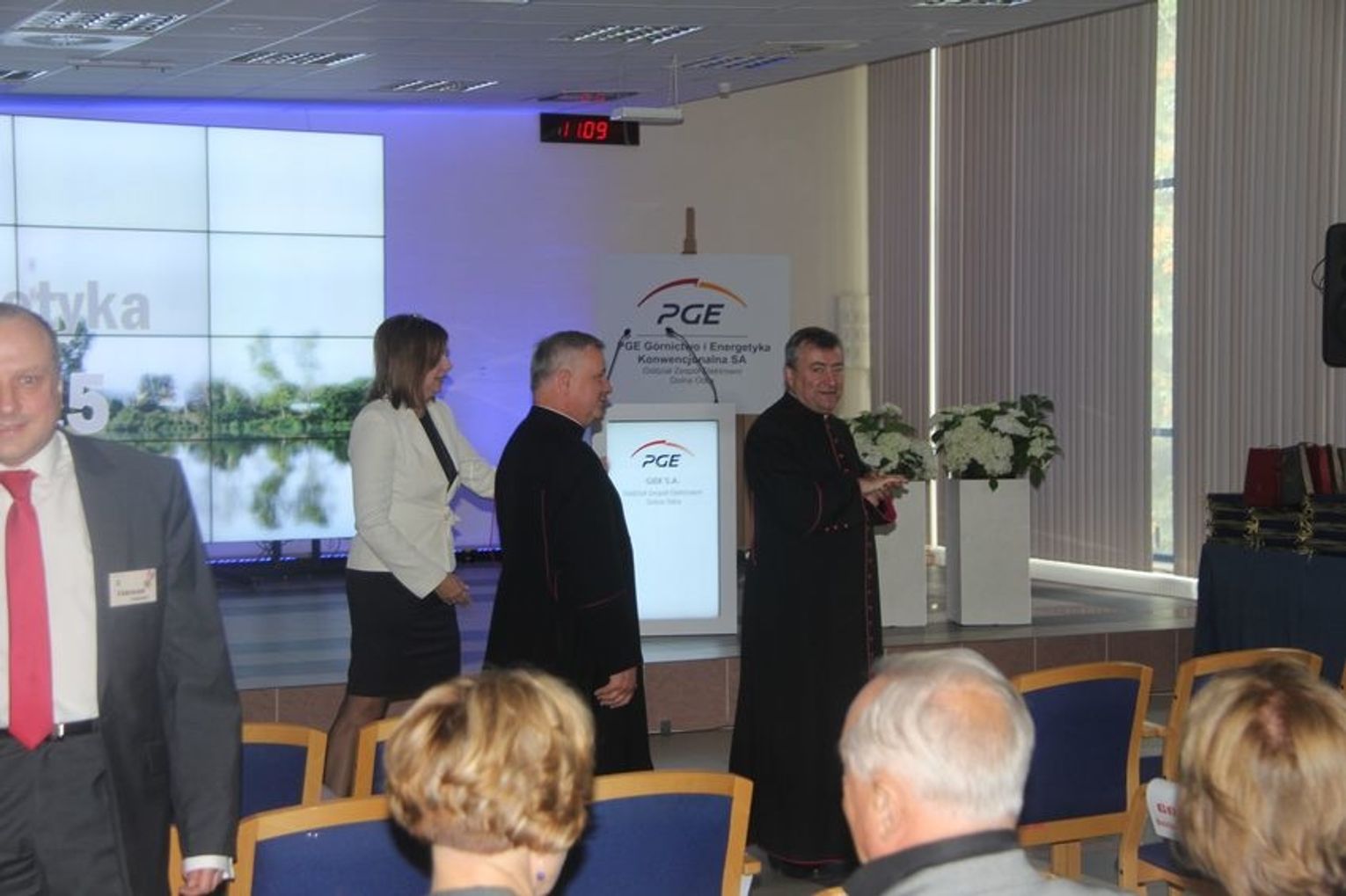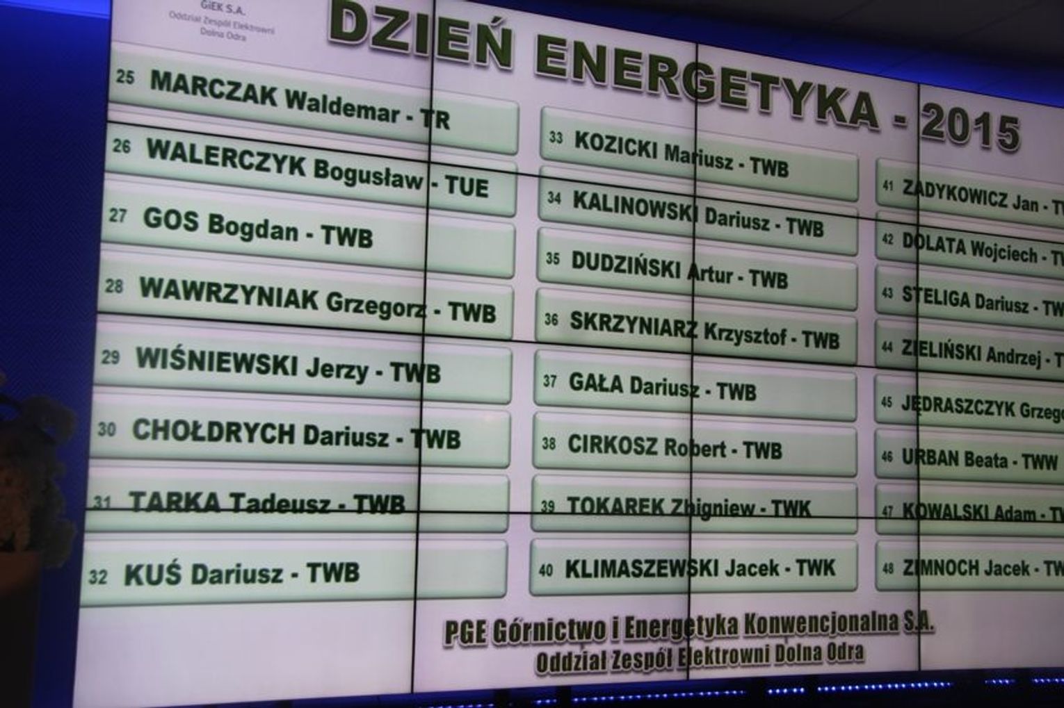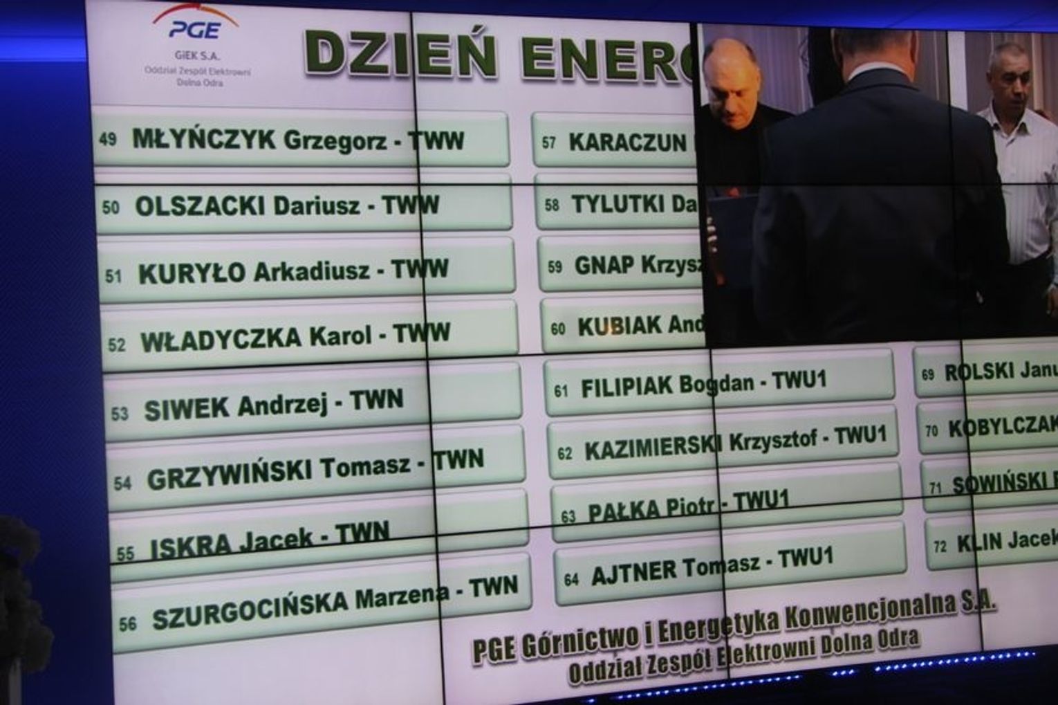 Wcześniej została odprawiona msza święta za nieżyjących energetyków. Na uroczystości do elektorowni przyszli ks. prałat Bronisław Kozłowski, ks. dziekan prob. kan. Henryk Krzyżewski, ks. proboszcz kanonik Stanisław Helak.