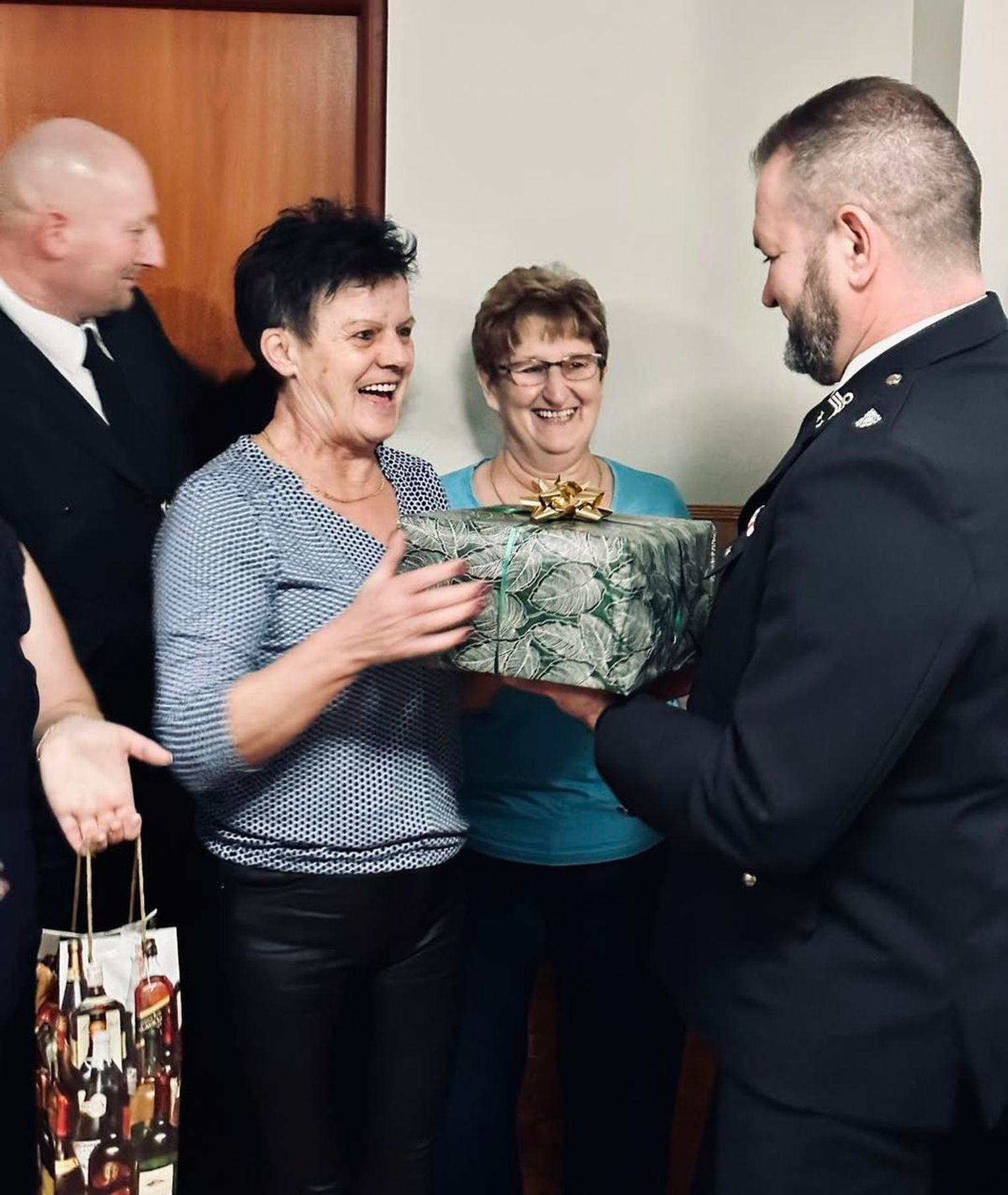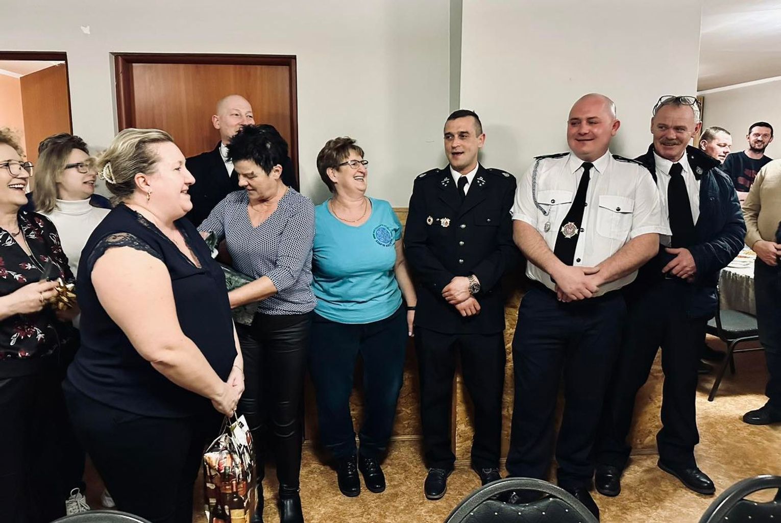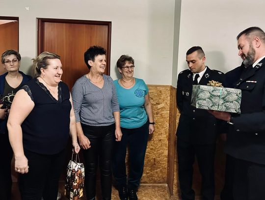 Prezes OSP Krzywin Mariusz Gralak w imieniu strażaków podziękował za cały rok współpracy i wręczył upominek. Panie otrzymały w prezencie korale, które będą dopełnieniem ich strojów podczas uroczystości.