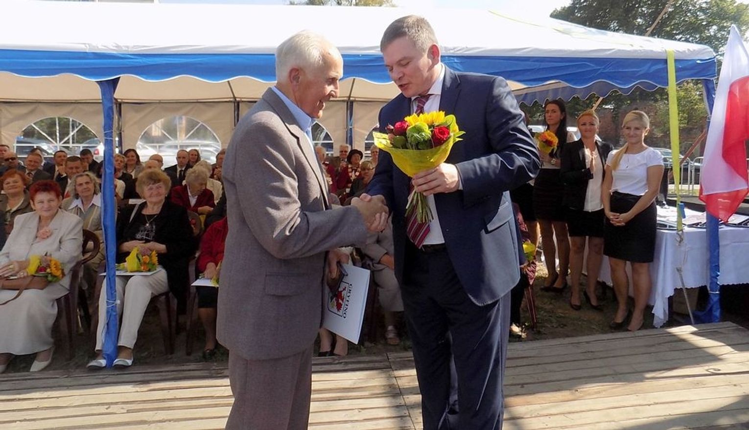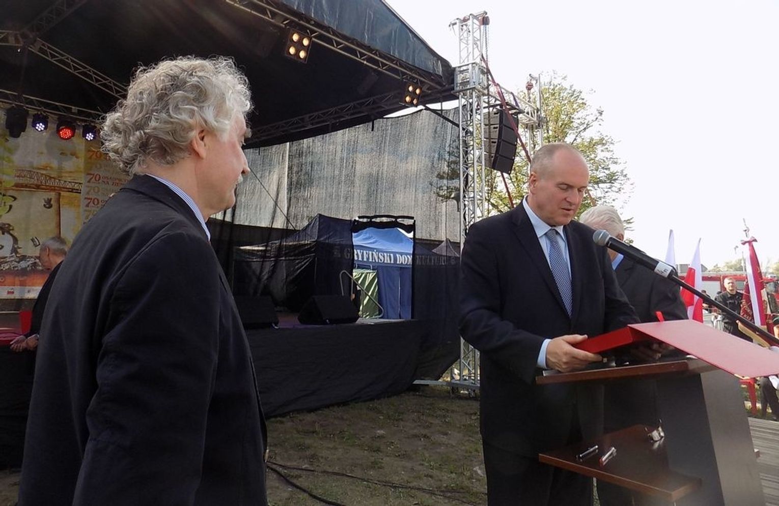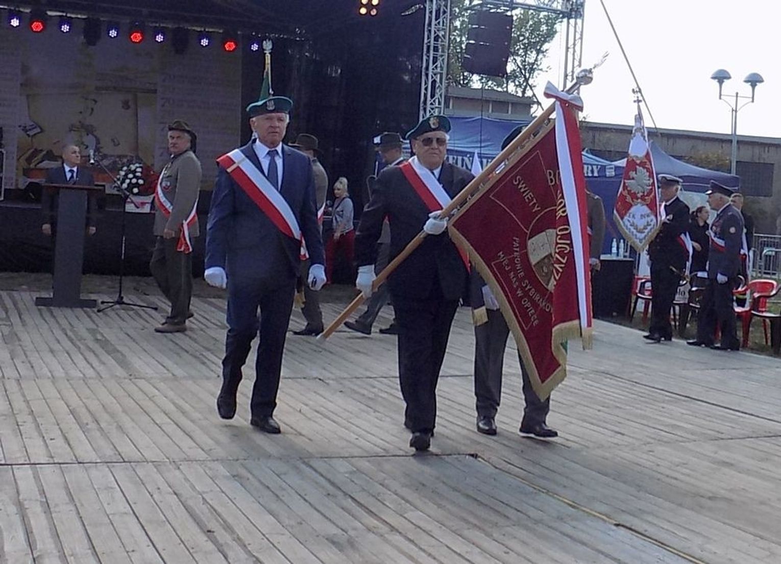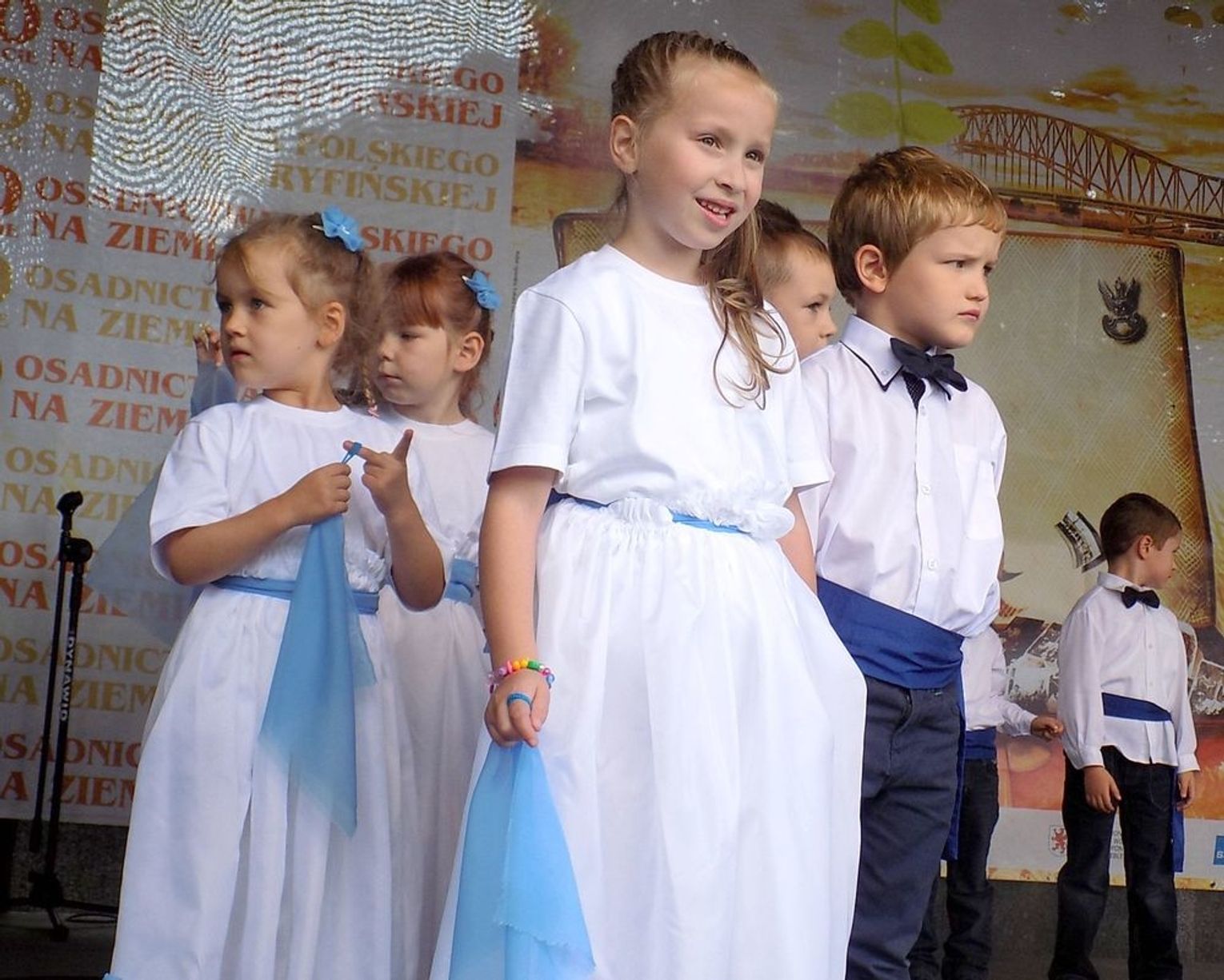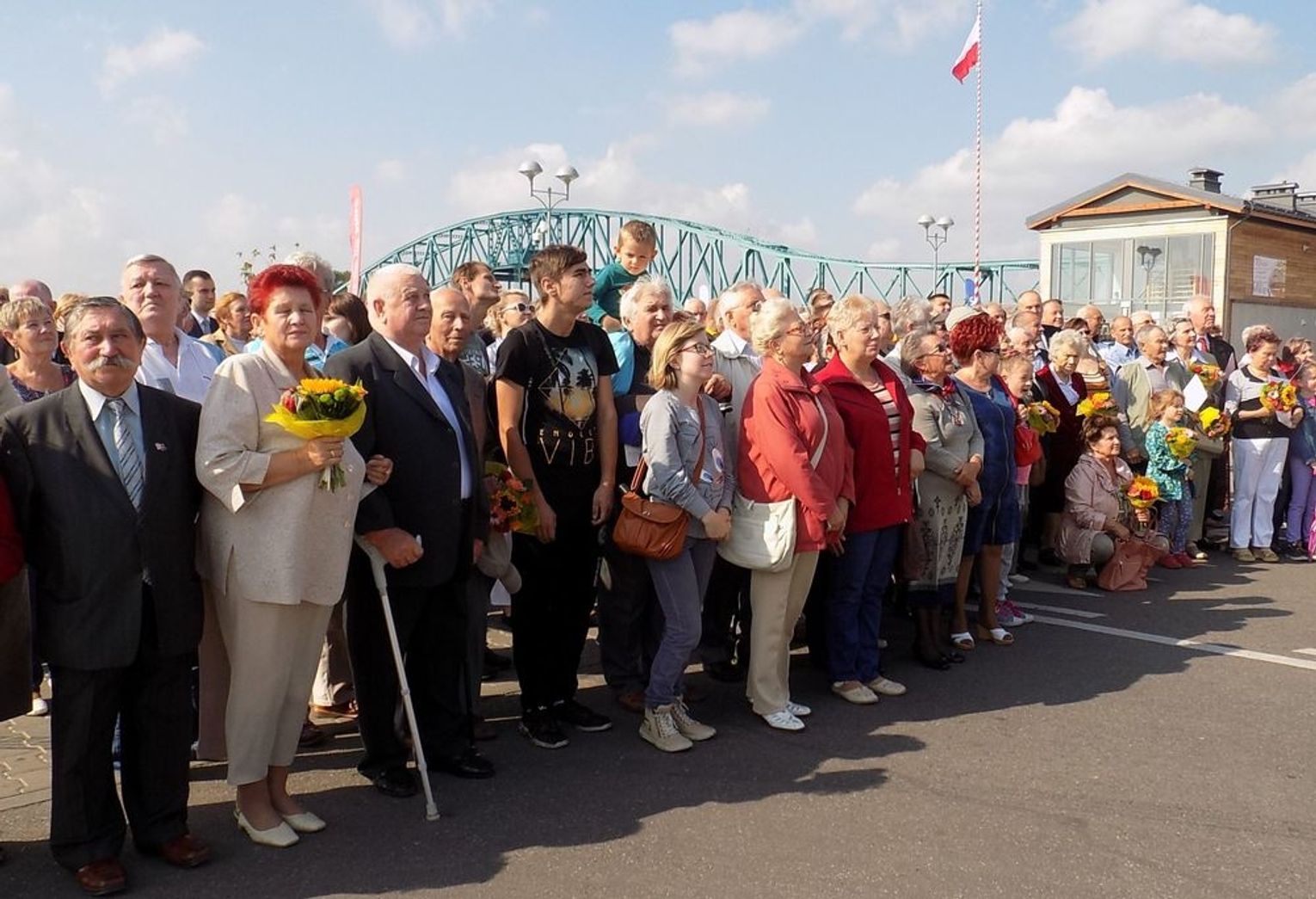 Po mszy św. dalsza część uroczystości z okazji obchodów 70-lecia osadnictwa polskiego na ziemi gryfińskiej odbyła się na nabrzeżu. Mieszkańcy szli z kościoła korowodem, a niektórym z nich towarzyszyło wspomnienie tamtego, nigdy niezapomnianego dnia, kiedy z tobołkami, walizkami postawili nogę na gryfińskiej ziemi. Wielu osadników odeszło już na zawsze, zabierając ze sobą tęsknotę za opuszczonym zielonym krajem. Obecnym towarzyszył sędziwy ks. prałat Bronisław Kozłowski. Teraz zasługują na uznanie i podziękowanie od mieszkańców, władz gminy i powiatu.