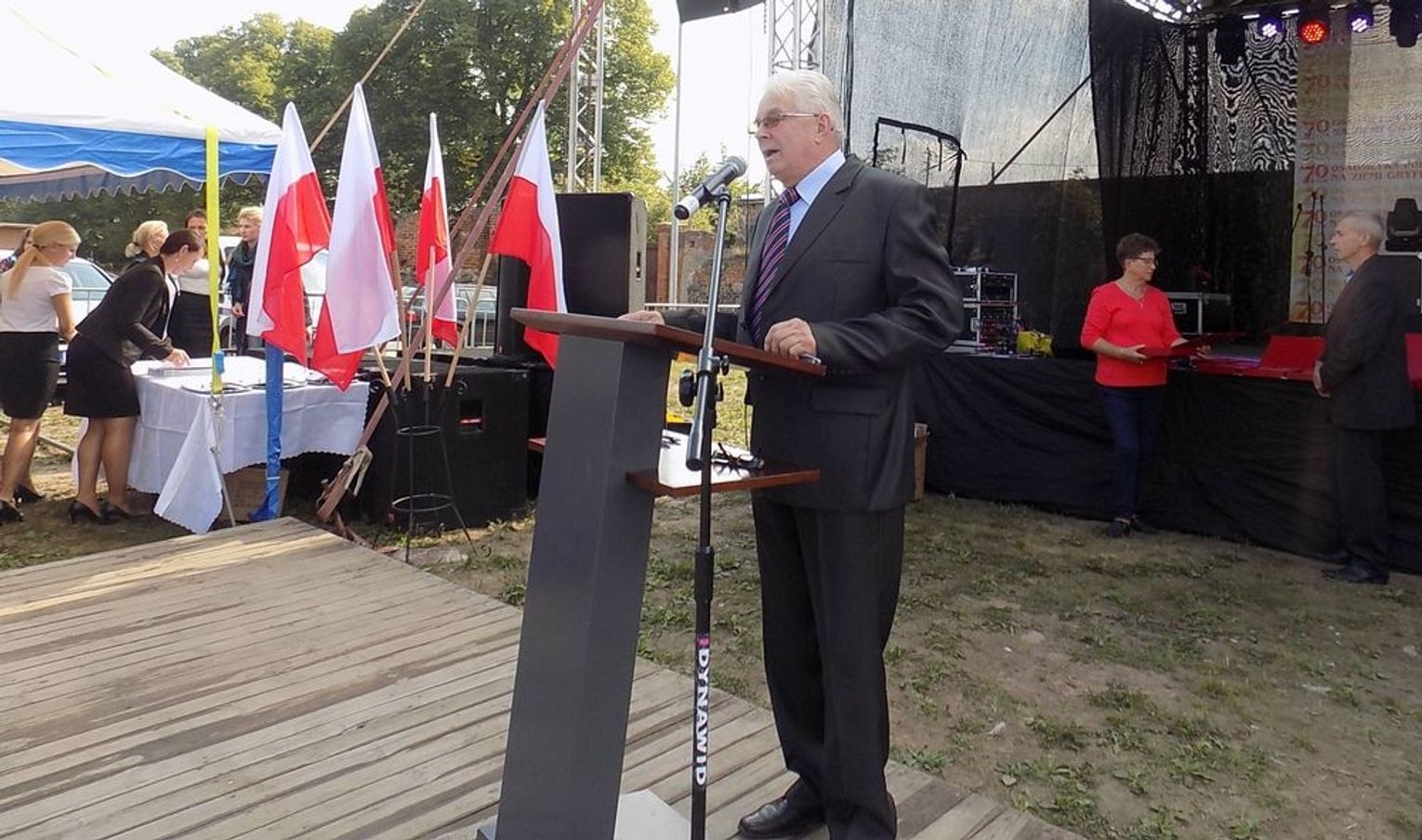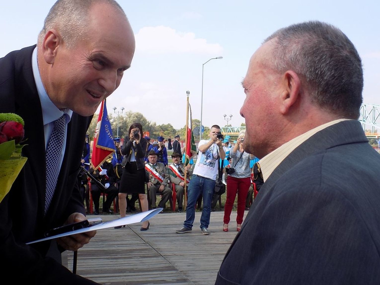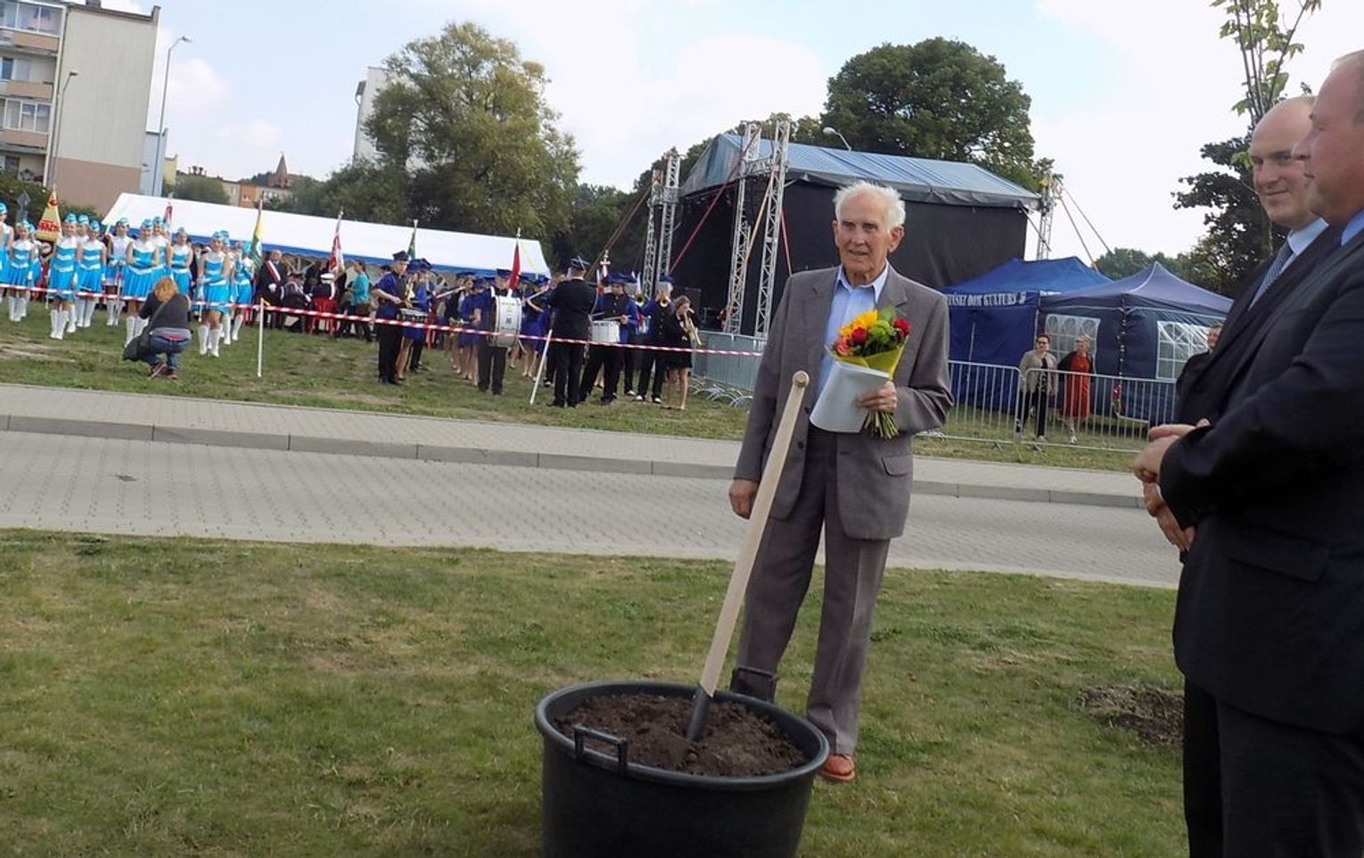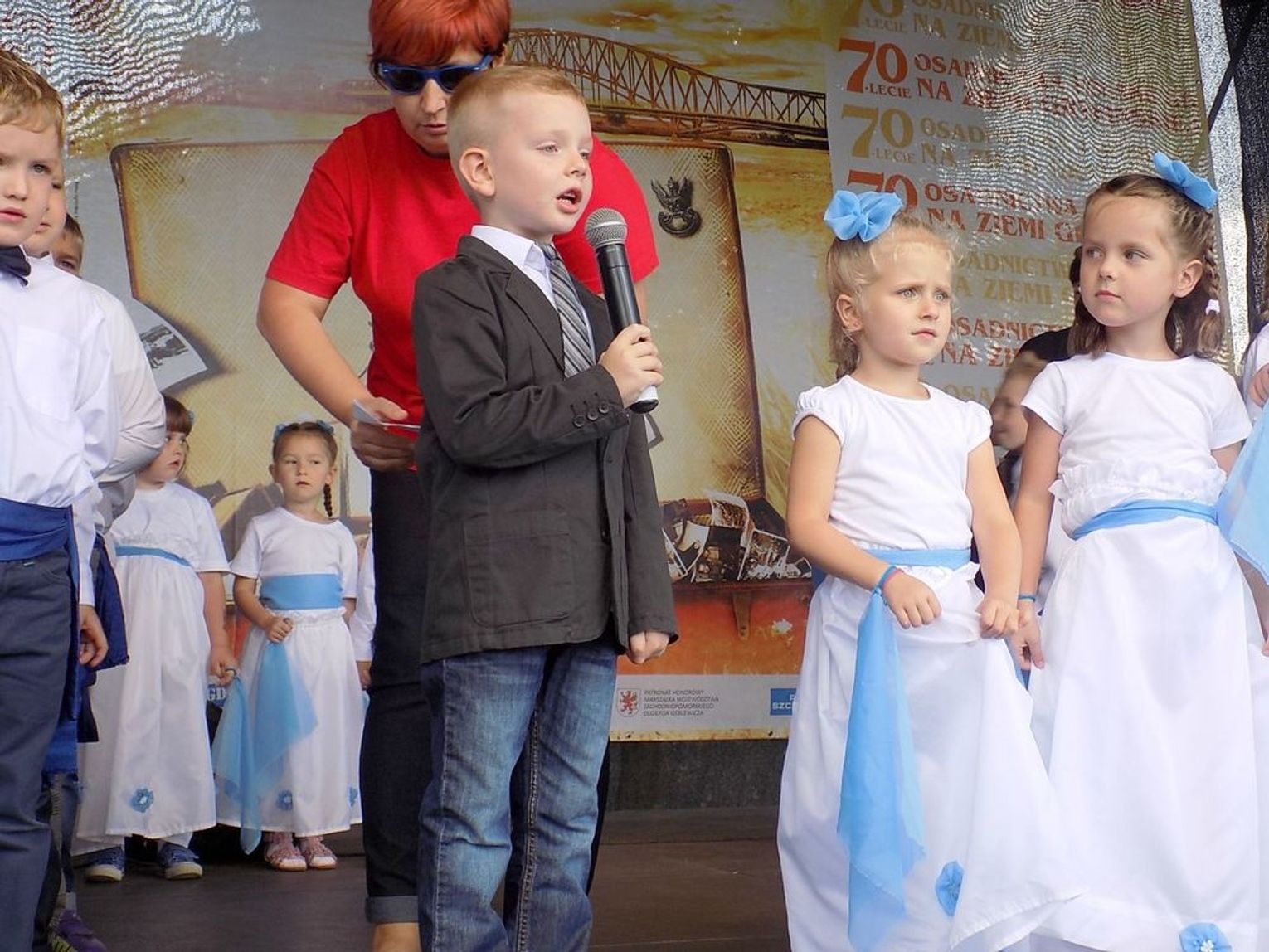 Po mszy św. dalsza część uroczystości z okazji obchodów 70-lecia osadnictwa polskiego na ziemi gryfińskiej odbyła się na nabrzeżu. Mieszkańcy szli z kościoła korowodem, a niektórym z nich towarzyszyło wspomnienie tamtego, nigdy niezapomnianego dnia, kiedy z tobołkami, walizkami postawili nogę na gryfińskiej ziemi. Wielu osadników odeszło już na zawsze, zabierając ze sobą tęsknotę za opuszczonym zielonym krajem. Obecnym towarzyszył sędziwy ks. prałat Bronisław Kozłowski. Teraz zasługują na uznanie i podziękowanie od mieszkańców, władz gminy i powiatu.