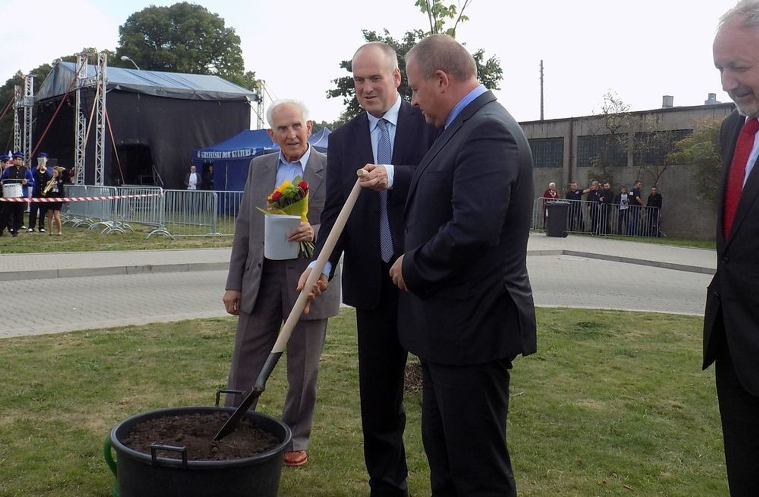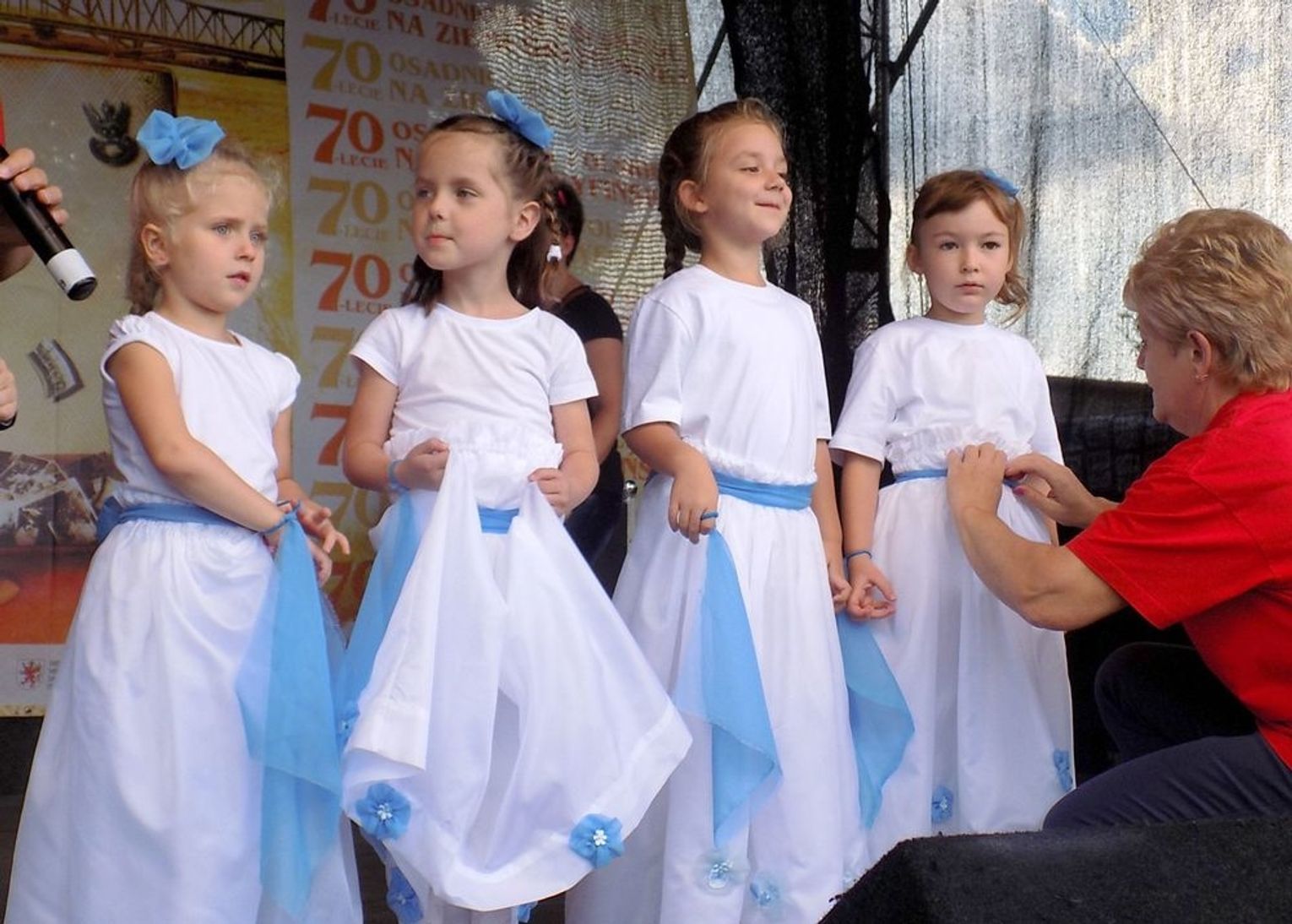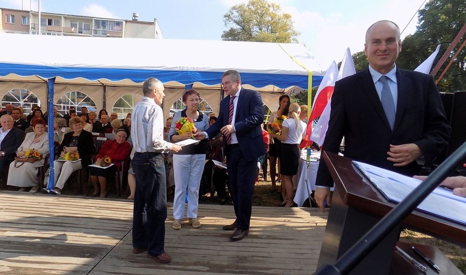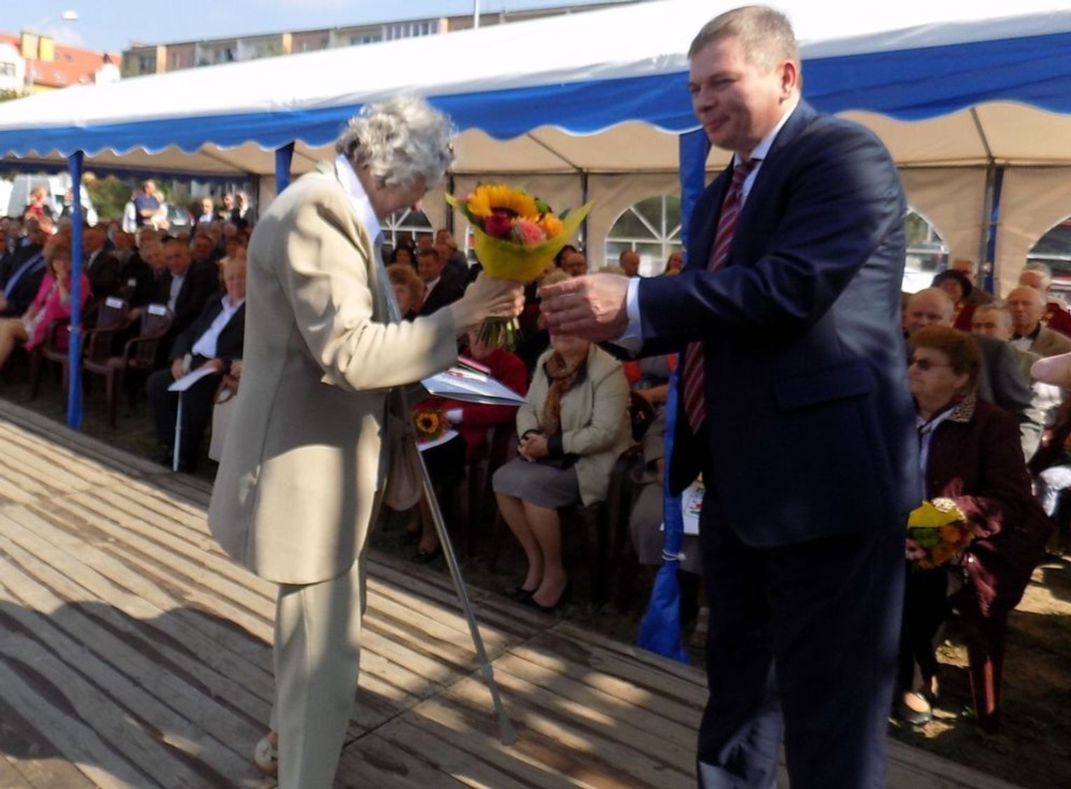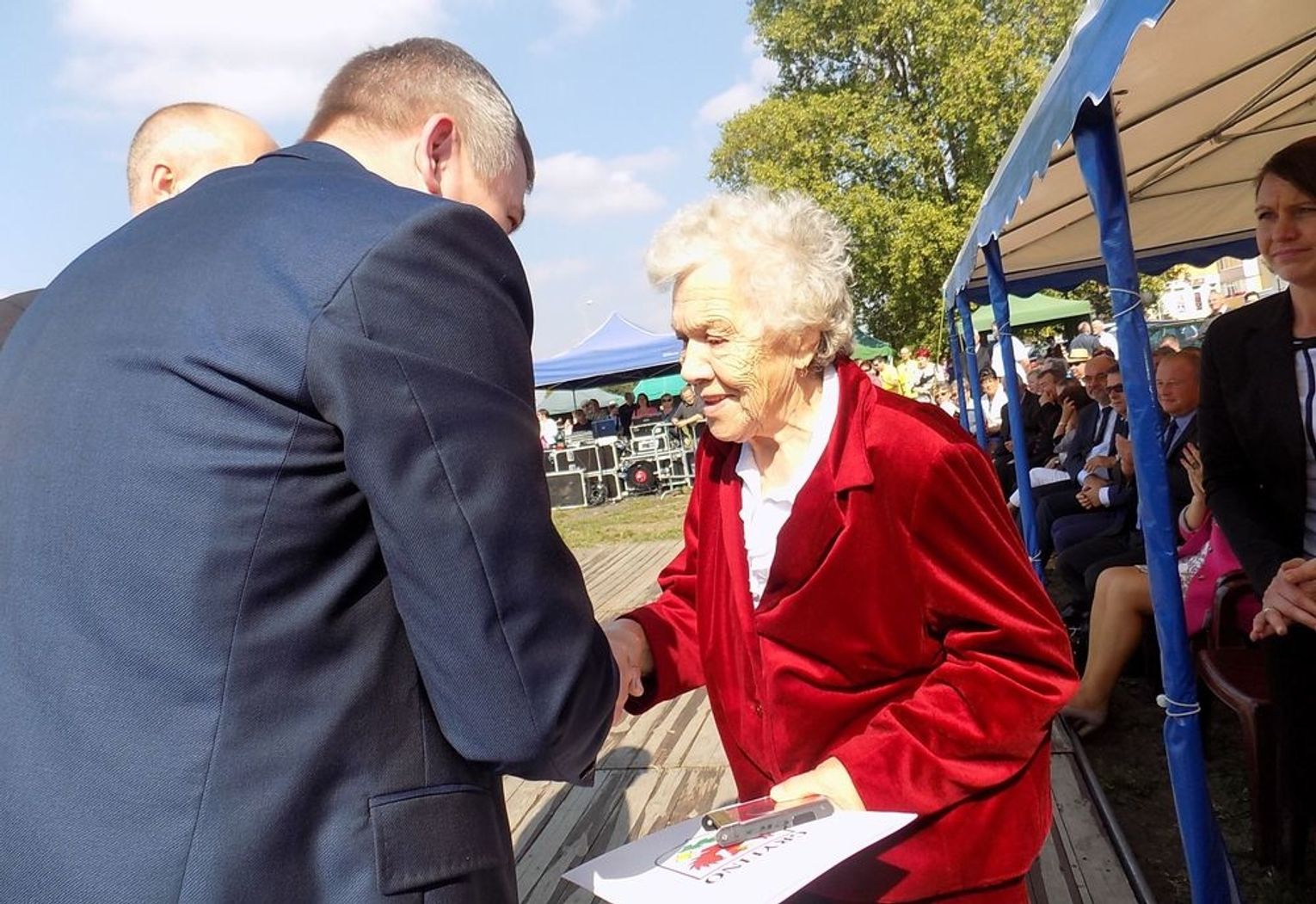 Po mszy św. dalsza część uroczystości z okazji obchodów 70-lecia osadnictwa polskiego na ziemi gryfińskiej odbyła się na nabrzeżu. Mieszkańcy szli z kościoła korowodem, a niektórym z nich towarzyszyło wspomnienie tamtego, nigdy niezapomnianego dnia, kiedy z tobołkami, walizkami postawili nogę na gryfińskiej ziemi. Wielu osadników odeszło już na zawsze, zabierając ze sobą tęsknotę za opuszczonym zielonym krajem. Obecnym towarzyszył sędziwy ks. prałat Bronisław Kozłowski. Teraz zasługują na uznanie i podziękowanie od mieszkańców, władz gminy i powiatu.