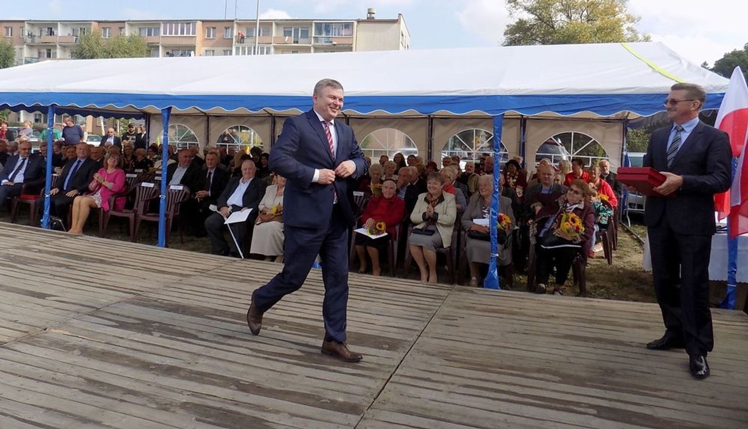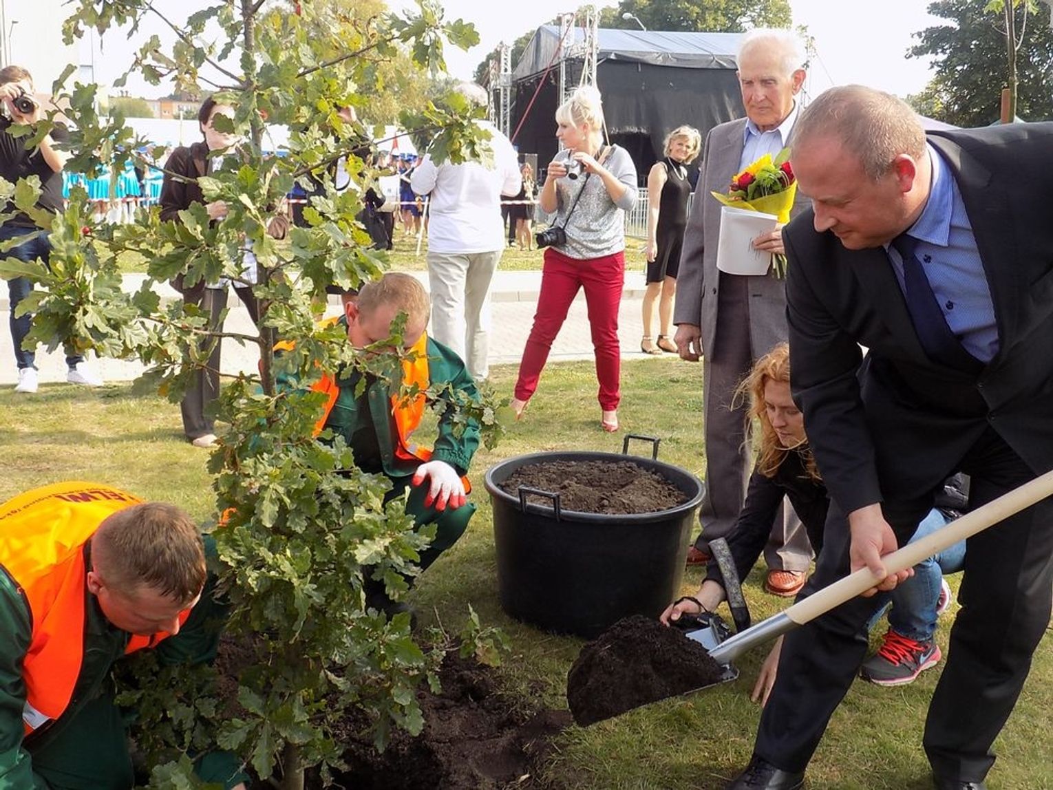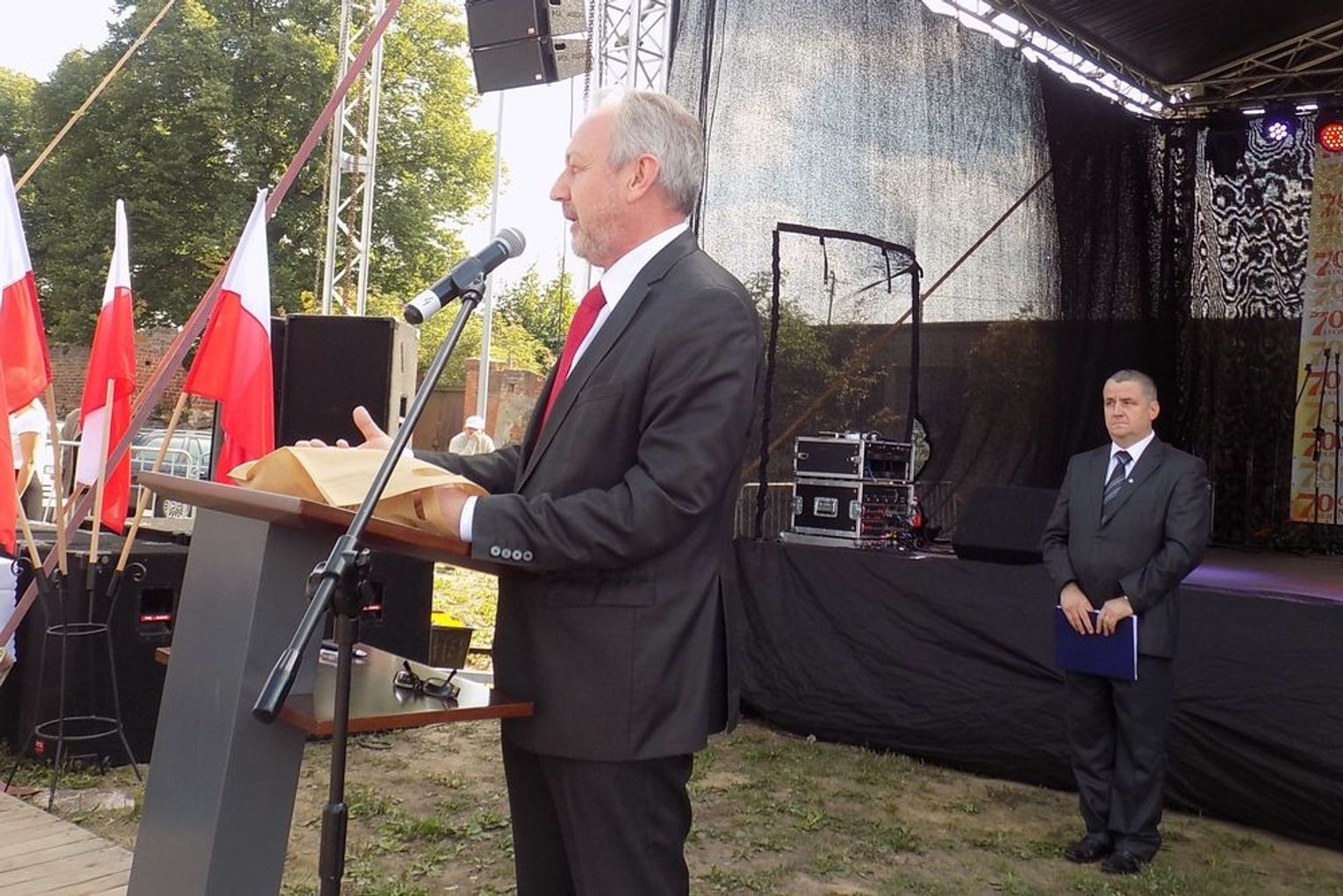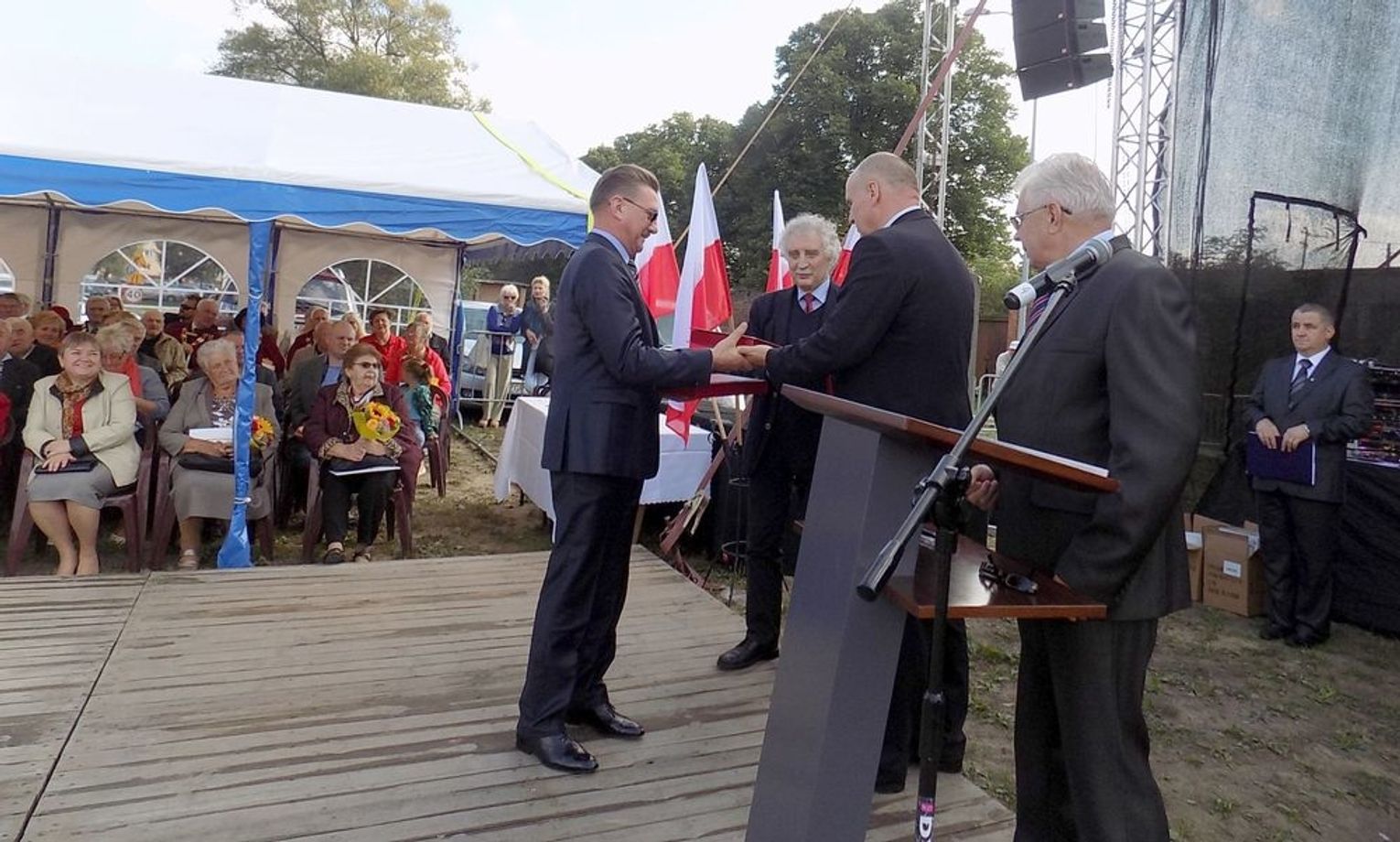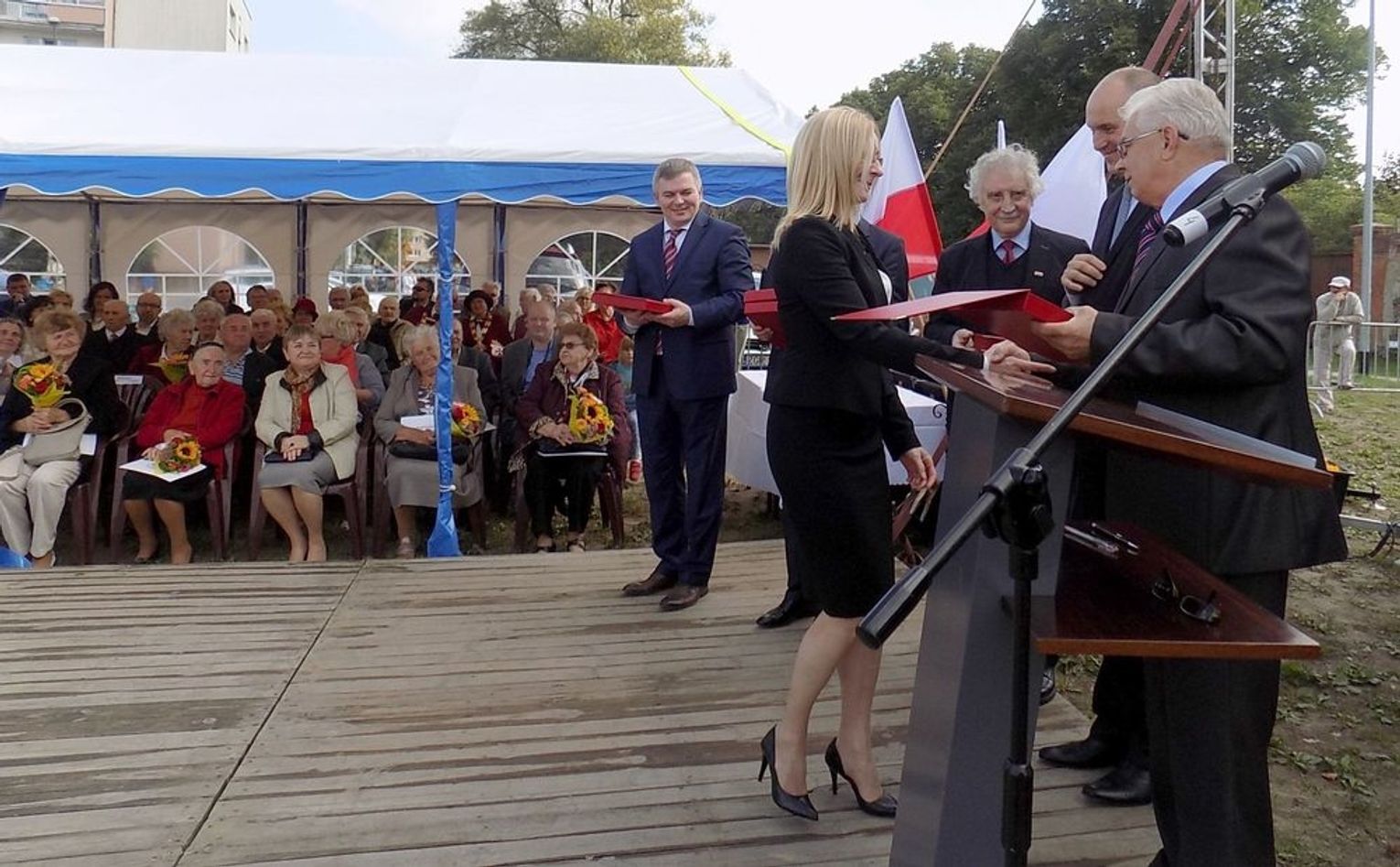 Po mszy św. dalsza część uroczystości z okazji obchodów 70-lecia osadnictwa polskiego na ziemi gryfińskiej odbyła się na nabrzeżu. Mieszkańcy szli z kościoła korowodem, a niektórym z nich towarzyszyło wspomnienie tamtego, nigdy niezapomnianego dnia, kiedy z tobołkami, walizkami postawili nogę na gryfińskiej ziemi. Wielu osadników odeszło już na zawsze, zabierając ze sobą tęsknotę za opuszczonym zielonym krajem. Obecnym towarzyszył sędziwy ks. prałat Bronisław Kozłowski. Teraz zasługują na uznanie i podziękowanie od mieszkańców, władz gminy i powiatu.