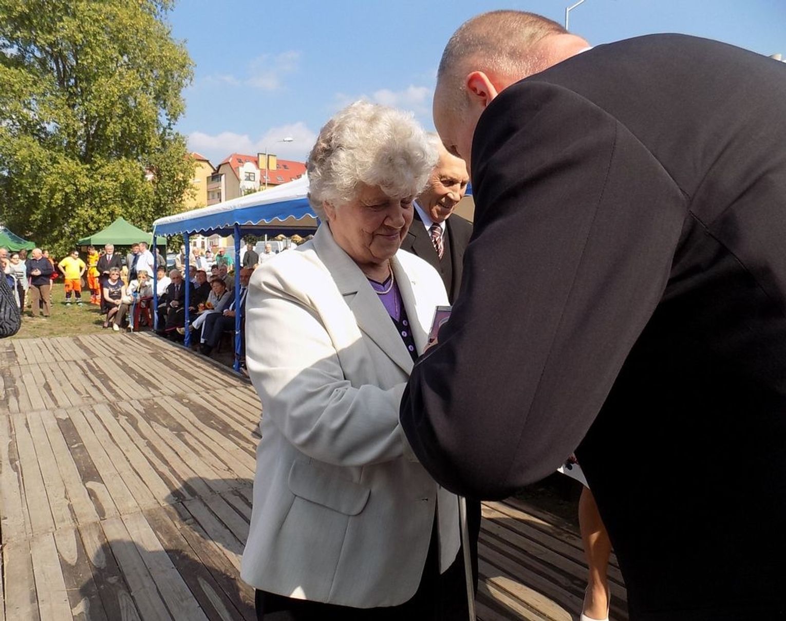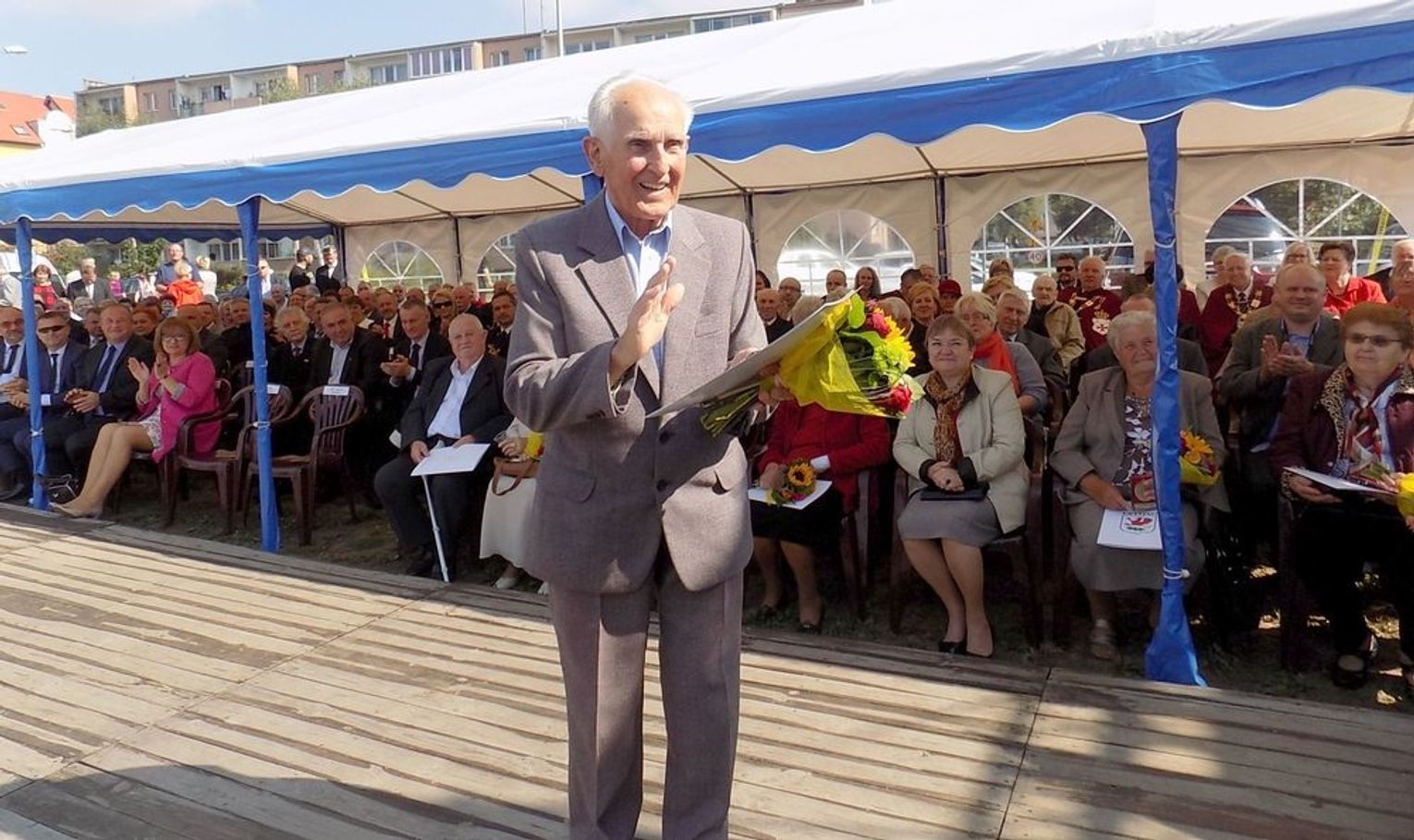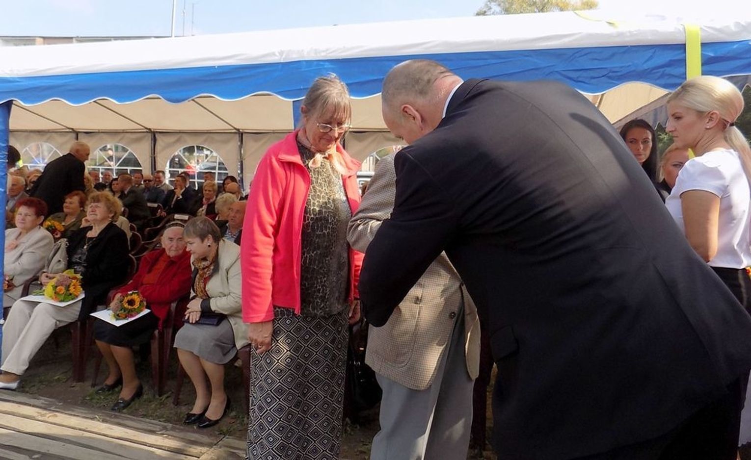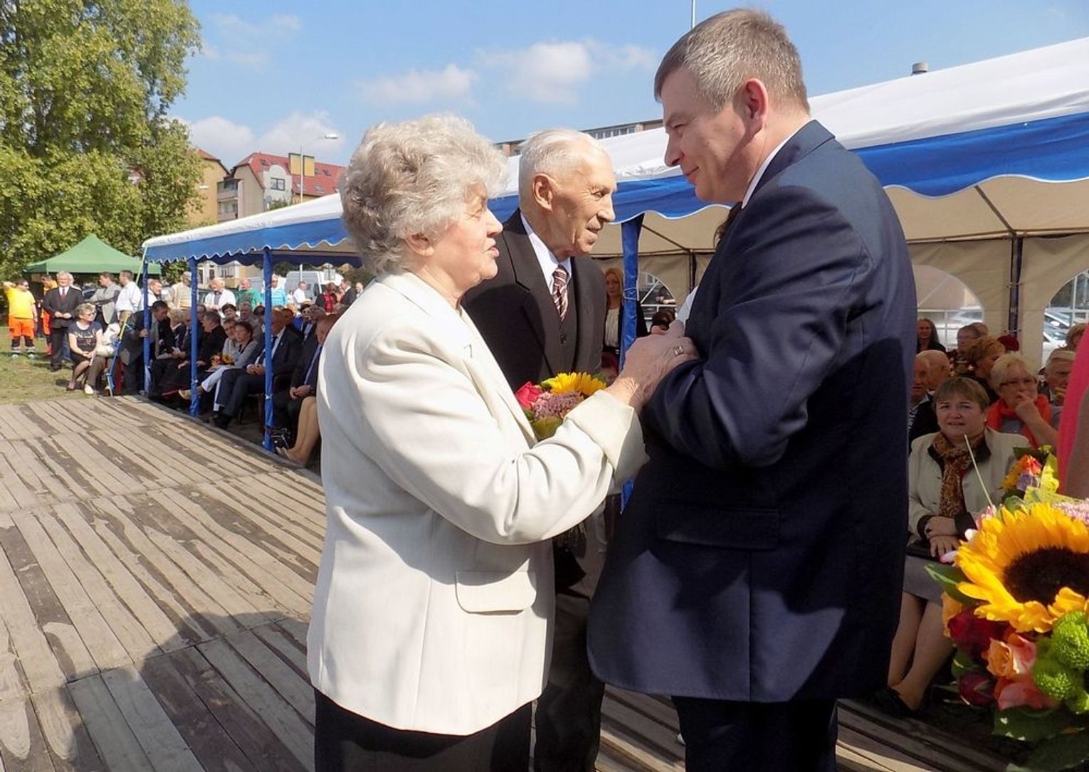 Wielu znakomitych gości pochyliło głowy przed jubilatami 12 września 2015 r. w Gryfinie, m.in. Longin Komołowski (prezes Stowarzyszenia „Wspólnota Polska”, były minister pracy i wicepremier) oraz Mieczysław Jurek (przewodniczący NSZZ "Solidarność" regionu Pomorza Zachodniego). Przybyły delegacje z Kałusza, Raciechowic, Gartz, Polic, Bań, gminy Widuchowa wraz z ks. Robertem Gołębiowskim. Padło wiele zasłużonych słów uznania i podziękowań. Osadnikom wręczono pamiątkowe medale, dyplomy i bukiety kwiatów.