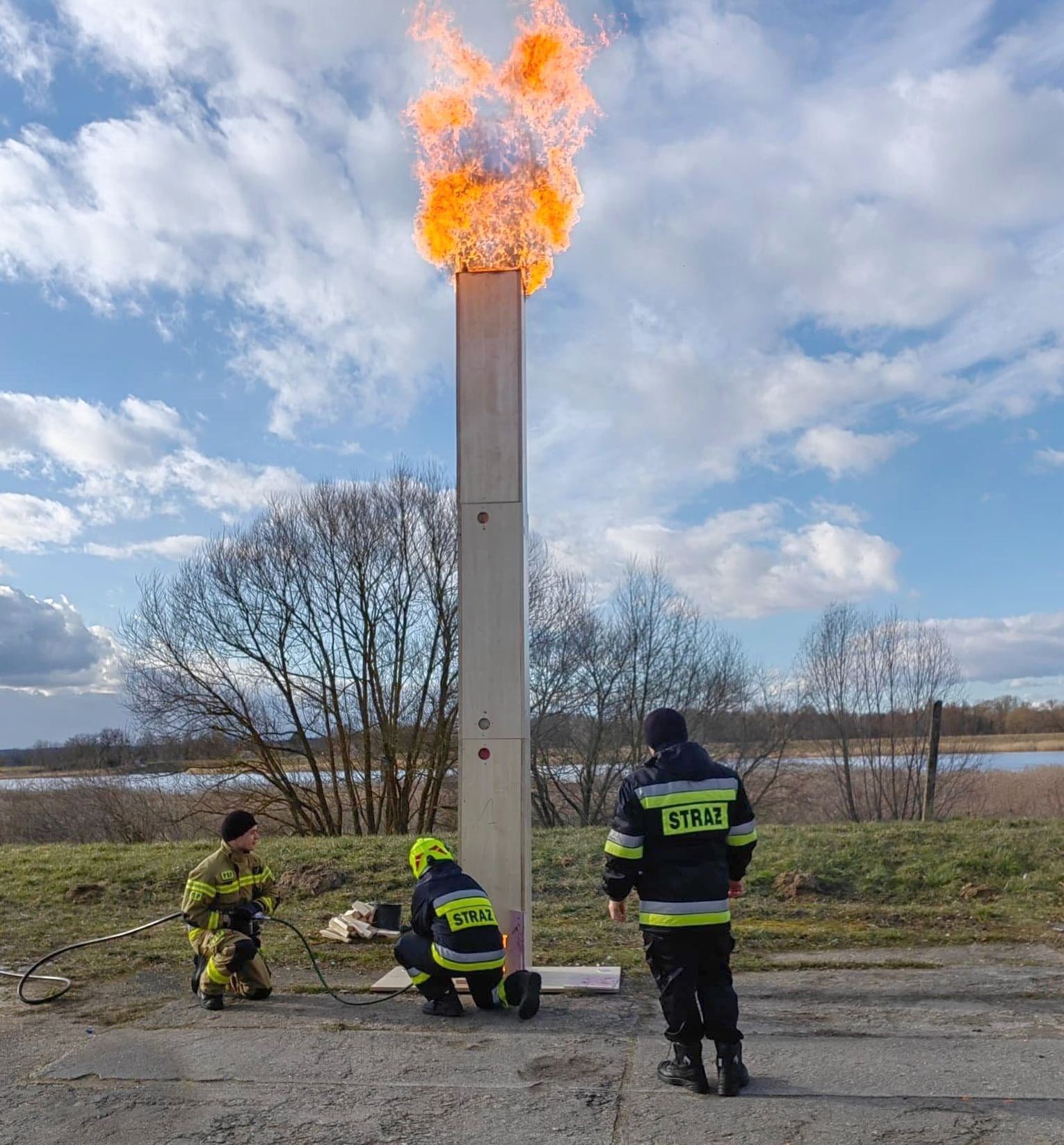 Druhowie z jednostki OSP w Piasku w gm. Cedynia 5 marca 2023 r. brali udział w ćwiczeniach z zakresu gaszenia pożaru komina przy użyciu lancy kominowej.