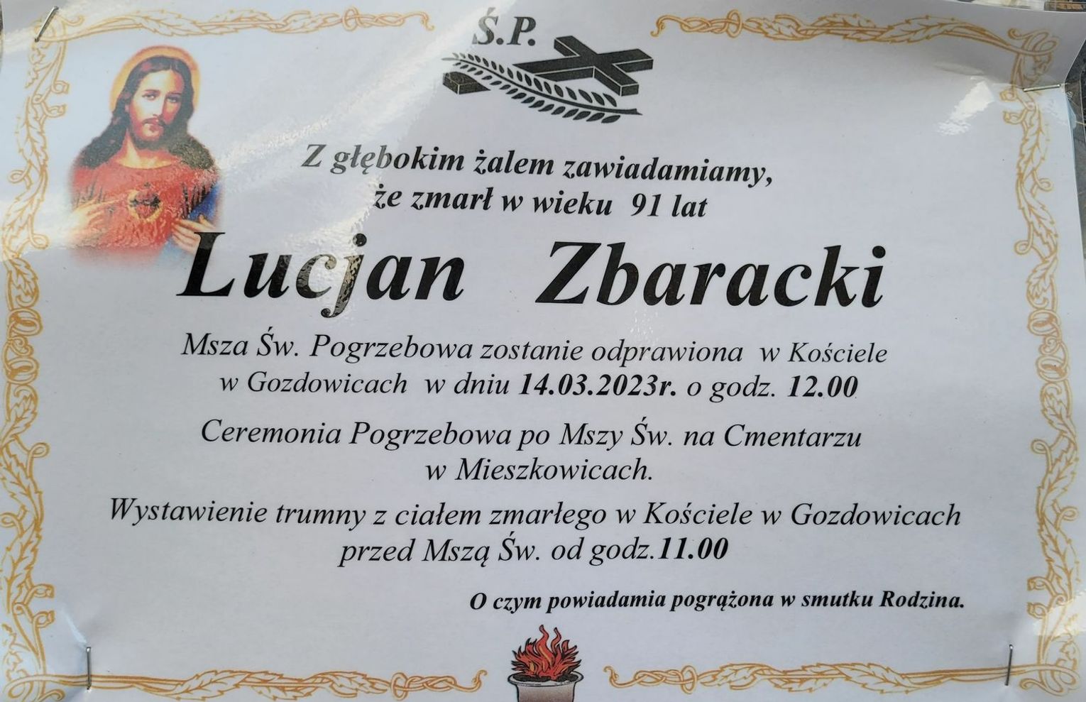 Msza św. żałobna odprawiona zostanie 14 marca 2023 r. o godz. 12.00 w kościele w Gozdowicach.