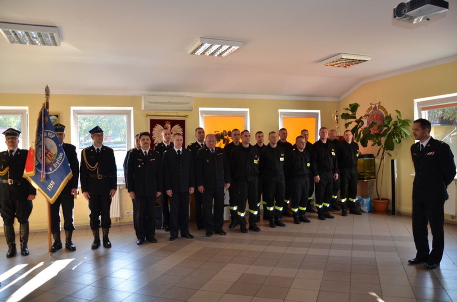 W uroczystym apelu udział wzięli: bryg. Jacek Rudziński – Komendant Powiatowy, mł. bryg. Sławomir Michalski - dowódca Jednostki Ratowniczo-Gaśniczej, funkcjonariusze i pracownicy KP PSP w Gryfinie.