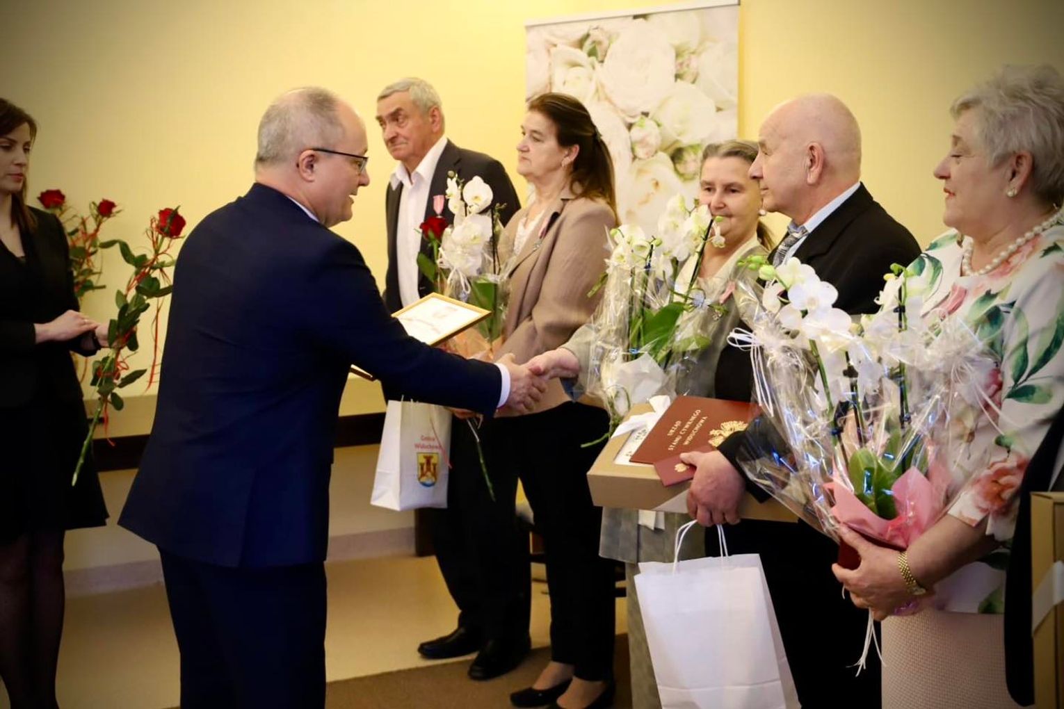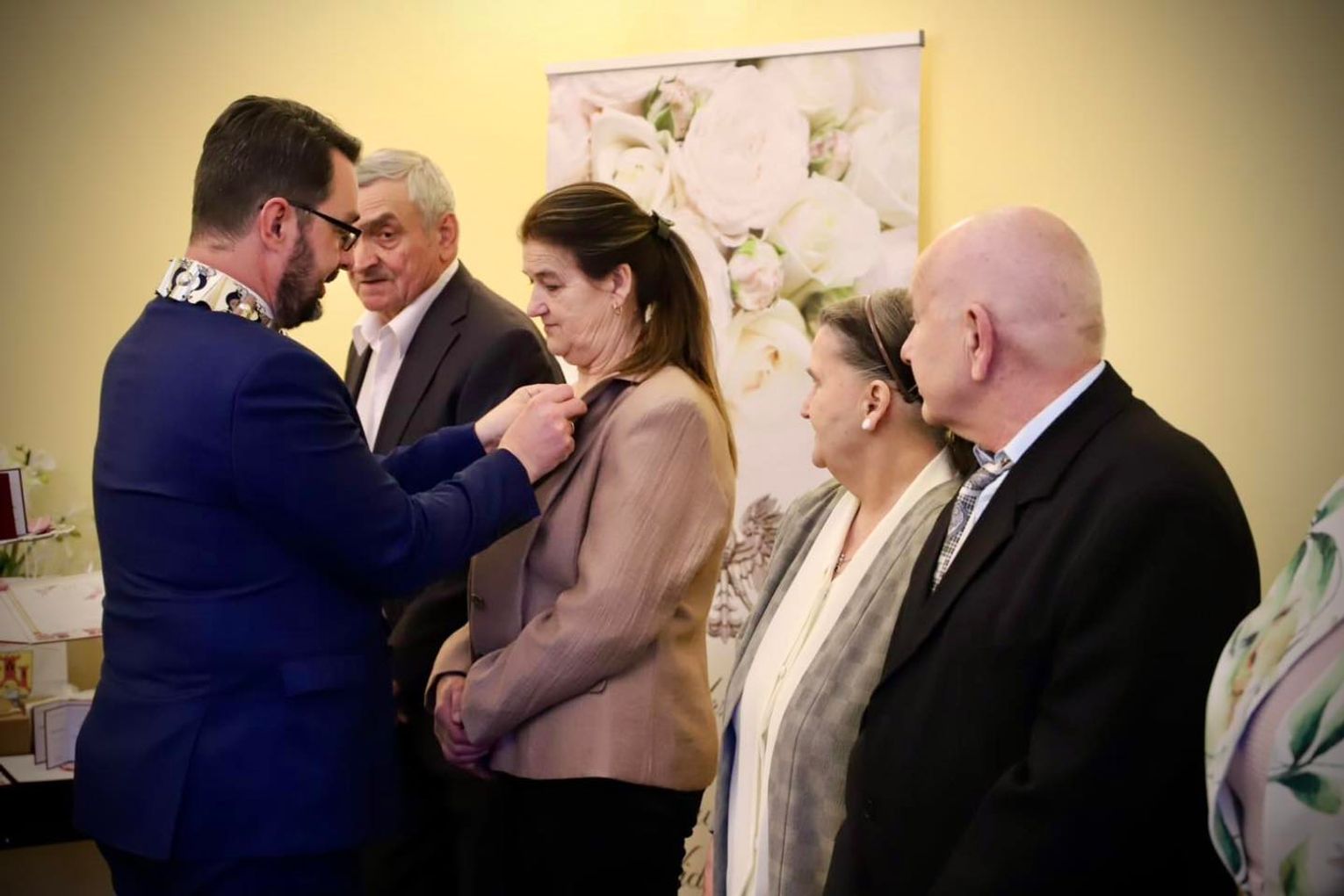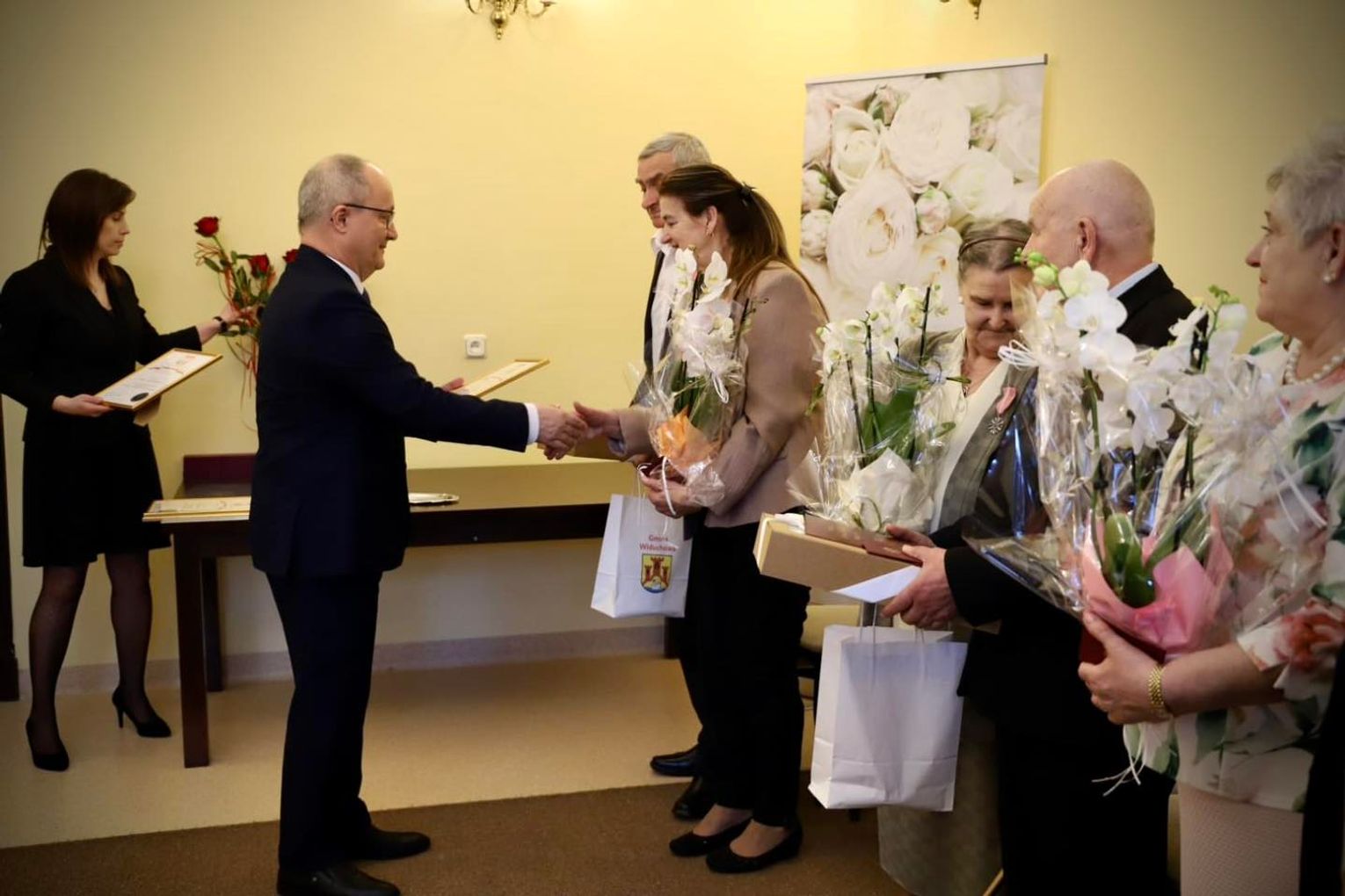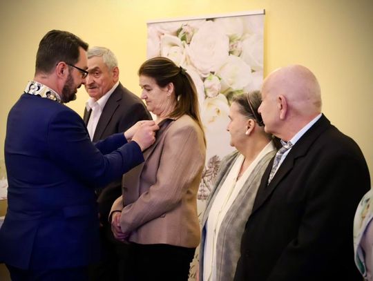 Odznaczenia w imieniu Prezydenta Rzeczypospolitej Polskiej wręczali Paweł Wróbel - wójt gminy Widuchowa, wicewójt Andrzej Stachura oraz kierownik USC Justyna Stasiowska.