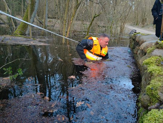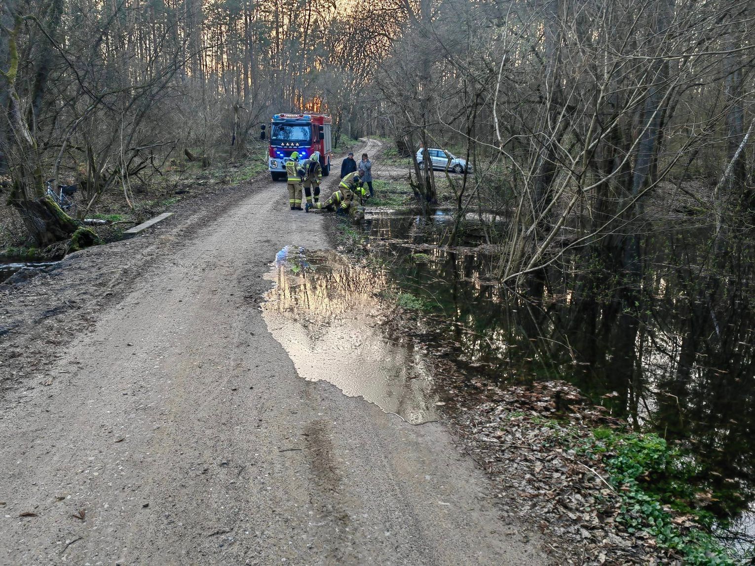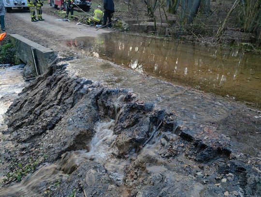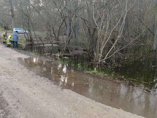 W lesie między Przyjezierzem a Gądnem w gminie Moryń wezbrały wody niewielkiej rzeczki i zaczęły zalewać gminną drogę.