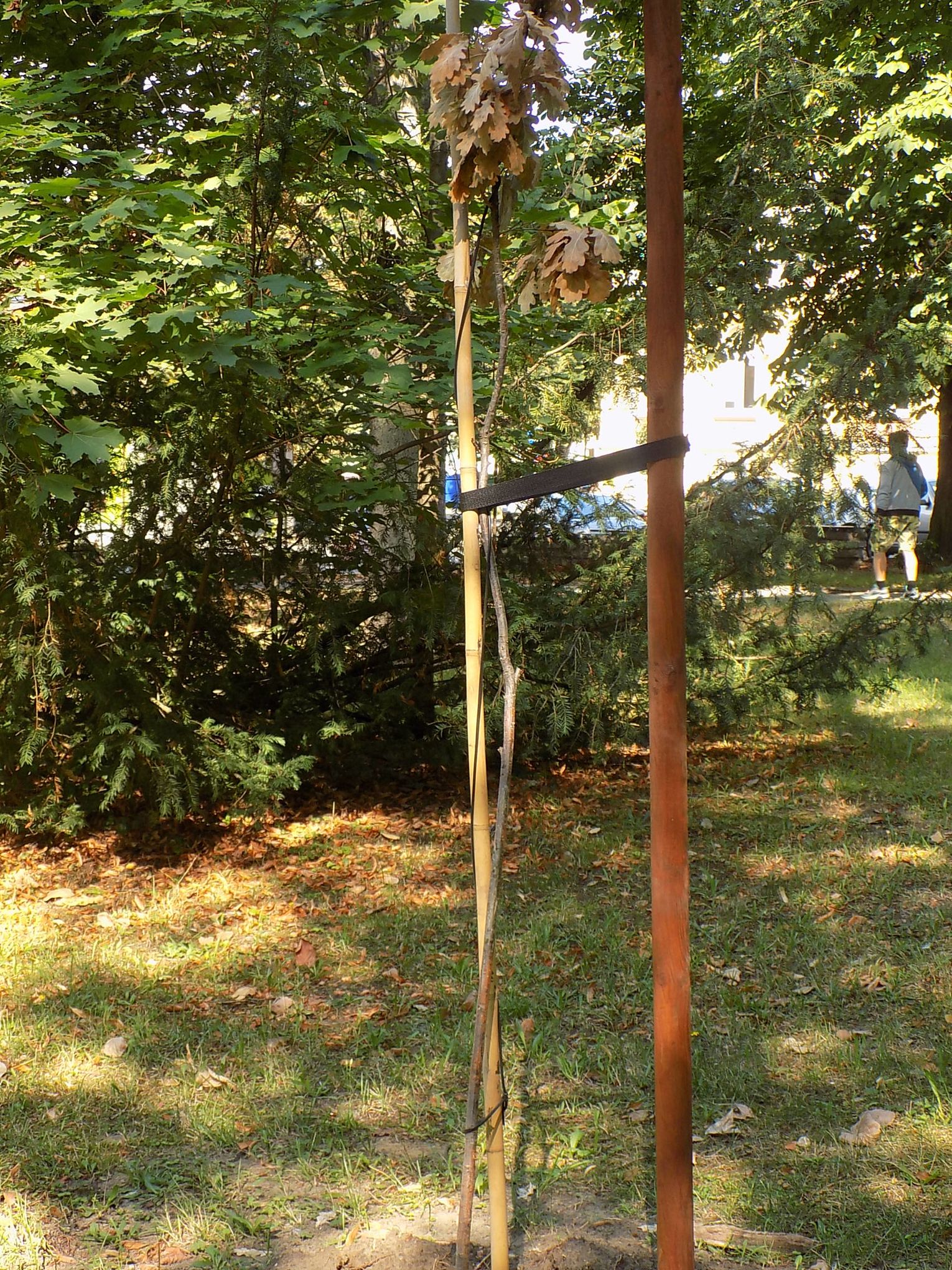 Wiadomo, że o każdą roślinę, zwłaszcza w pierwszym okresie po posadzeniu, należy dbać. Jeżeli się tego nie zrobi, efekt jest taki, jak na zdjęciu. Byłe uczennice pani Stanisławy są oburzone takim zaniedbaniem. Same chętnie zadbałyby o miejsce przy głazie. Może zamiast iglaków, powinno się posadzić róże, krzewy jaśminów czy np. bzów? I nie tylko posadzić, ale i o nie zadbać. Kto to ma robić? Do kogo należy park? Zbliża się 70-lecie szkoły, w której uczyła pani Stanisława. Więc może warto choćby z tej okazji zrobić coś z uschniętymi drzewkami.