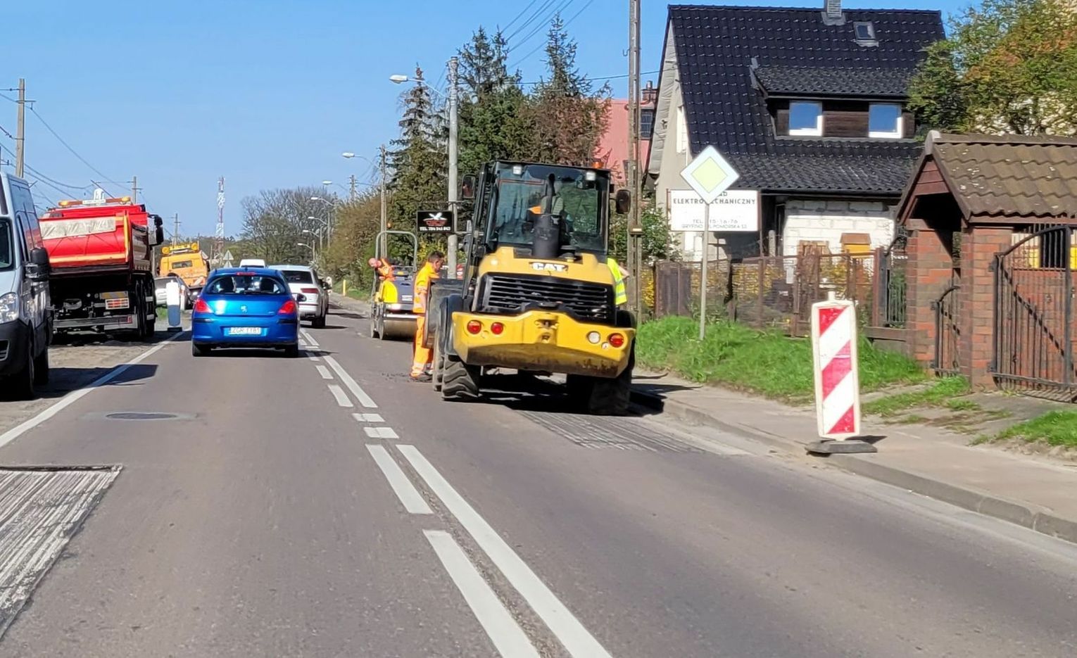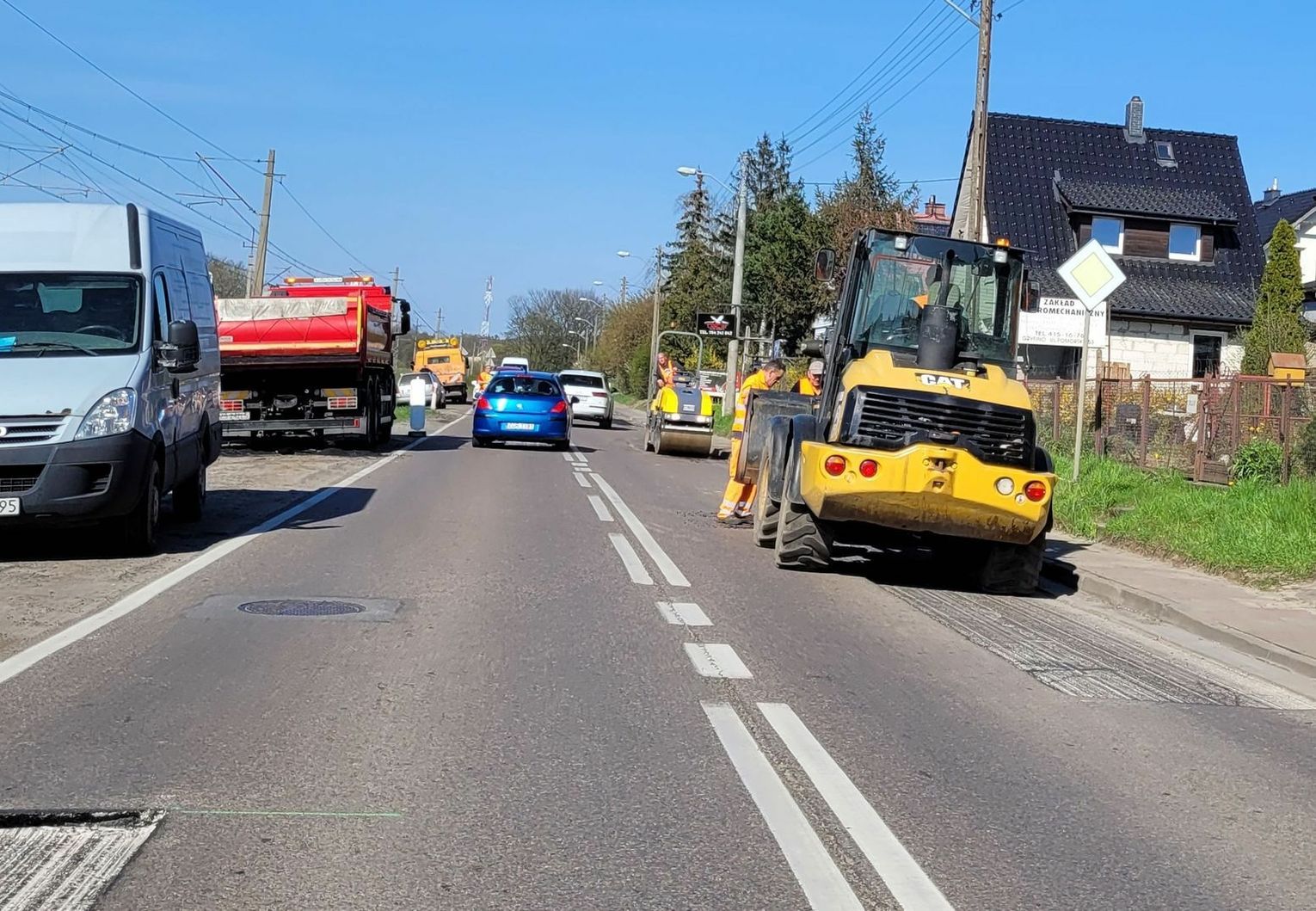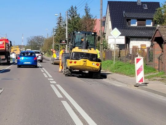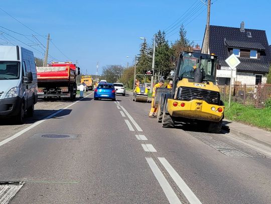 Prace idą niezwykle sprawnie, a przejeżdżaliśmy i obserwowaliśmy kilkakrotnie. Ruch jest wahadłowy i sprawnie prowadzony przez dwóch pracowników. Wszystko przebiega dynamicznie, ale jak nadjedzie się więcej samochodów, to trzeba poczekać. I uważać na dziury!