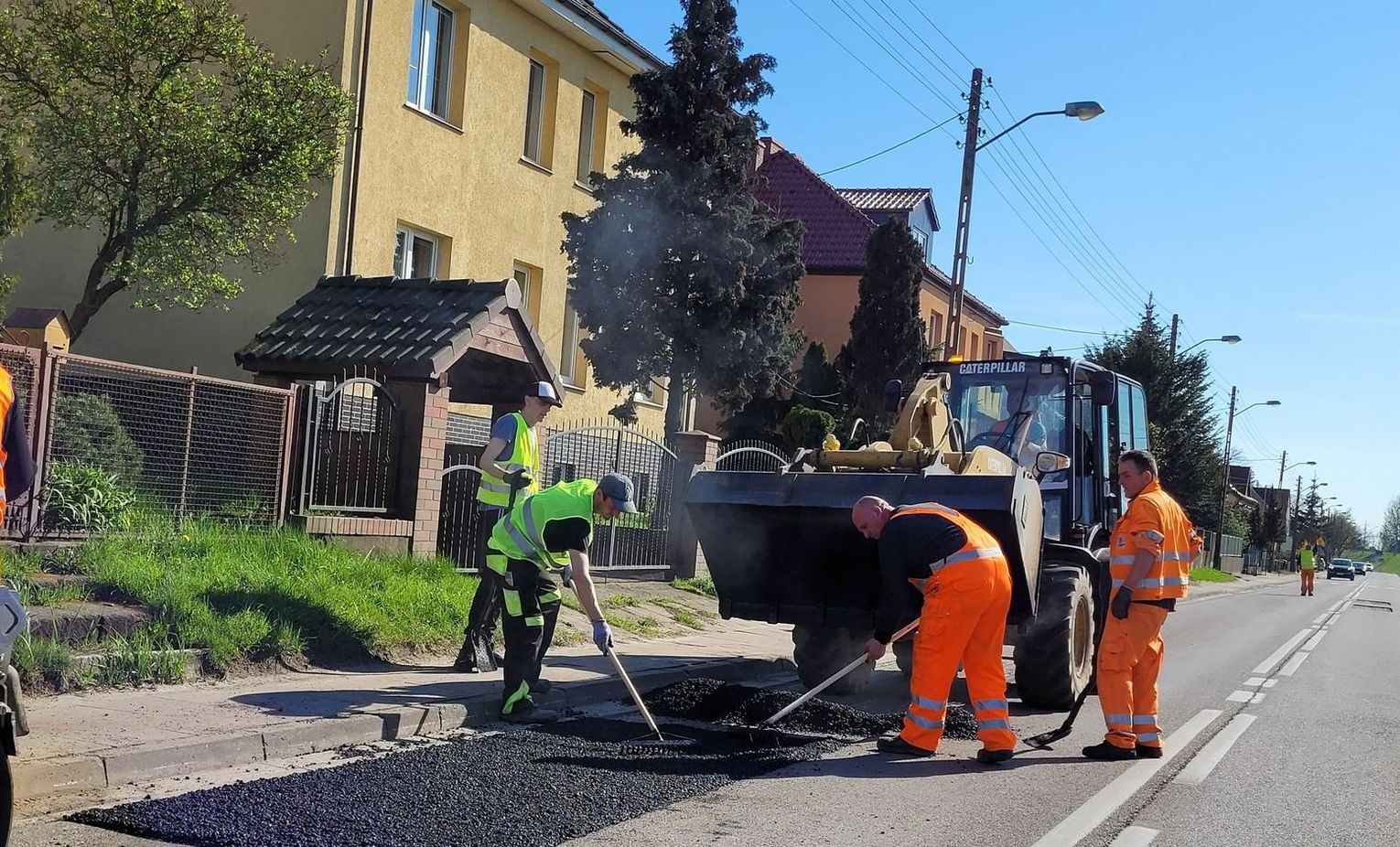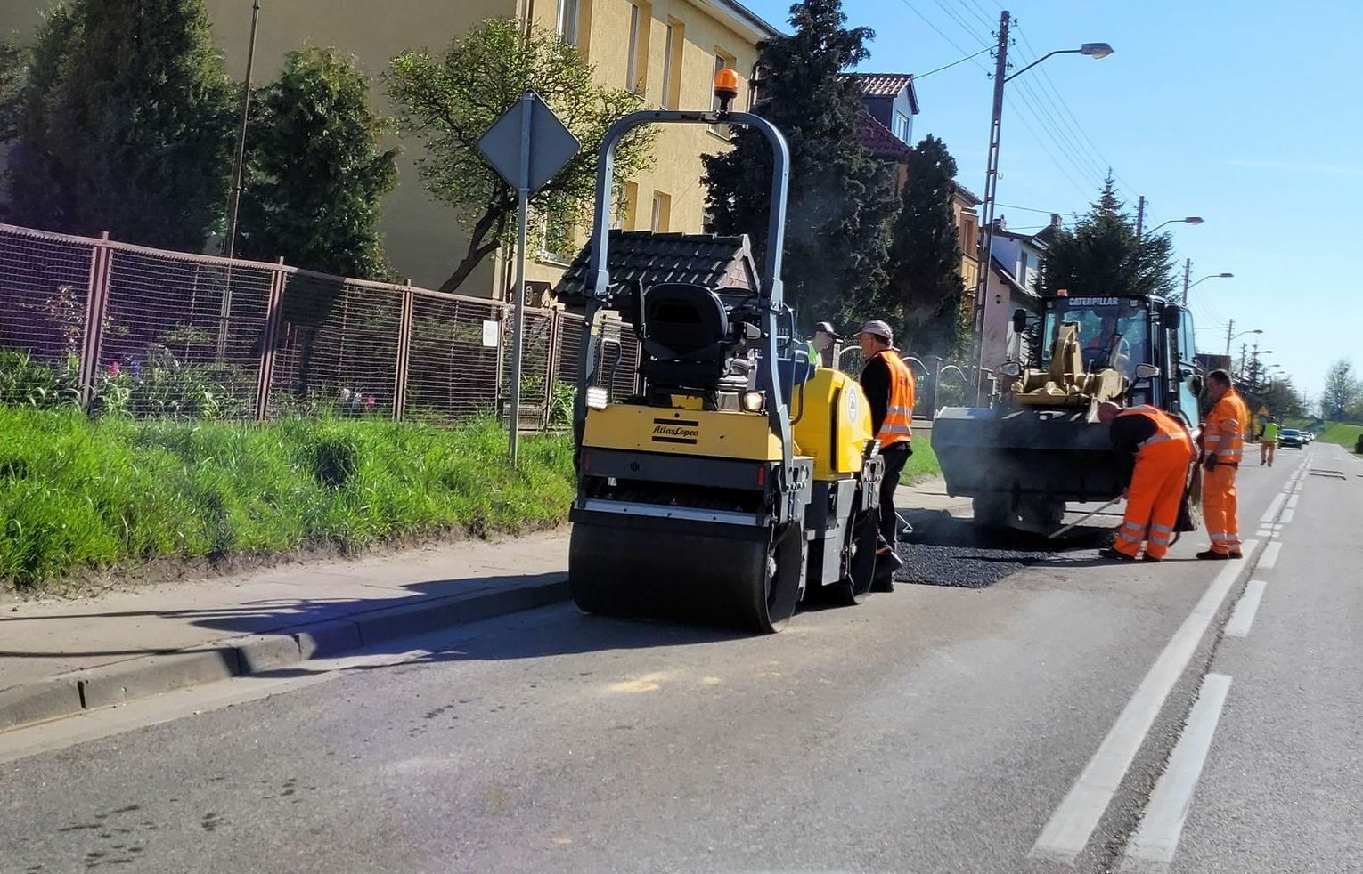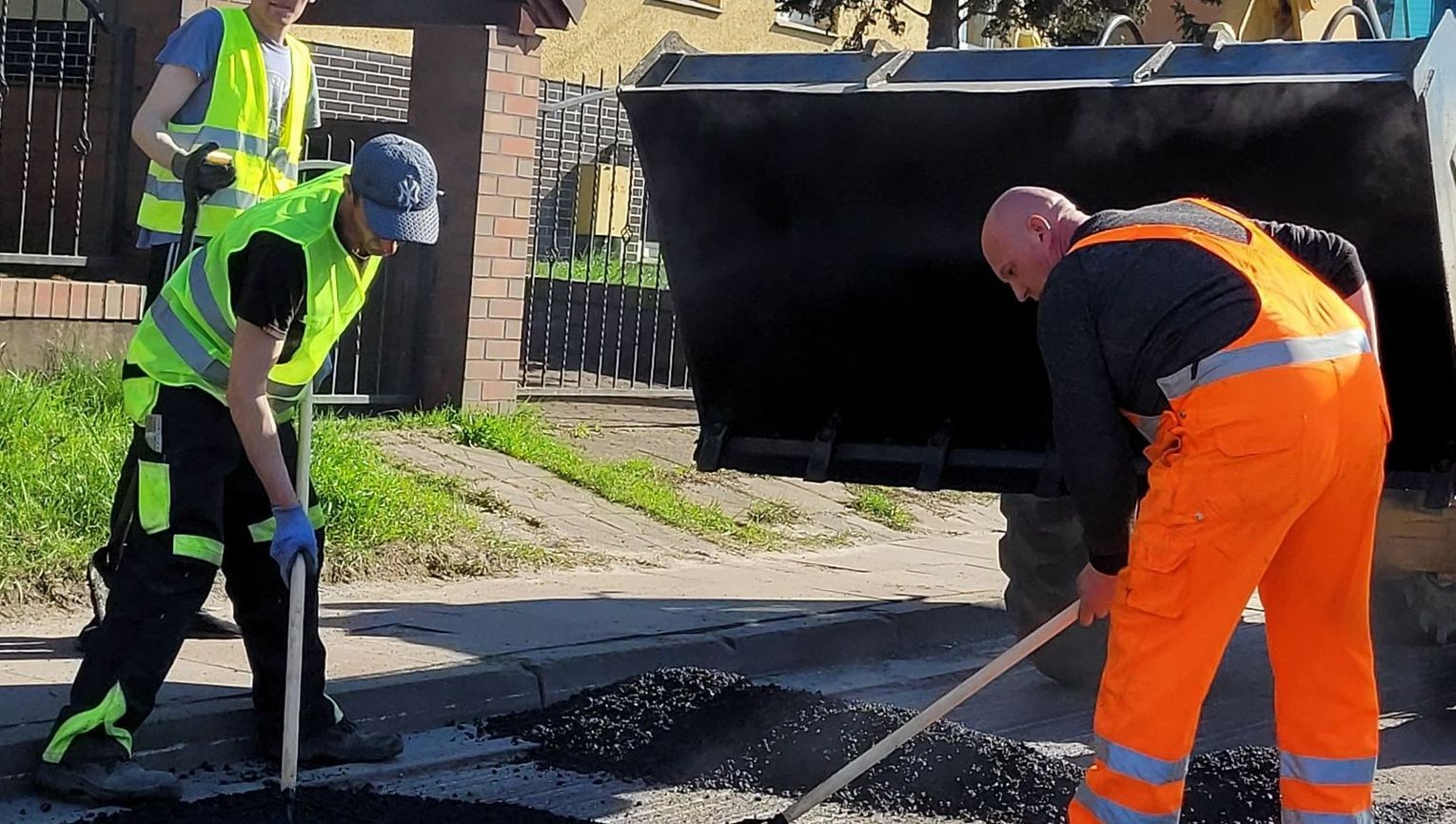 Prace idą niezwykle sprawnie, a przejeżdżaliśmy i obserwowaliśmy kilkakrotnie. Ruch jest wahadłowy i sprawnie prowadzony przez dwóch pracowników. Wszystko przebiega dynamicznie, ale jak nadjedzie się więcej samochodów, to trzeba poczekać. I uważać na dziury!