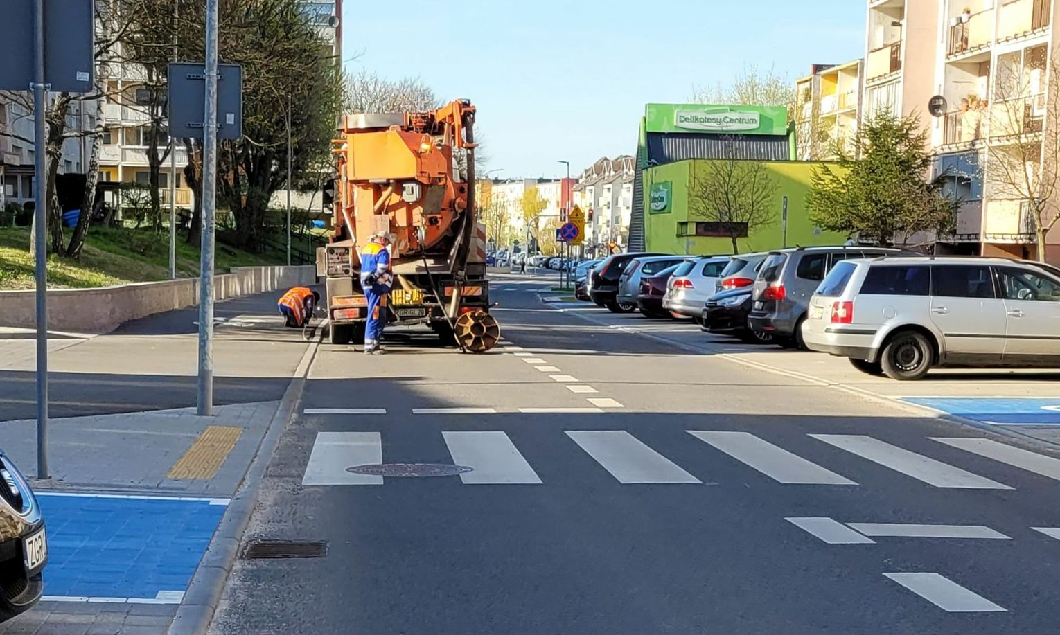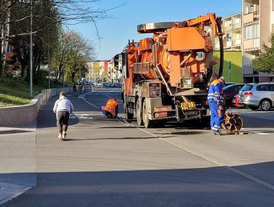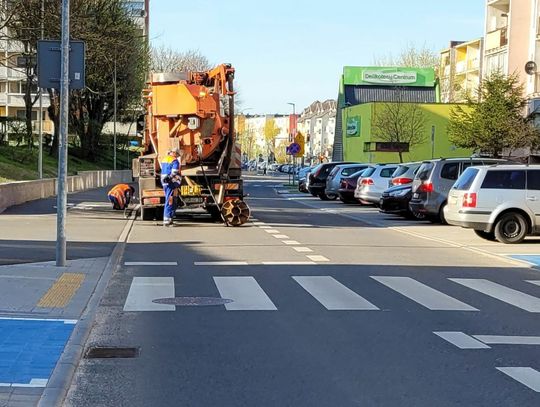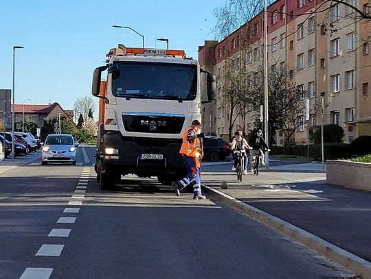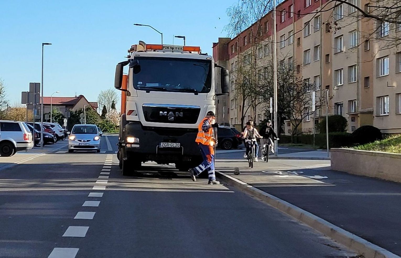 Jeden pas jezdni na ul. Krasińskiego na Górnym Tarasie został zajęty. Kierowcy musza zatem uważać bo nikt ruchem nie kieruje. Na miejsce przyjechało 2 pracowników...