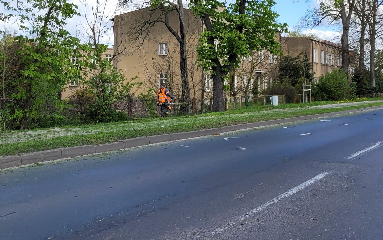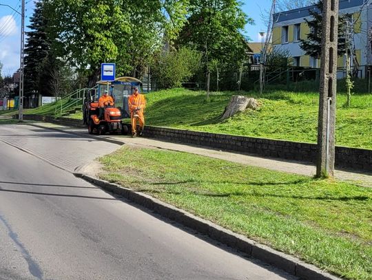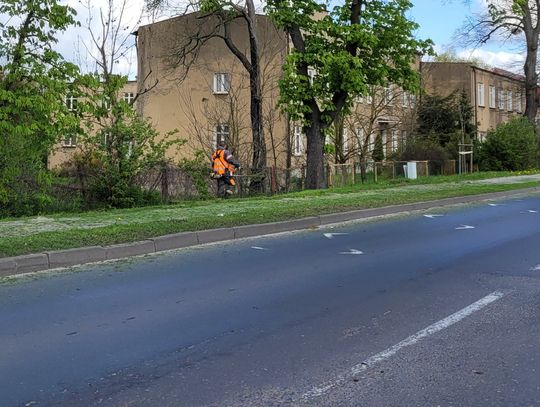 Firma, która ma dbać o główne ulice w Gryfinie przystąpiła do koszenia trawy. Dziś akcja objęła ulicę Łużycką.