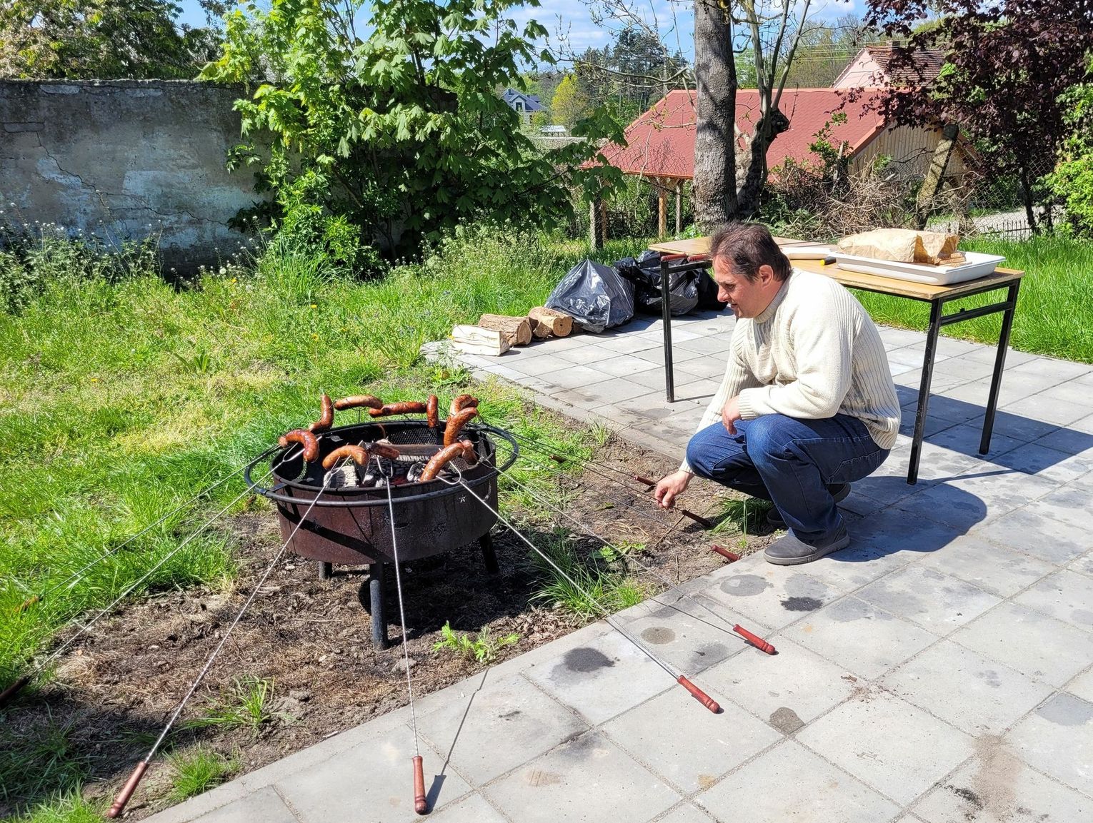 Kiełbaski przy ognisku piekł Jacek Kwiecień.