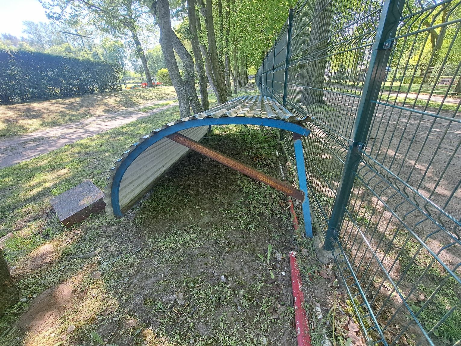 Tak wygląda teren bezpośrednio za boiskiem sportowym - płytą główną. Znalazły się tam między innymi uszkodzone bramki... - pisze mieszkaniec i przesyła 10 zdjęć.