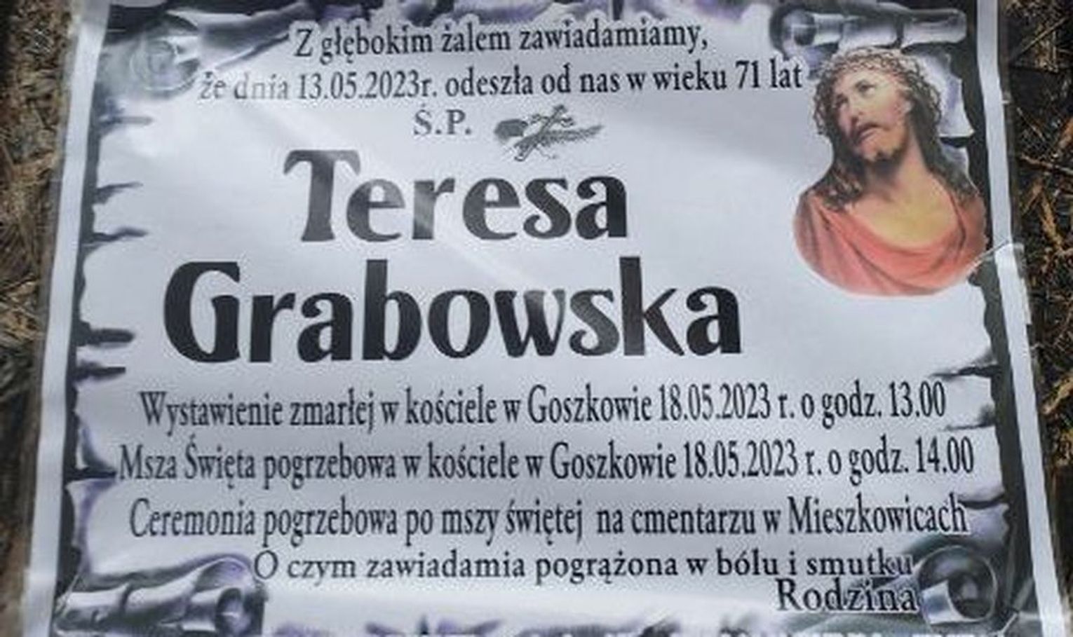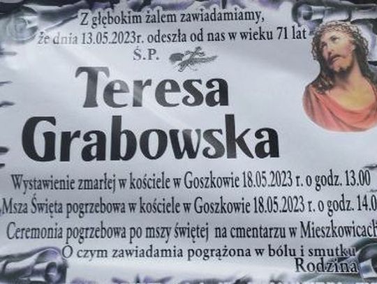 Msza św. żałobna odprawiona zostanie 18 maja 2023 r. o godz. 14.00 w kościele w Goszkowie.