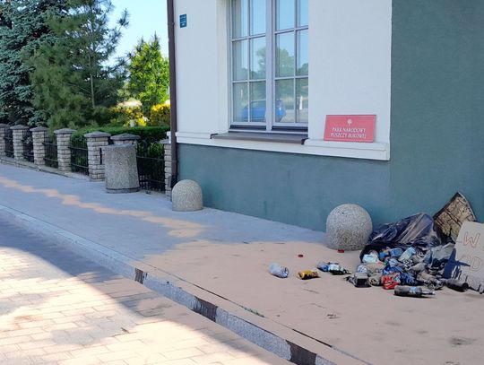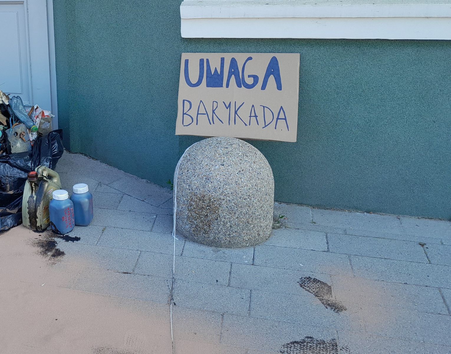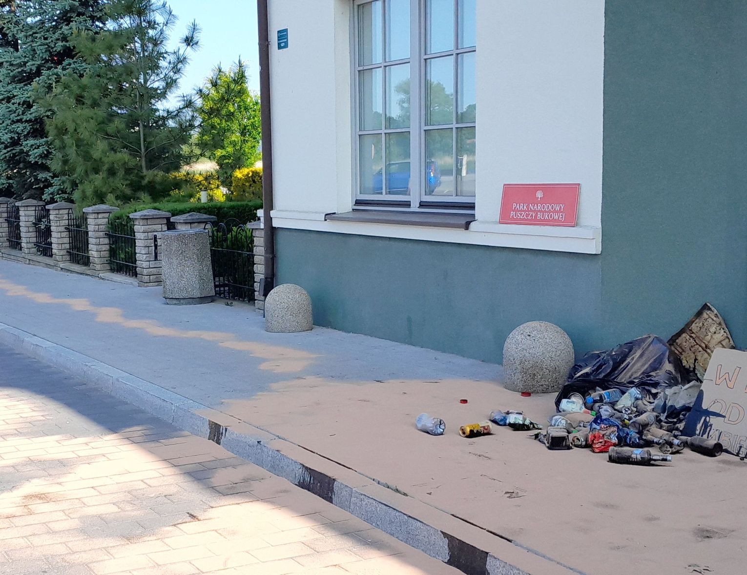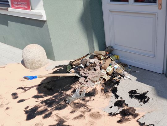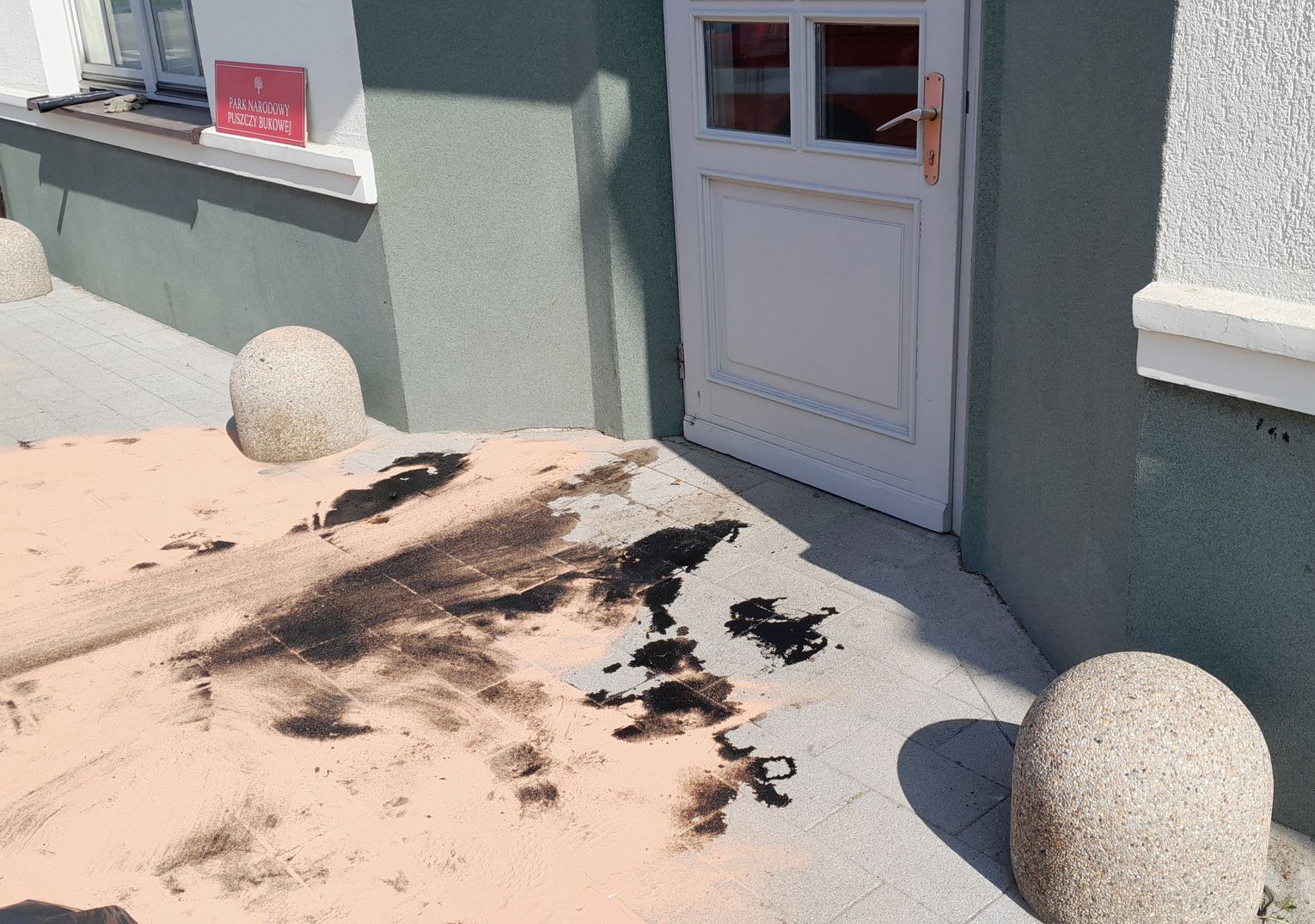 Na drogę i chodnik sąsiadujące z budynkiem Nadleśnictwa wylana została czarna, oleista substancja, prawdopodobnie oleju samochodowego. Substancja ta zanieczyściła drogę na długim jej fragmencie, narażając kierowców i przechodniów na niebezpieczeństwo. Zerwana i skradziona została flaga Lasów Państwowych, uszkodzono maszt, a przed wejściem do siedziby rozrzucone zostały odpady, zabrudzone prawdopodobnie tą samą substancją, którą posłużono się, zanieczyszczając drogę i chodnik. Pozostawiona została również wymowna „czerwona tablica”, która stanowi wizytówkę protestów w Puszczy Bukowej.
