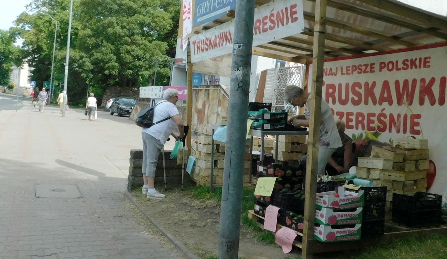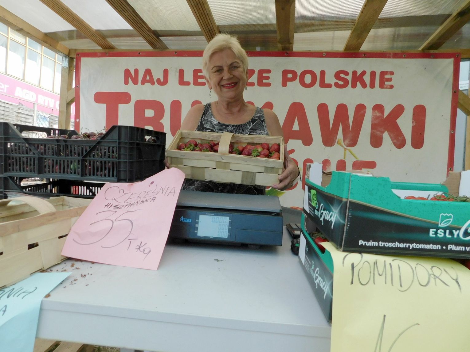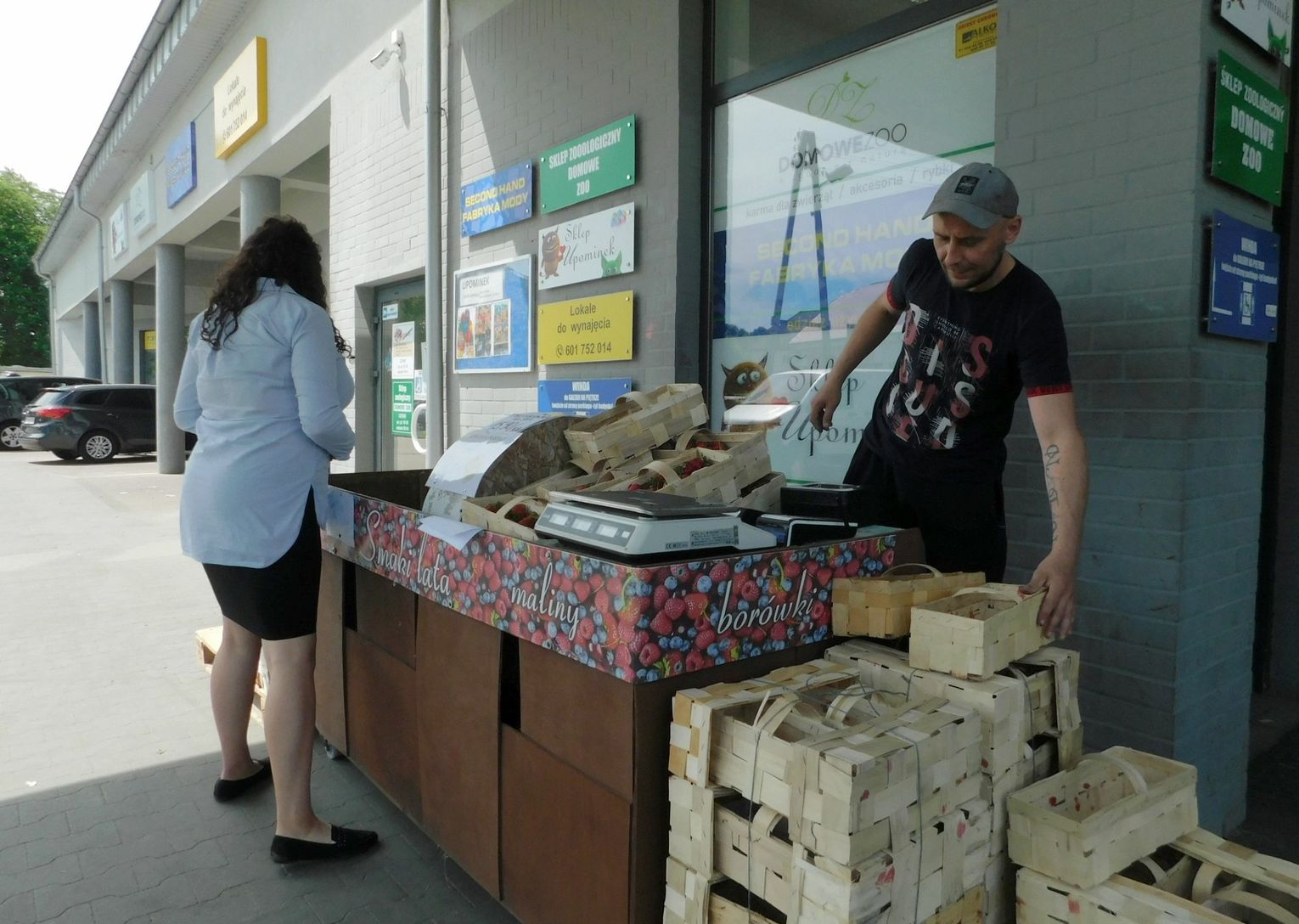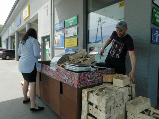 Oprócz tego, truskawki oferowane są również przy „Biedronce” obok stadionu sportowego.
