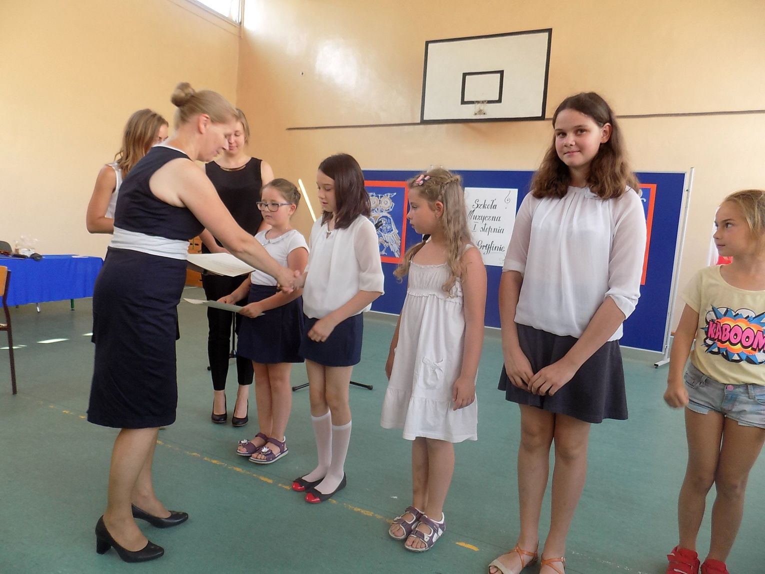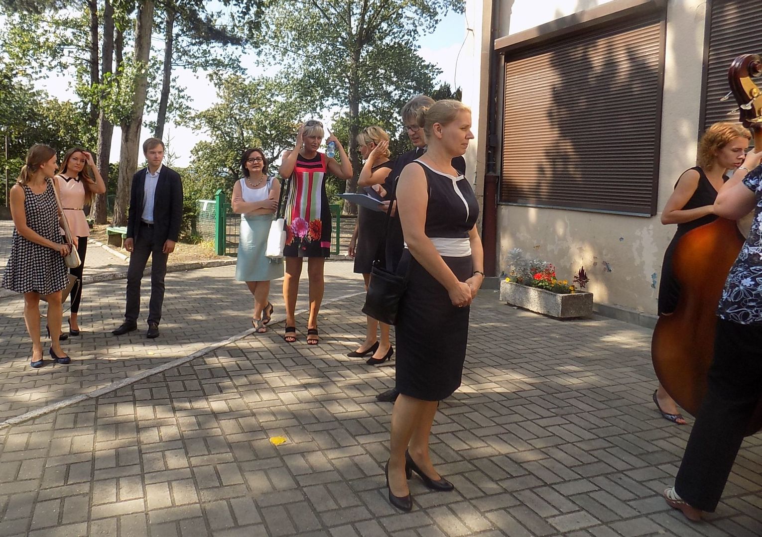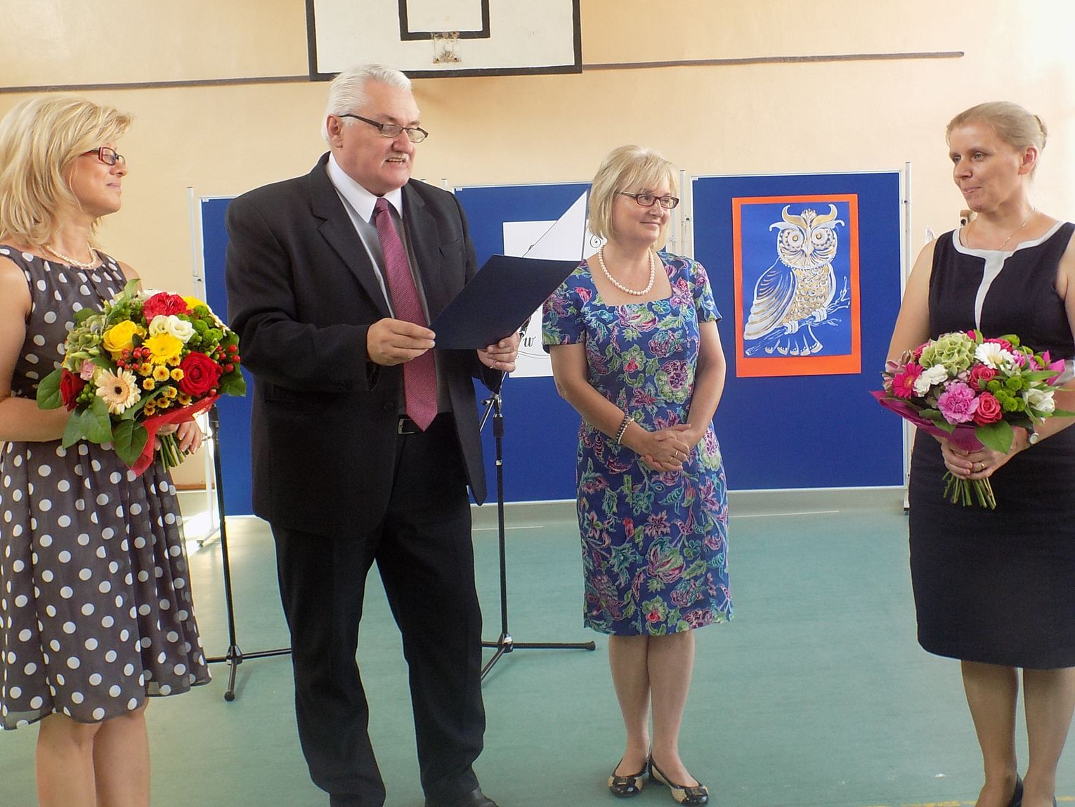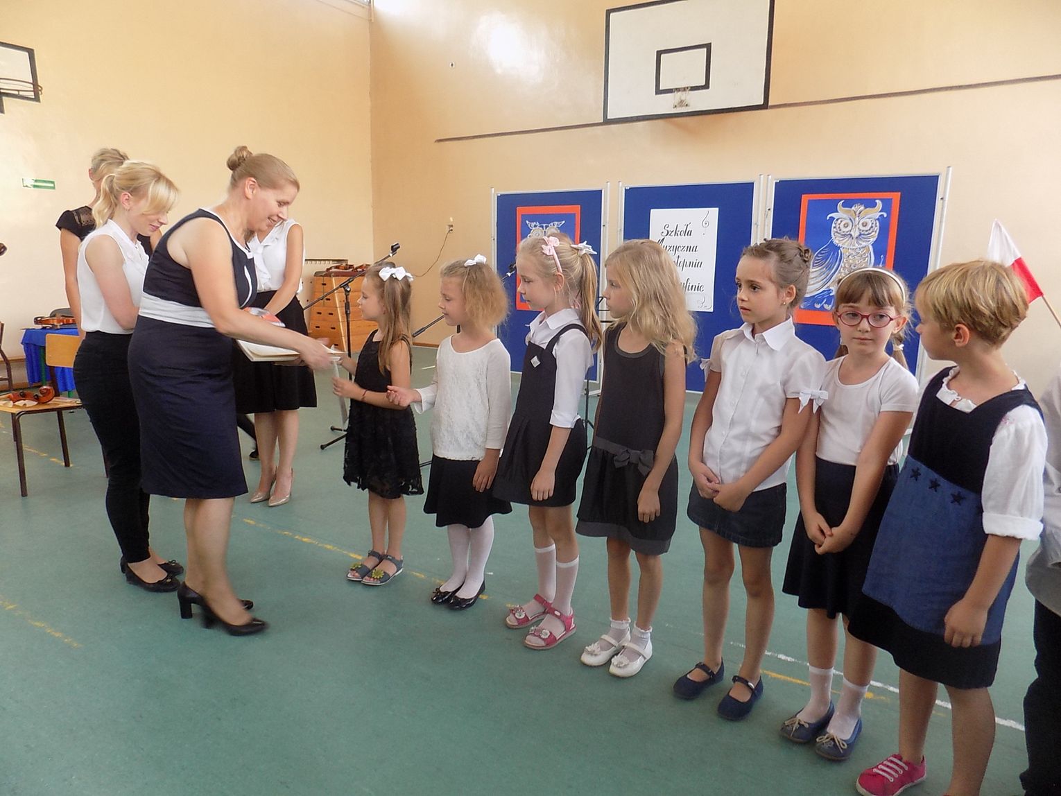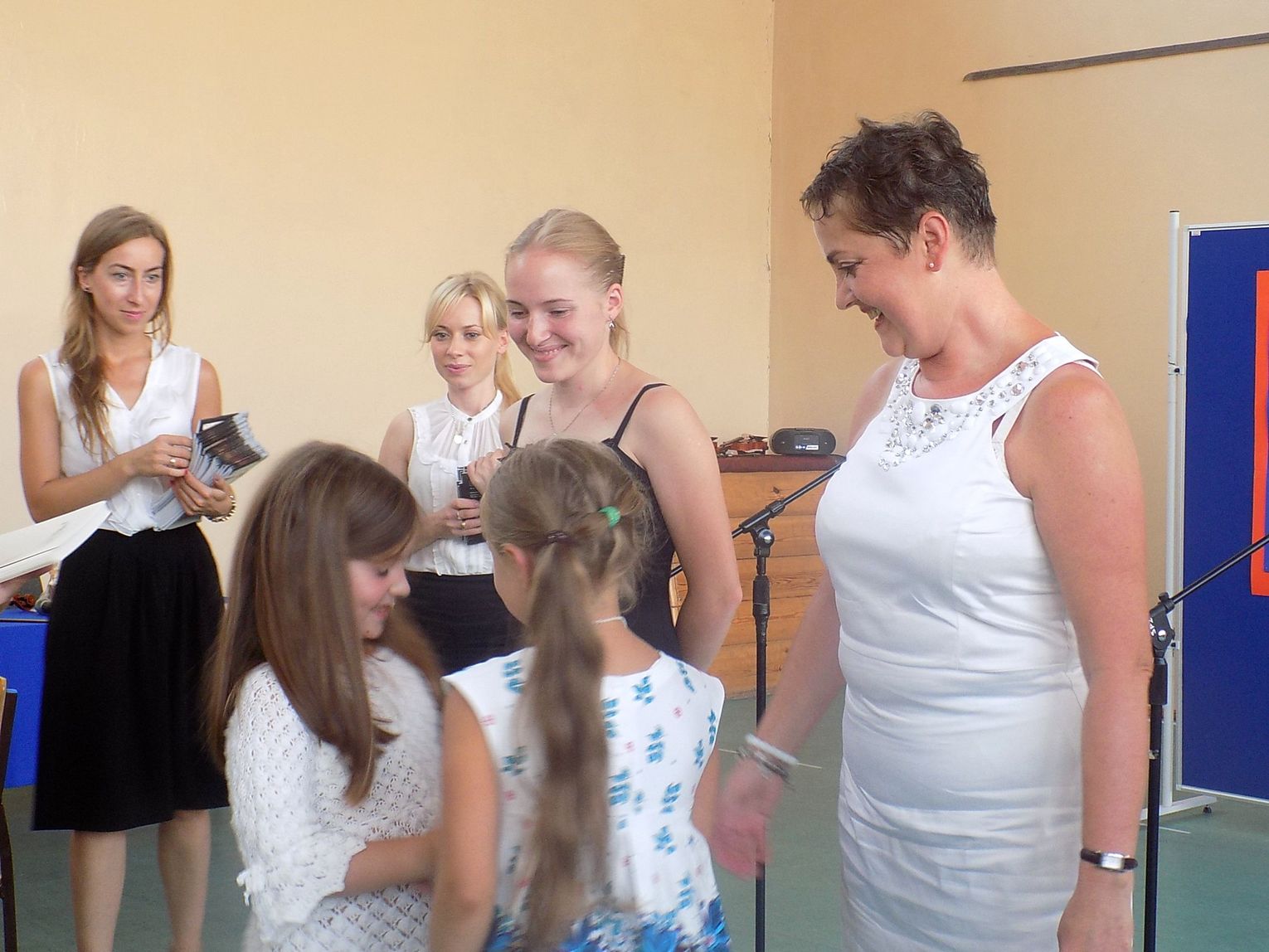 Paweł Osuchowski zaprezentował uczniów poszczególnych klas i ich nauczycieli. Najliczniejsza reprezentacja to klasa fortepianu. Pani dyrektor każdemu uczniowi wręczała listy gratulacyjne oraz zeszyty z pięciolinią. Także dyrektor Główczyńska otrzymała wiele życzeń, dobrych słów, kwiatów i zapewnień pomocy.