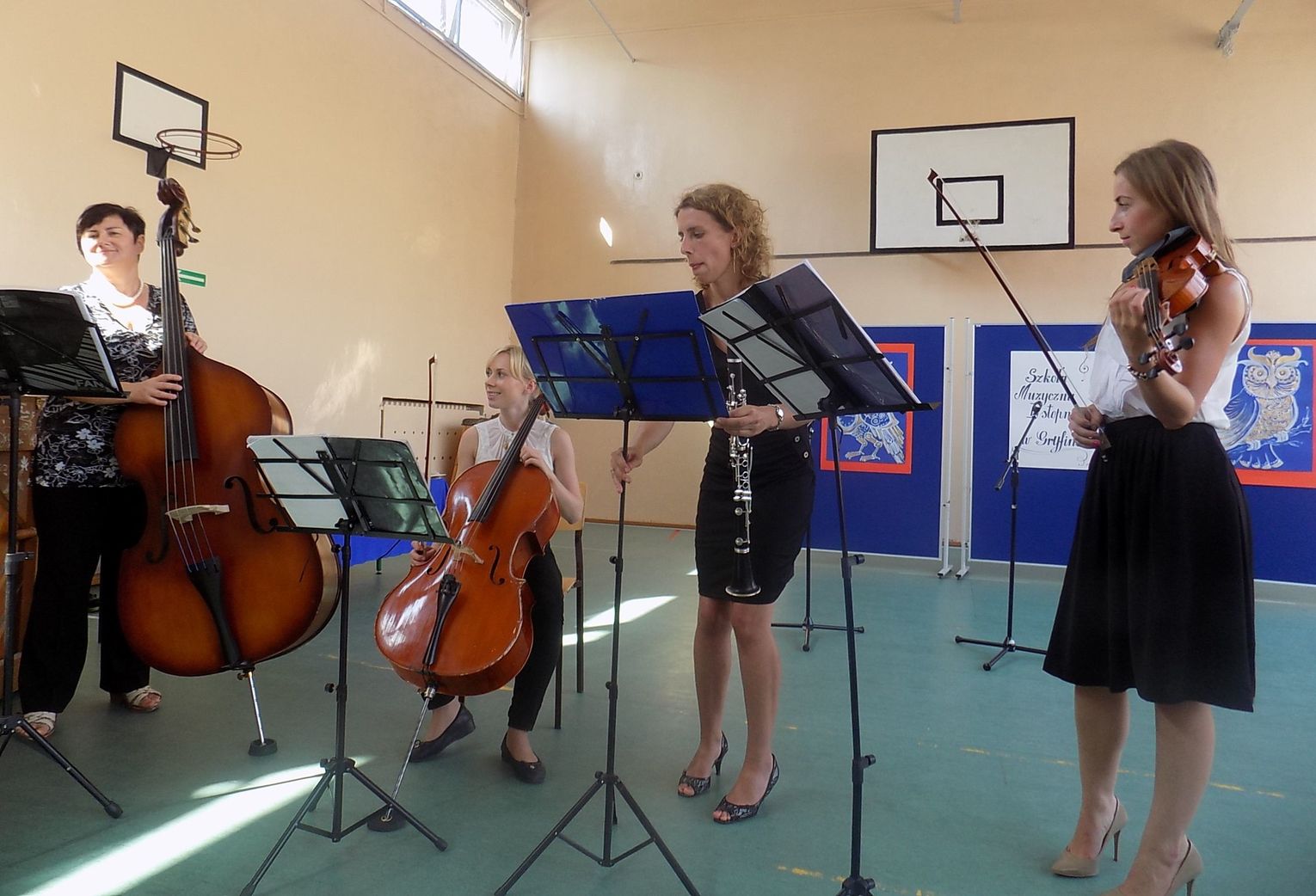W auli było świątecznie i nastrojowo. Rozbrzmiewały dźwięki skrzypiec, fortepianu. Popisy muzyczne najmłodszych stwarzały nową, już artystyczną atmosferę. Wszystko było tak jakoś inaczej aniżeli w „zwykłej” szkole, bo to też trochę inna placówka i dzieci z konkretnymi predyspozycjami.