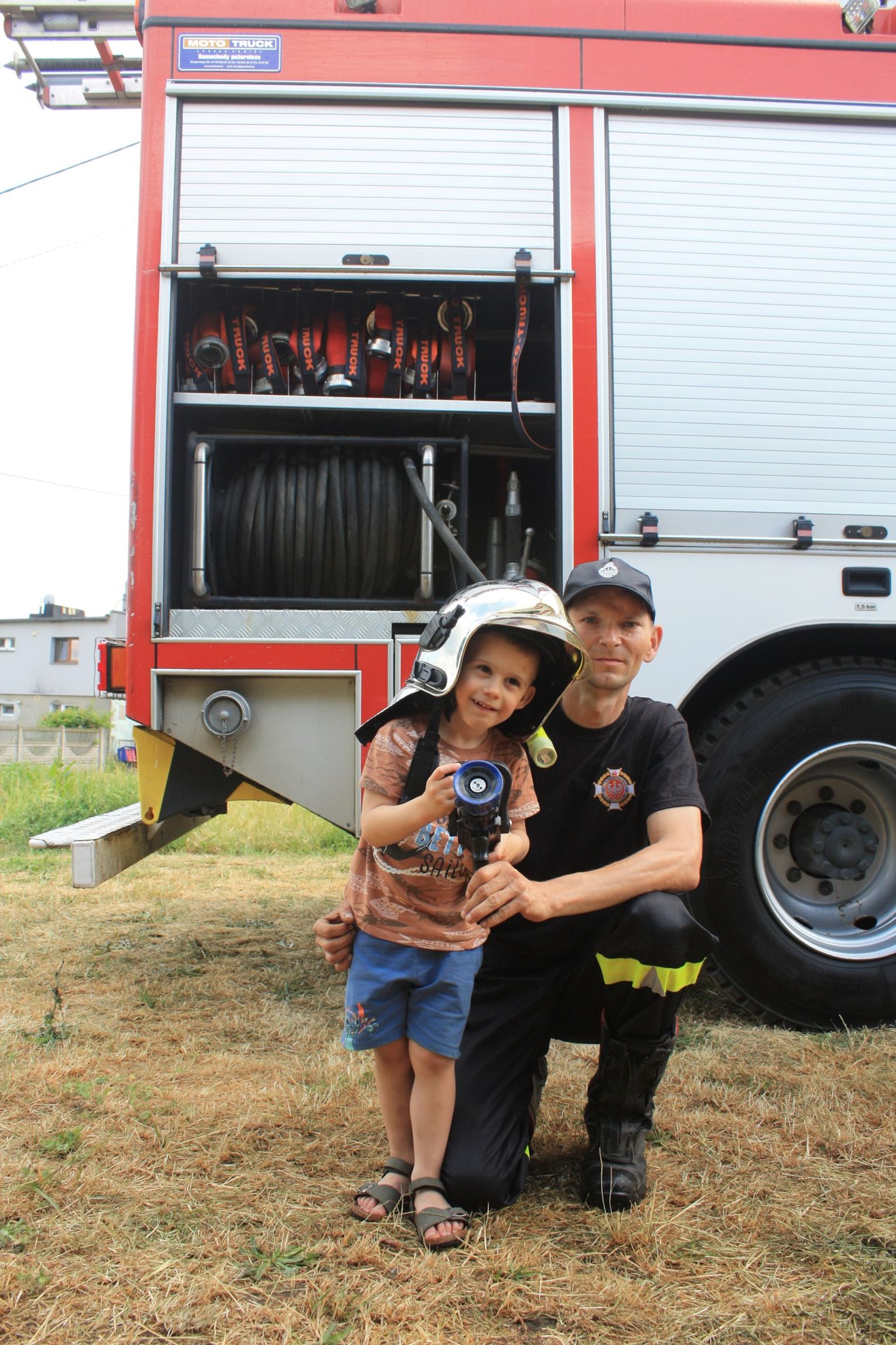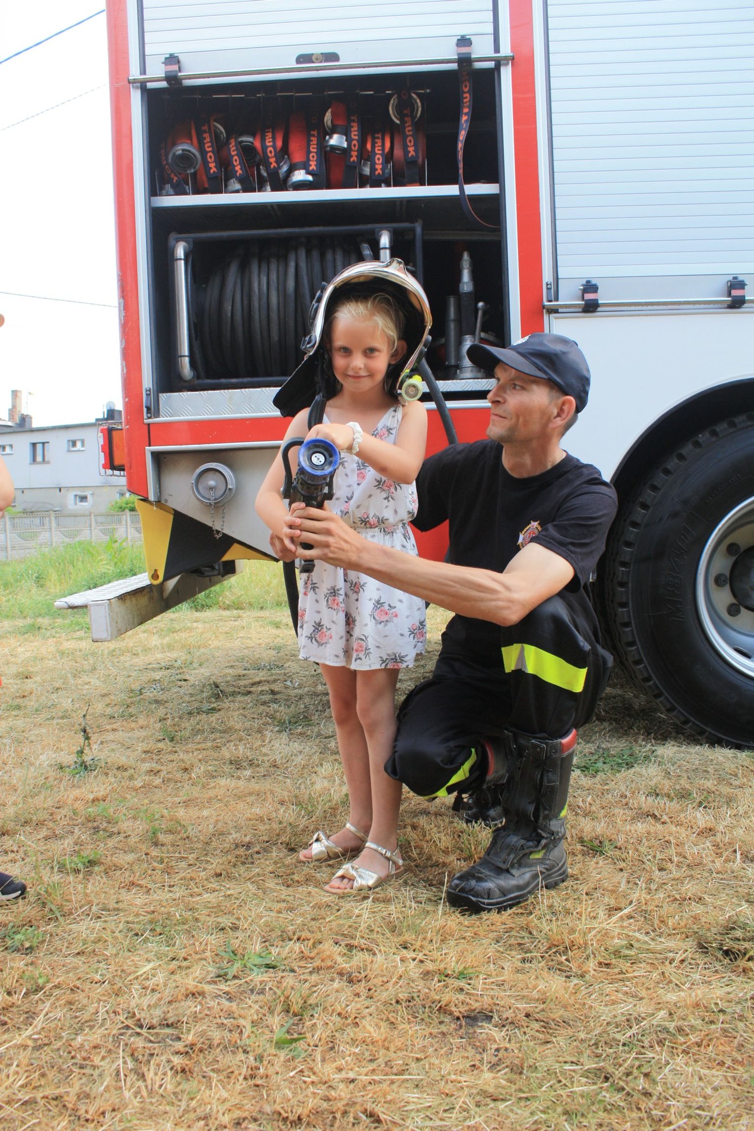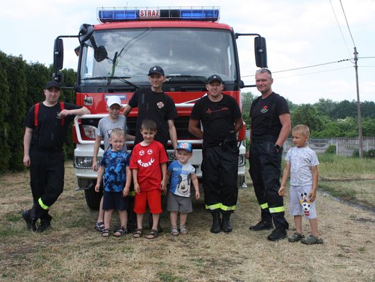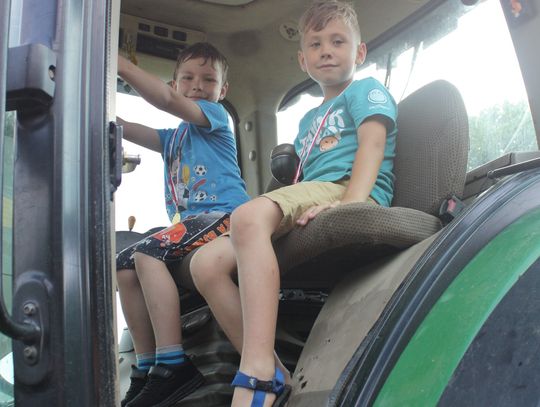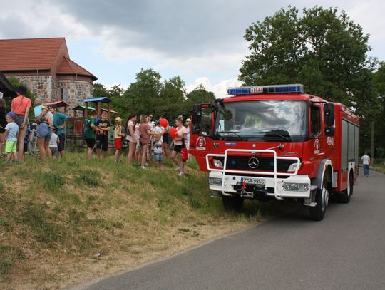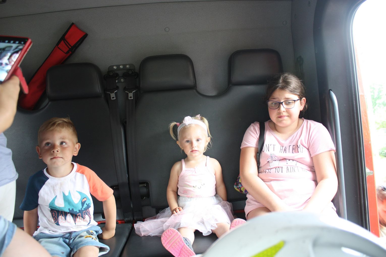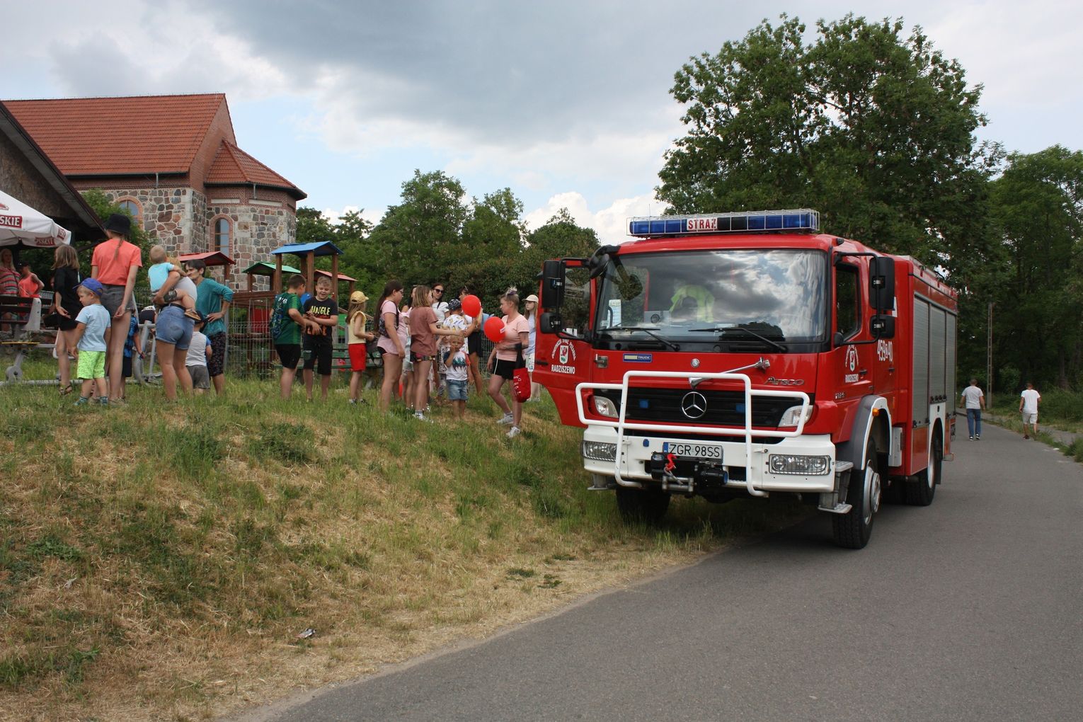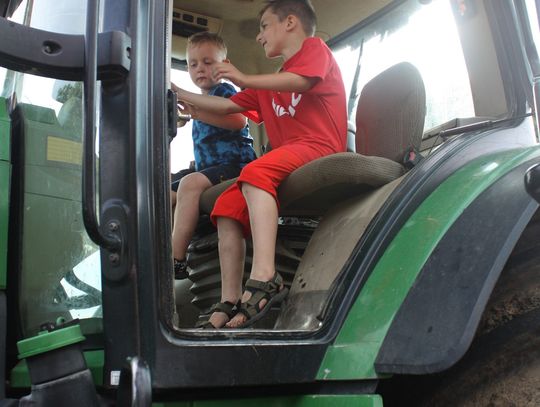 Pokazy wozu strażackiego OSP Radziszewo i ogromnego ciągnika z firmy "Odraland" były następną frajdą dla biorących udział w imprezie. Dzieci z ogromnym przejęciem podziwiały oba pojazdy. Nie obyło się bez zwiedzania wnętrz tych pojazdów , które budzą respekt, a nawet strach swoją ogromną budową.