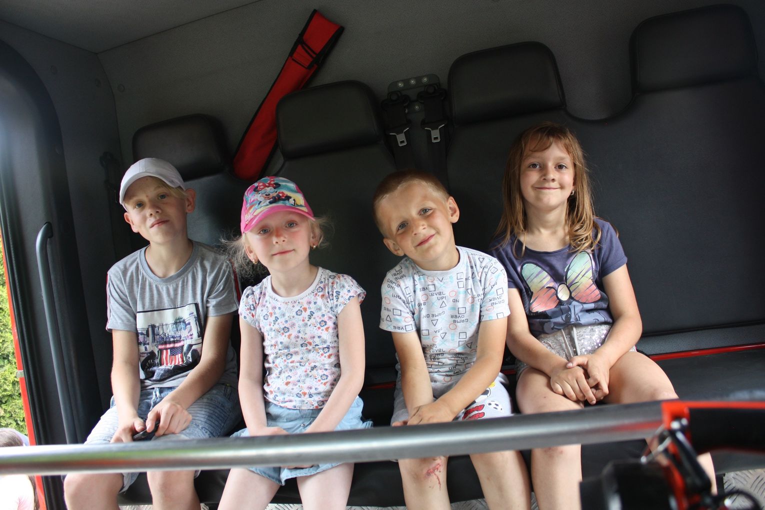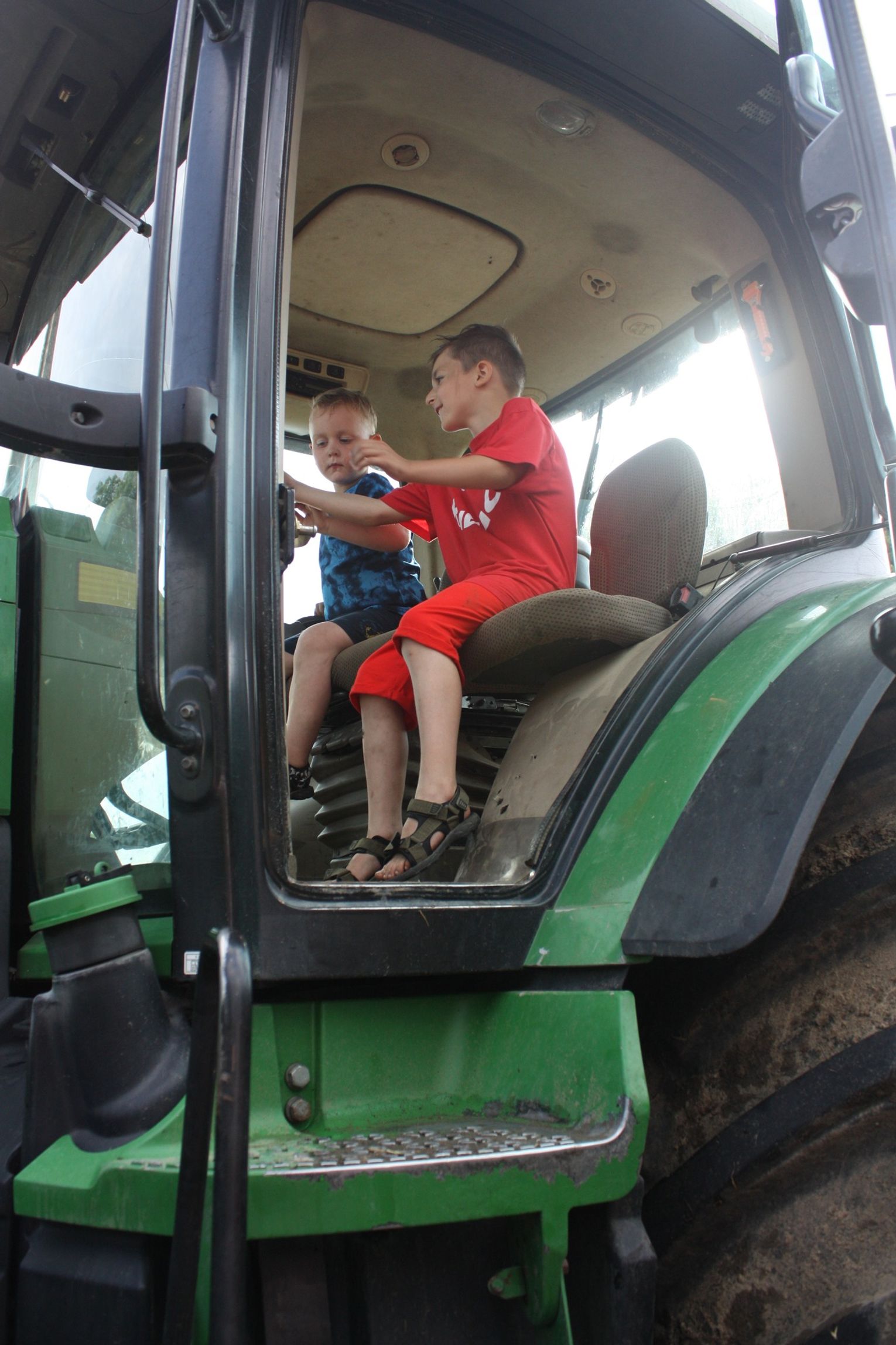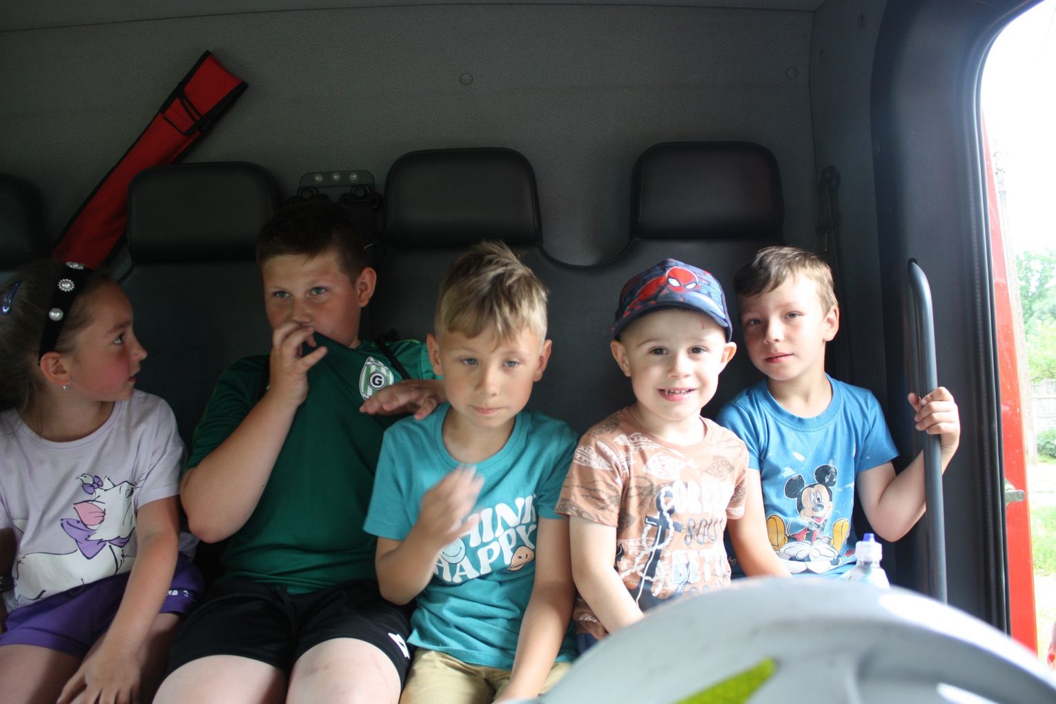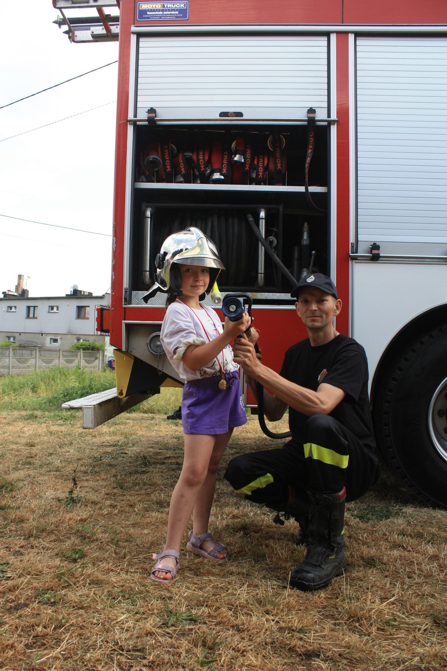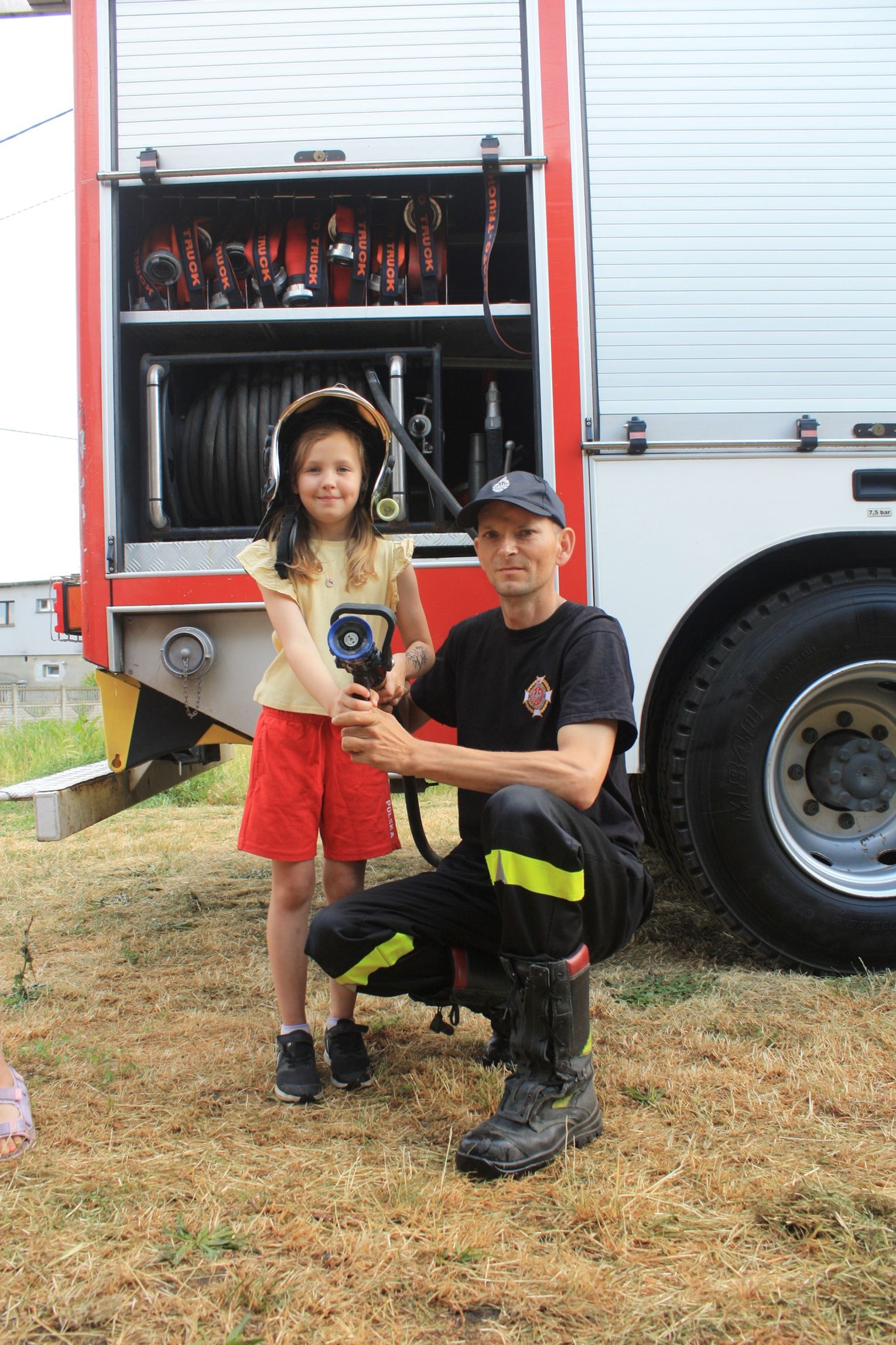 Pokazy wozu strażackiego OSP Radziszewo i ogromnego ciągnika z firmy "Odraland" były następną frajdą dla biorących udział w imprezie. Dzieci z ogromnym przejęciem podziwiały oba pojazdy. Nie obyło się bez zwiedzania wnętrz tych pojazdów , które budzą respekt, a nawet strach swoją ogromną budową.
