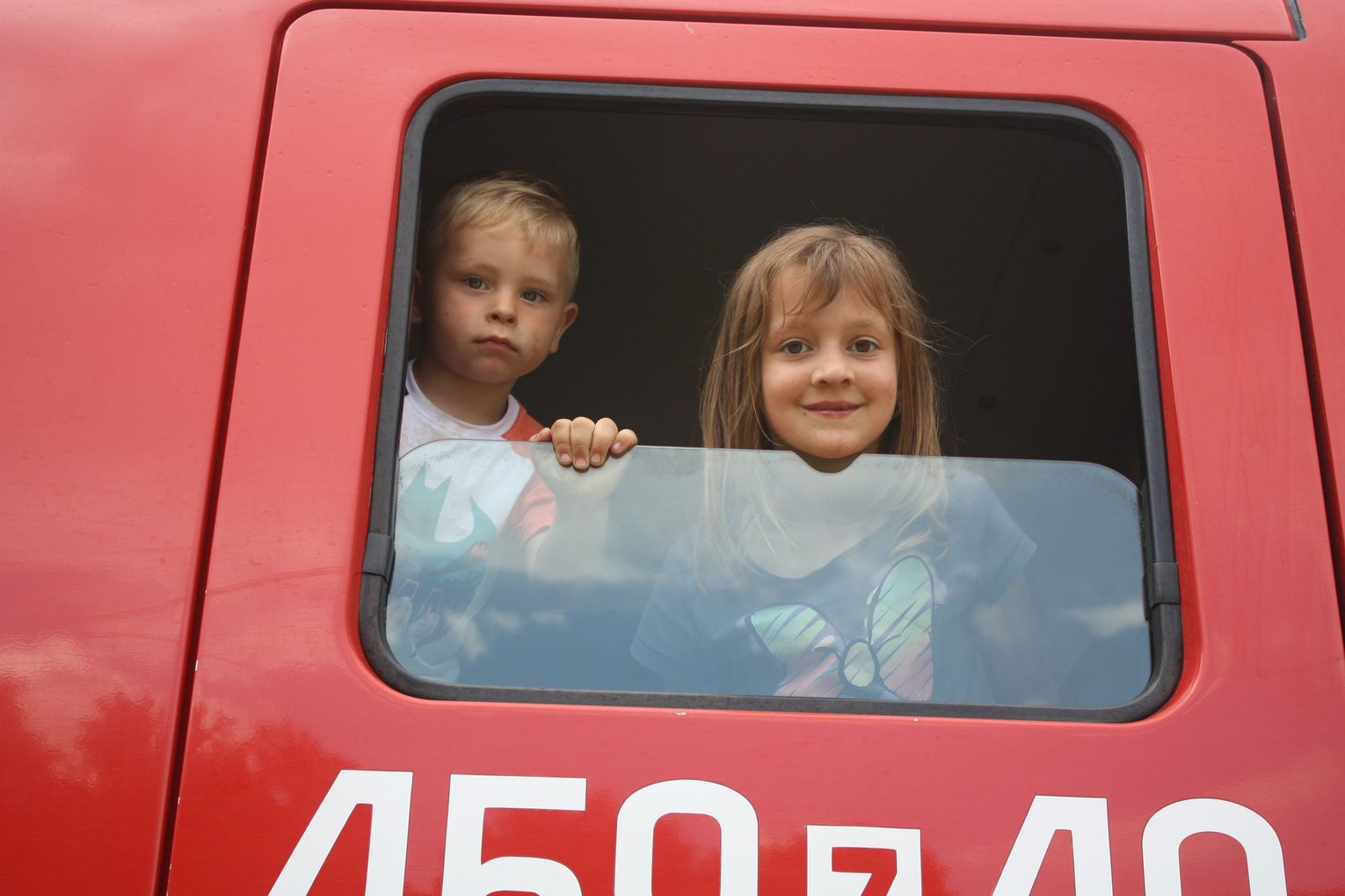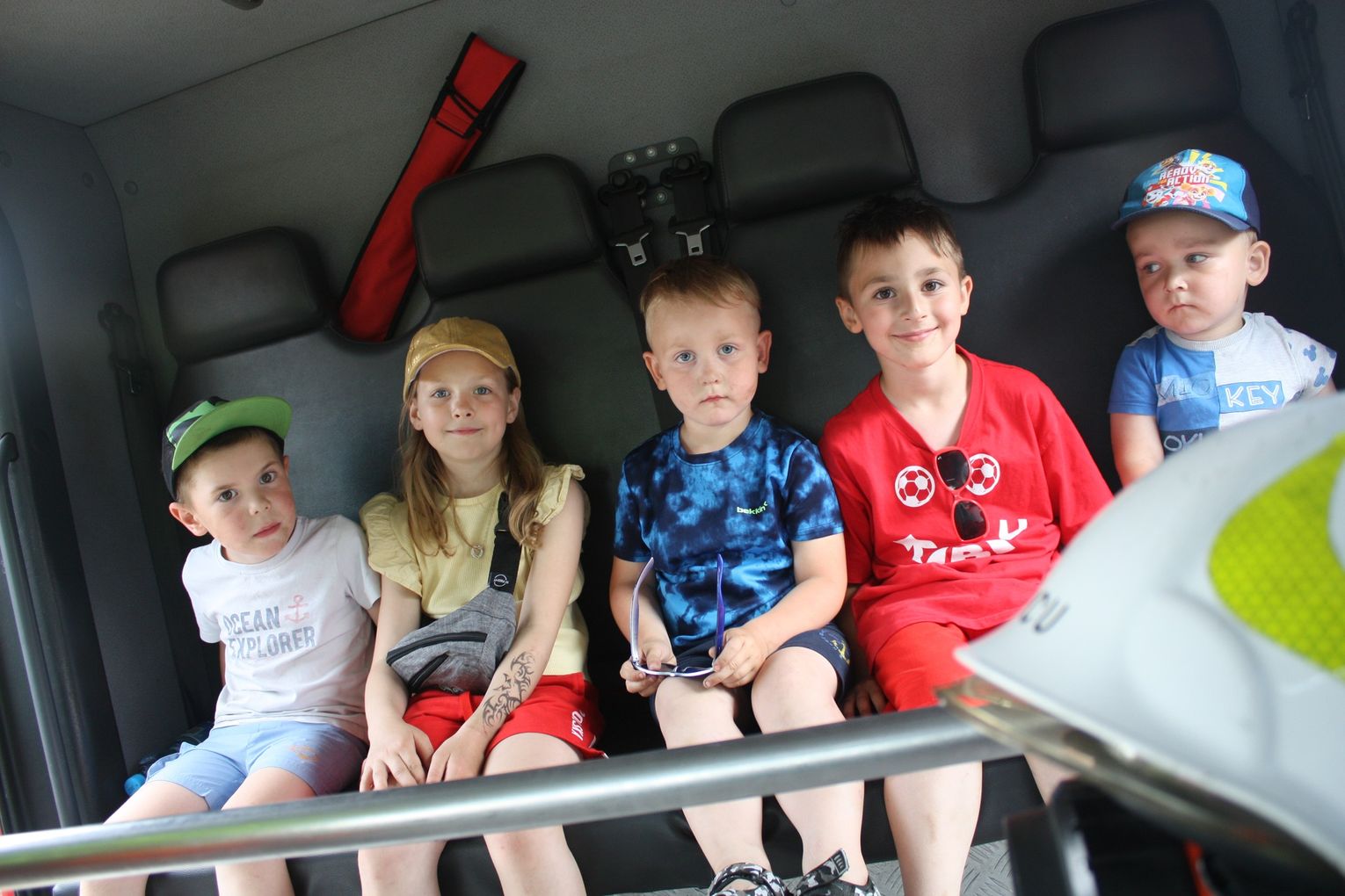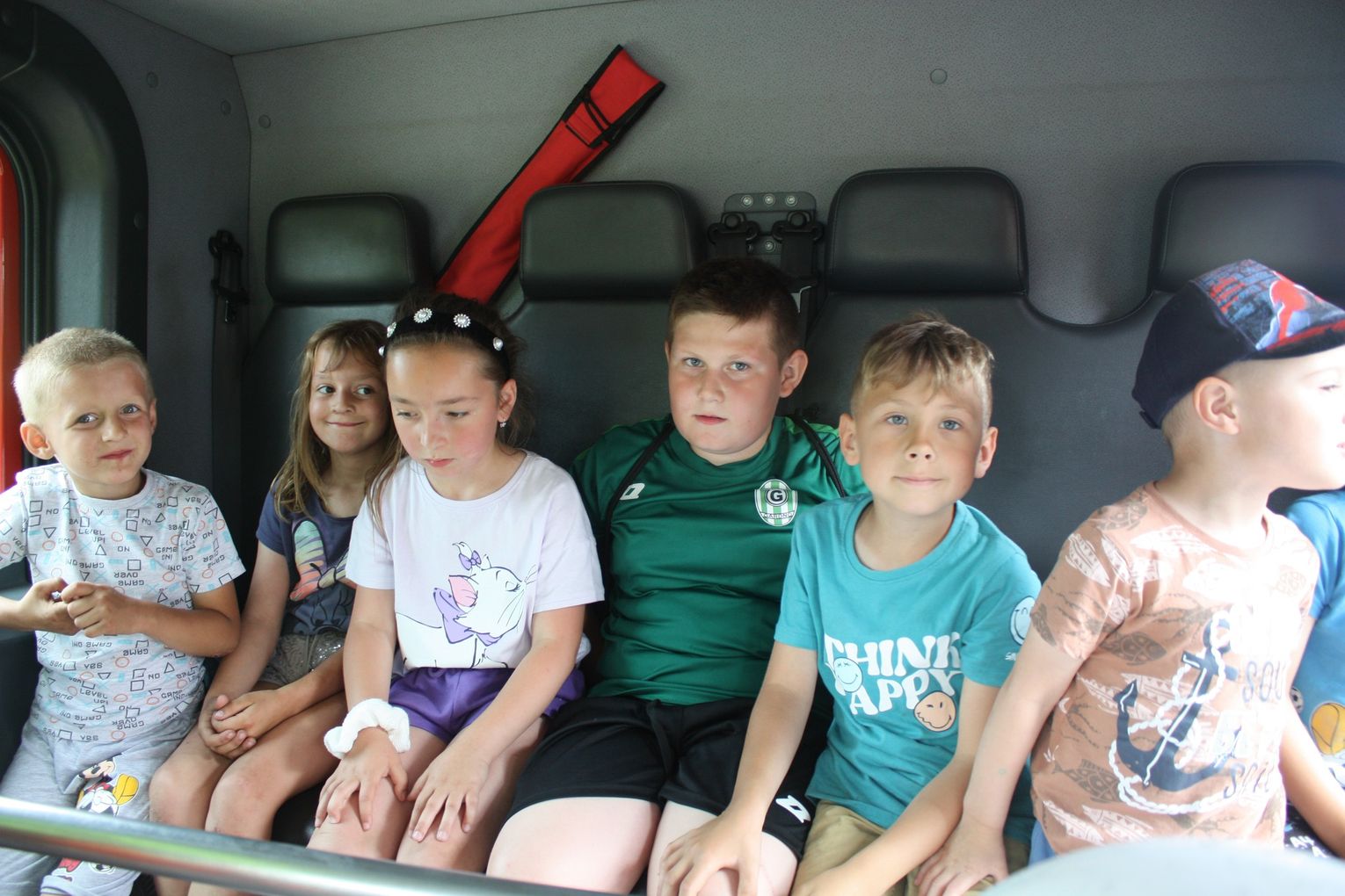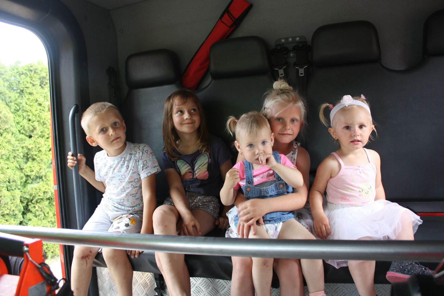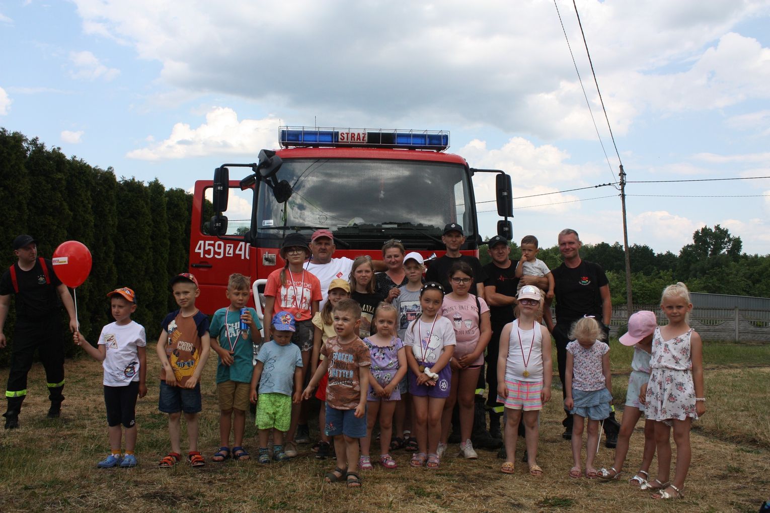 Pokazy wozu strażackiego OSP Radziszewo i ogromnego ciągnika z firmy "Odraland" były następną frajdą dla biorących udział w imprezie. Dzieci z ogromnym przejęciem podziwiały oba pojazdy. Nie obyło się bez zwiedzania wnętrz tych pojazdów , które budzą respekt, a nawet strach swoją ogromną budową.