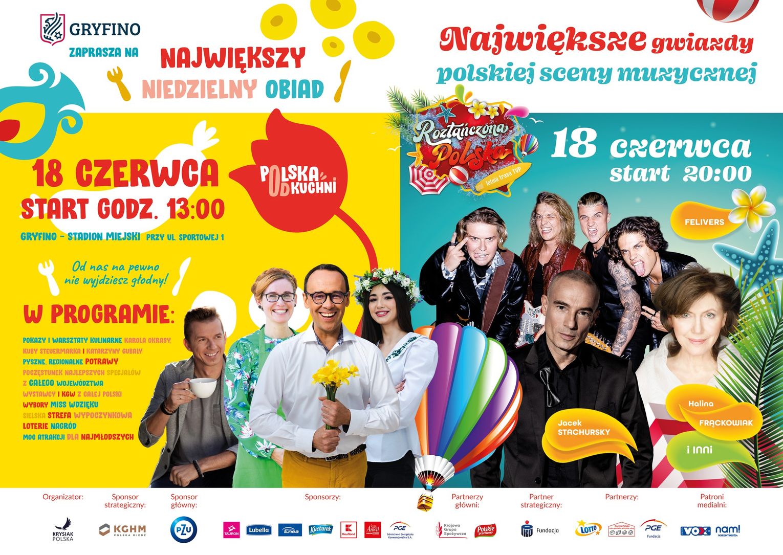 Natomiast w niedzielę o godzinie 20:00 startuje Roztańczona Polska w Gryfinie! Koncert potrwa 2 godziny. Wystąpią:
