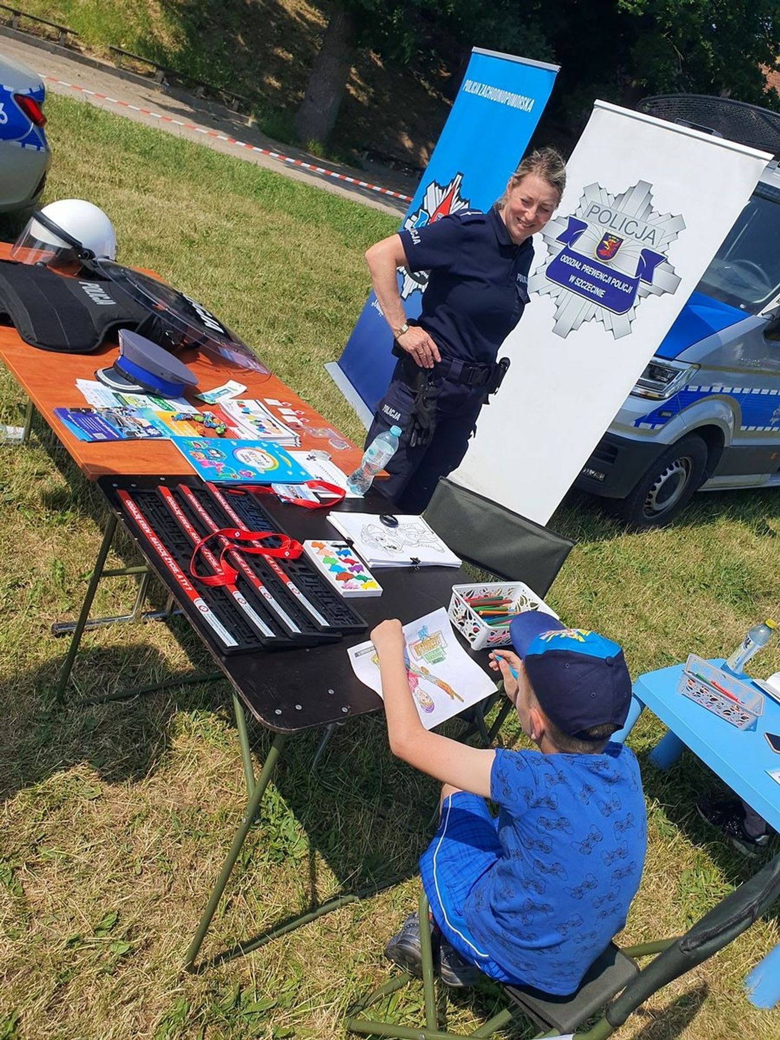 Podczas festynu uczestnicy mogli zobaczyć jak wyglądają policyjne radiowozy, wyposażenie policjantów Oddziału Prewencji Policji w Szczecinie oraz funkcjonariuszy Samodzielnego Pododdziału Kontrterrorystycznego Policji.