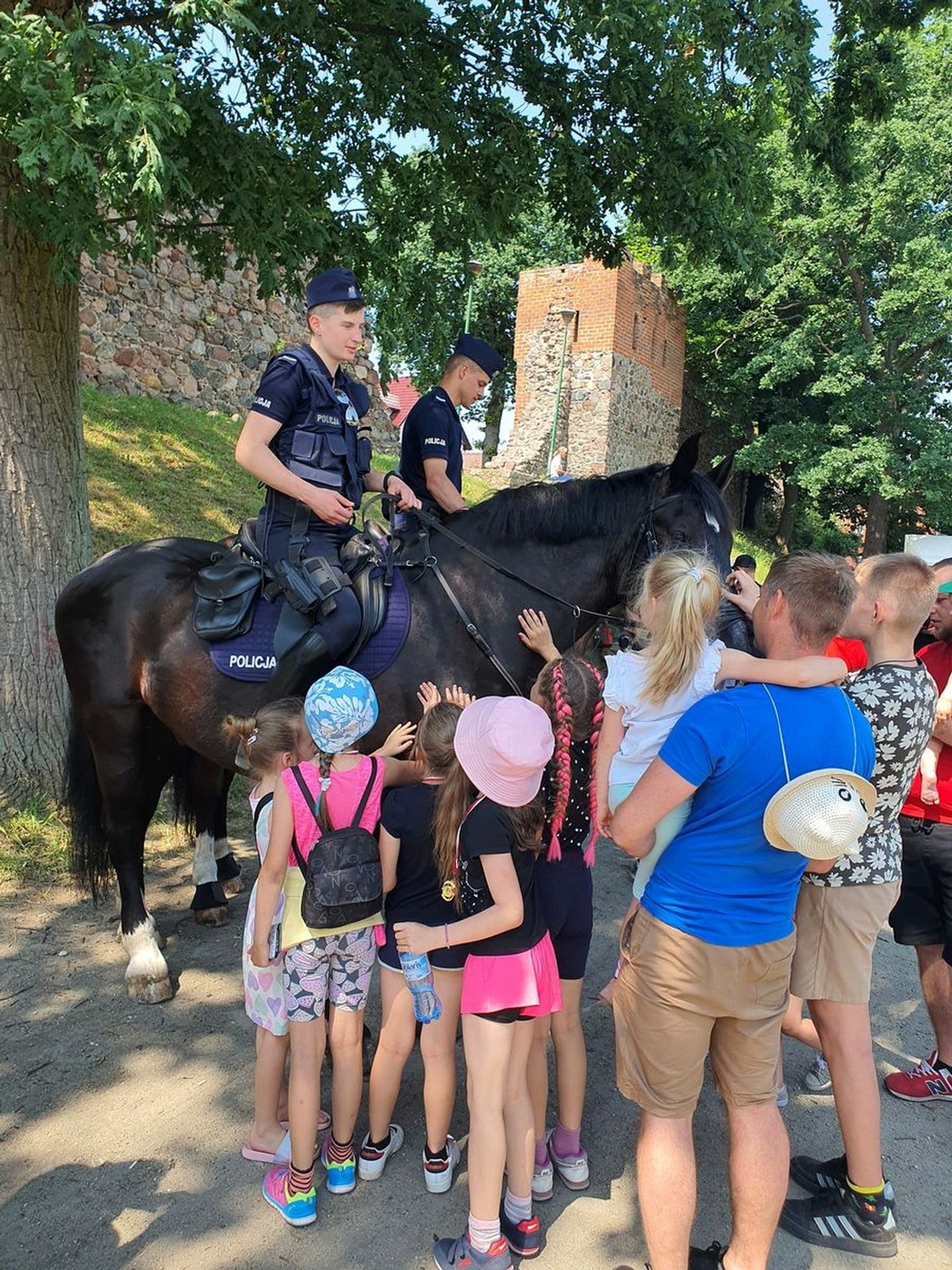 Ponadto na imprezie pojawił się patrol konny, który wzbudził ciekawość wśród najmłodszych. Wiele dzieci nie wiedziało o tym, że wśród policjantów są również ci pełniący służbę konno.