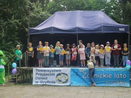 Wielu uczestników imprezy korzystało ze stoisk z rybami i innymi lokalnymi produktami, a dzieci bawiły się na dmuchańcu oraz startowały w sportowych zmaganiach przygotowanych przez LKS Piast w Gryfinie.