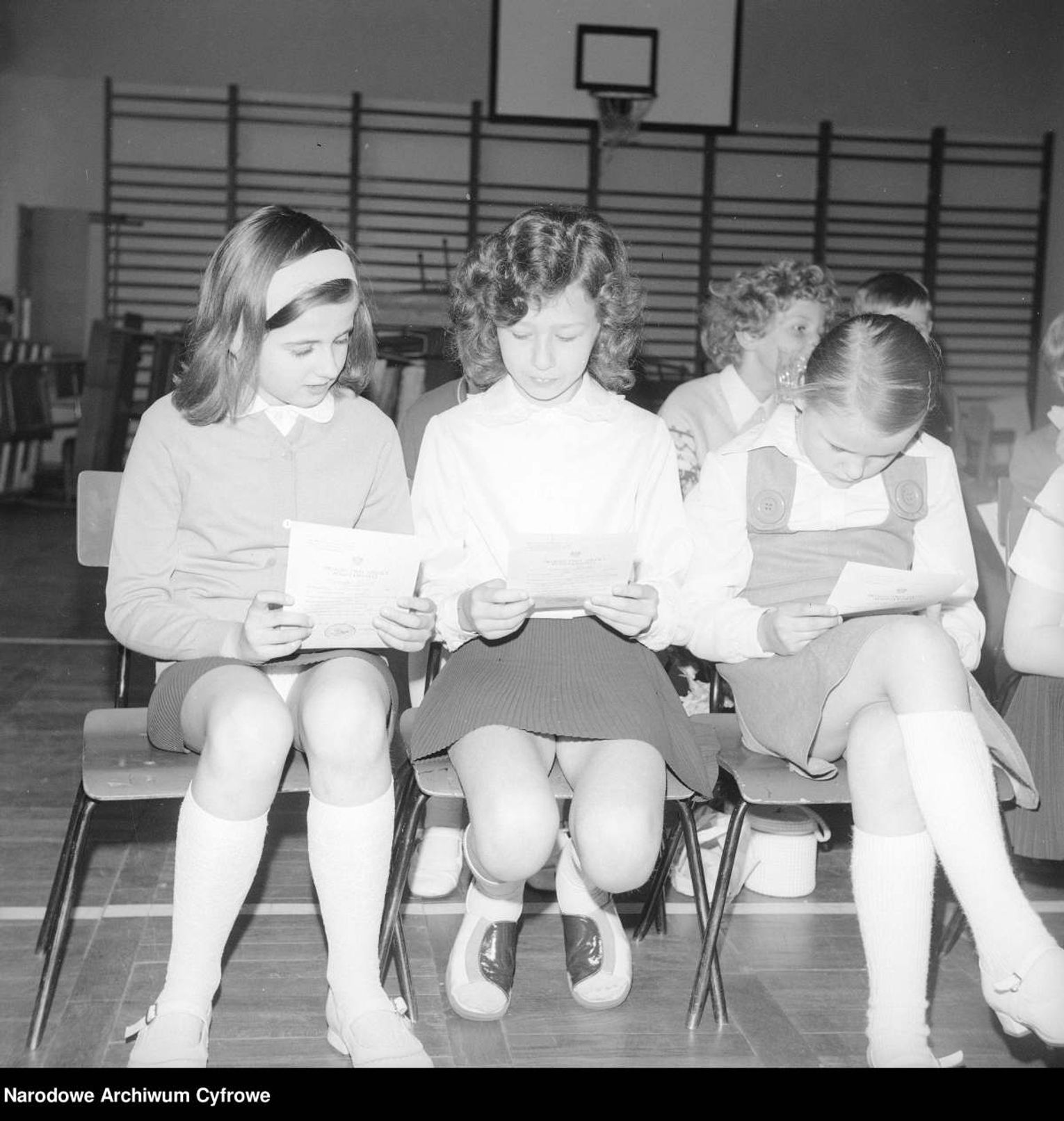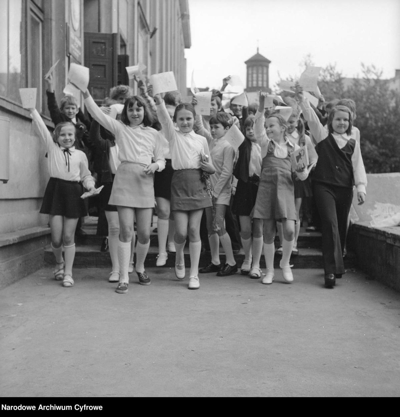 W Polsce Ludowej zakończenie roku w szkołach było wielkim wydarzeniem. Organizowano wtedy akademie z występami uczniów i wręczaniem nagród. Dzieci obowiązywał strój galowy. Zestaw, który jeszcze wielu pamięta, to biała bluzka lub koszula i granatowa (a już na pewno ciemna) spódnica lub spodnie.
