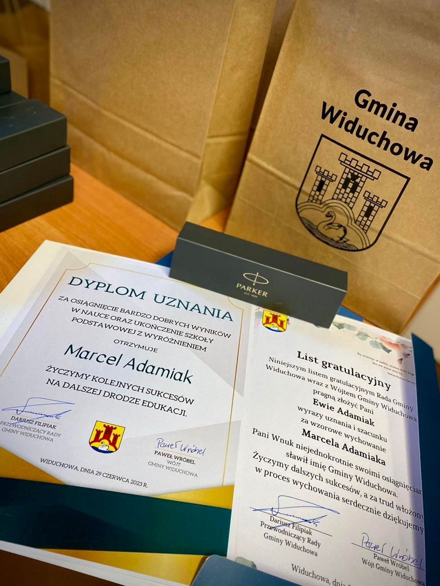 Specjalną nagrodą Rady Gminy Widuchowa za rok 2023 uhonorowano następujących absolwentów i ich rodziców:
