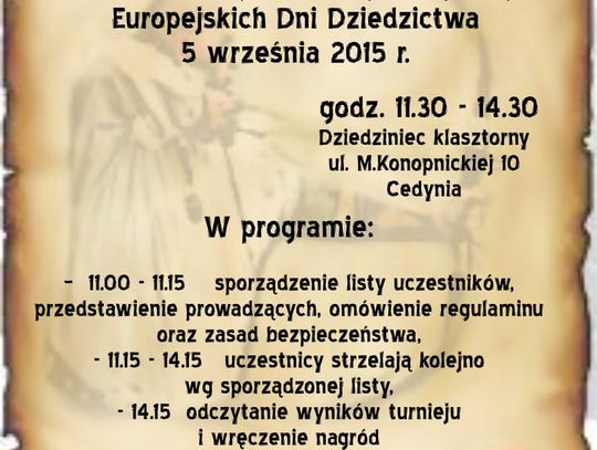 2. Turniej jest turniejem otwartym. Uczestnikiem/uczestniczką może być osoba, która ukończyła 16 lat i zgłosi się jako uczestnik do Turnieju Łuczniczego podczas wojewódzkiej inauguracji Europejskich Dni Dziedzictwa w Cedyni. Sędzia główny może nie dopuścić do udziału w turnieju osób zachowujących się niekulturalnie lub będących pod wpływem środków odurzających, jak również sędzia główny może wykluczyć z turnieju osoby nie wykonujące jego poleceń związanych z bezpiecznym obchodzeniem się z bronią,